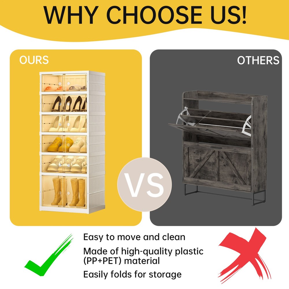 Store category Sign Up Now ! You may also like Product Description Disassembly-Free Installation: Enjoy a sleek and modern storage solution with our folding shoe cabinet. Integrating structure design, simple assembly, and easy folding for storage without requiring any tools. Versatile Storage Solution: Accommodates various footwear, featuring a 6-tier structure (5 grids plus 1 oversized grid) for up to 12 pairs, including a tall boot section. Reliable Materials: The high-quality material and innovative integrating design of this folding shoe cabinet ensures your shoes are stored securely and dust-free. With its transparent panels, you can easily find the pair you need. Easy to clean: Move and clean this collapsible shoe cabinet with ease thanks to its wheeled design and transparent door. It's not just functional: it's also a chic and elegant addition to your space. Wide Applications: Crafted to cater to your varied shoe storage requirements, this collapsible shoe organiser is perfect for diverse settings such as hosting spaces, bedrooms, living rooms, and garages. Organize your shoes in style with our innovative foldable shoe cabinet. Designed to save space, it features a unique transparent design that keeps your shoes visible at a glance. Perfect for storing tall boots, it adds a touch of luxury to any room. Versatile and widely used, it's the perfect storage solution for any shoe aficionado. Specification. This product is designed with all-in-1 structure, no assembly tools required, easy to install and space saving; 6 Tiers (5 grids + 1 large grid), 1 large grid can store boots, the rest of the grids can be used to store all types of shoes; Super attractive shoe box, the door can be kept closed to minimize dust, with wheels, easy to move, transparent material, easy to find the needed shoes. Pack list. Folding Shoe Rack Organizer*1 Payment Delivery details Terms of sales About us Feedback & DSRs Payment Before you palce an order, please kindly make sure that you have a paypal account. We accept PAYPAL payment only. Payment should be completed within 2 days after auction closed, or unpaid dispute will be filed for an closing auction. An unpaid case will be filled after 4 days. Delivery details We ship to your eBay address. Each package will be shipped to US by UPS Regular Parcel with tracking number. Please check your shipping address carefully before checkout, it can't be changed if order completed. All items will be shipped within 1-2 business day upon receipt of payment.Orders placed on weekend will be shipped within 3 days. If you do not receive your item in 7-10 business days.please contact us immediately for further assistance. We will be responsible for any damages or losses incurred in the shipping process. About us We maintain high standards of excellence FIVE STAR and strive for 100% customer satisfaction! Positive Feedback is very important to us. We hope that you contact us immediately Before you give us neutral or negative feedback, so that we can satisfactorily address your concerns. We promise to offer the lowest price and high quality produce. Our working time: From Monday to Friday(9:30 am to 18:00pm), we don't working on holidays ,hope you can understand and know that , thank you. Please always talk to us via ebay Message. We appreciate your business and look forward to growing our e-Bay sales with satisfied customers. Feedback Contact us If you have any questions, please feel free to contact with us by ebay Message during our business hours ( 9:30a.m. to 5:30 p.m.), or email us through eBay, we will try our best to help you to resolve it. For any presale or after-sale questions,please do feel free to email us! Due to the time difference, each email will be replied within 1 working day,and weekend will be delayed a bit. Feedback