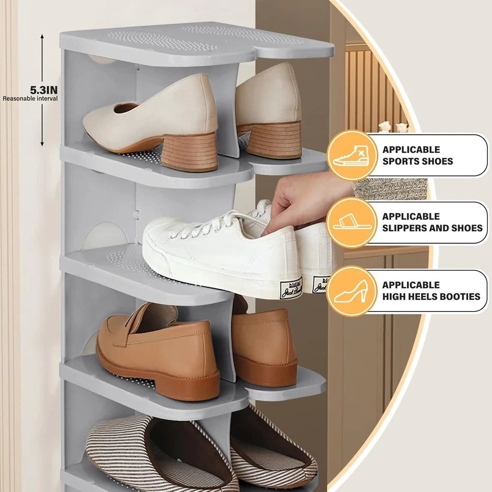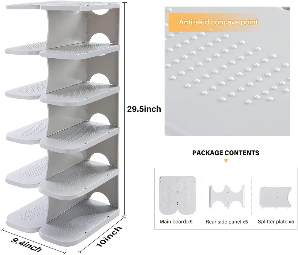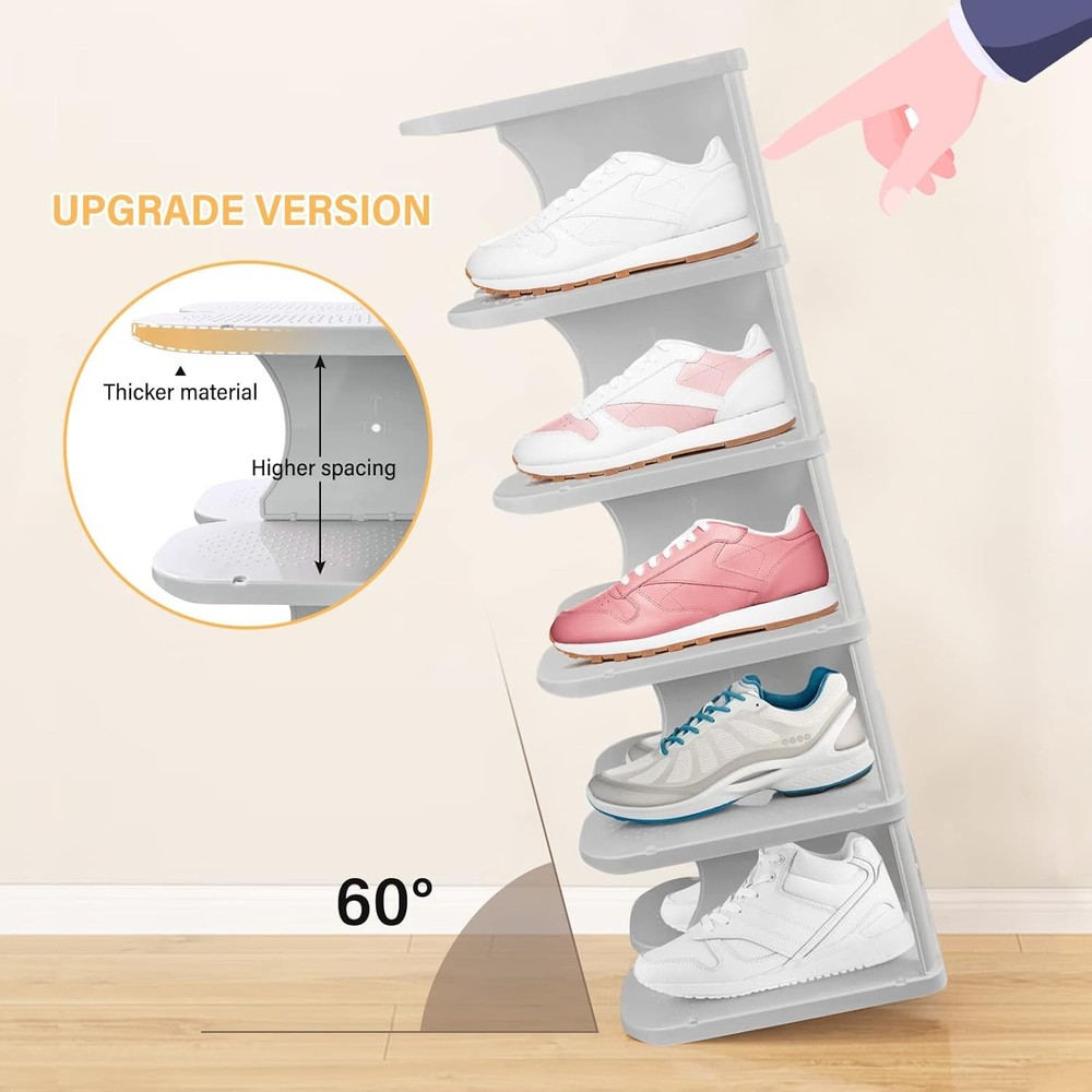 This shoe rack is a game-changer for my closet! The thickened PP material makes it super sturdy, and the non-slip surface keeps my shoes from sliding. Love that I can combine multiple sets to fit any space—perfect for sneakers, heels, and even boots. Super easy to assemble and saves so much room. Highly recommend for anyone needing smart, durable shoe storage!
