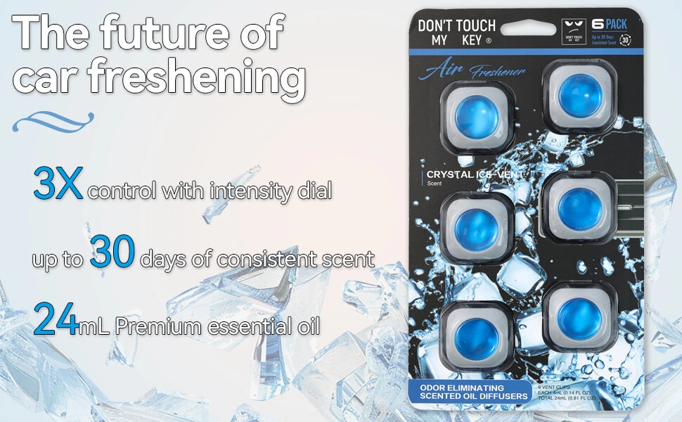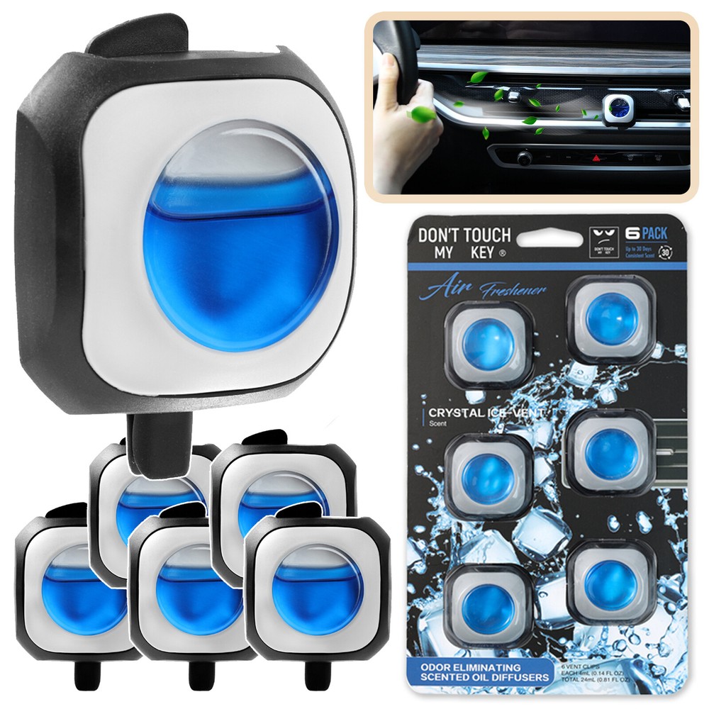 6X Outlet Aromatherapy Essential Oil Diffuser Air Vent Freshener 0.81 oz 24ml 6X Aromatherapy Car Freshener Vent Clips Description: Natural Design: Car diffuser vent clips, with a streamlined design, beautiful and natural. It is a good choice for essential oil lovers. Fresh Cherry and Crystal Ice Car Air Freshener: Infuse your car with a lush and attractive blend of ripe and juicy cherries, evoking a refreshing fruity atmosphere to stimulate your senses during your drive. And Crystal Ice scent like light touch of ocean waves for you to choose. High-quality materials: Essential oil car diffuser vent clips are lighter than other vent clips, essential oils are internationally iFRA certified, and are produced strictly in accordance with EU requirements to create the safest in-car aromatherapy equipment. The surrounding aroma keeps you alert while driving, enjoys a relaxing journey, and brings you a good mood. Multi-purpose: You can place it anywhere you like, such as your car, office, bathroom, and even in the closet. Keep away from unpleasant odors and create a charming atmosphere. Easy to use: The installation operation is as simple as only four steps. Features: 100% brand new, high quality. Purify the air in the car, make your car more stylish and beautiful. Car vent bracket, compact size. Takes up less space in the car. The clip is foldable, can be easily clipped on the car vent and fixed firmly. No leakage at the front seam, fragrance concentration adjustment lever on the back, can adjust the fragrance intensity in three levels. Specifications: Brand: DON'T TOUCH MY KEY Clip material: harmless plastic Perfume ingredients: mainly 35% isopropyl myristate and 30% isoparaffin Scent: Crystal Ice Product size: Length and width of a single clip:44mm x 44mm / 1.7inch x 1.7inch Side length of a single clip:20mm / 0.8inch Capacity: Each 4 mL (0.14 fl oz), Total 24 mL (0.81 fl oz) Long fragrance retention time: up to 30 days of consistent scent (*on low setting) Installation instructions: Step 1 - Remove the tin foil Step 2 - Lift the folded clip upwards Step 3 - Insert the clip into the air outlet Step 4 - Adjust the fragrance intensity dial Package includes: 6 x Car freshener vent clips 1 x Exquisite packaging General Policies : Dear customer,if you have any questions,you can contact us,we will provide the best service for you. Shipping policy : The item will be shipped within 24 hours on payment received except the holidays.(except weekends & official holidays). You can log on to eBay to check your logistics tracking number. Please confirm address before purchase, and cannot change address once purchased. If you need to receive the item quickly, please contact us, you can pay the postage to choose other logistics. Payment: Please purchase and pay for the item through the eBay,only acc e pted the paypal payment. Returns: Please contact us first when return, exchange and refund is required. Any direct return of purchased items will not be processed. Item must be returned in new condition, as received with all accompanied accessories and literature, including the factory carton. Shipping, handling is not refundable unless item is returned because of defect. If the product is defective or damage upon arrival,please contact us immediately,we will provide the solve the problem. Returns accepted within 30 days of delivery date and item must be in original new condition. About us: Our goal is complete customer satisfaction. We will be very honored to provide you with quality service. If there is an issue with shipping or the item you purchased please contact us via e B ay message or call us before opening a case or leaving feedback.We will try our best to resolve any kind of issue.