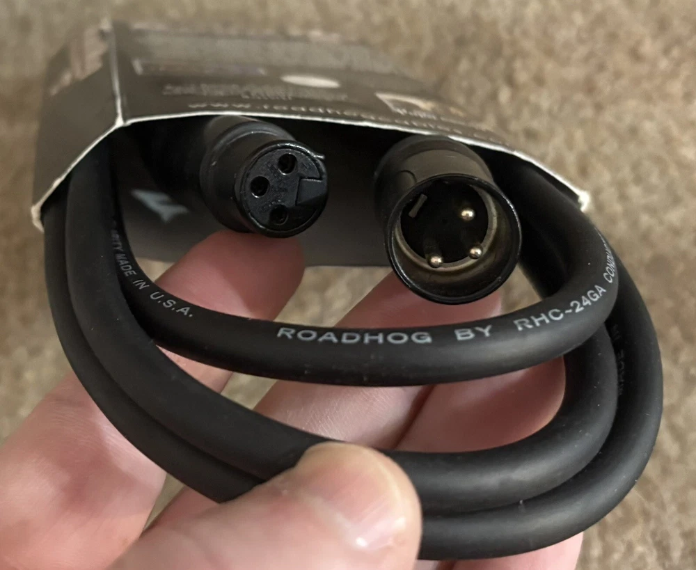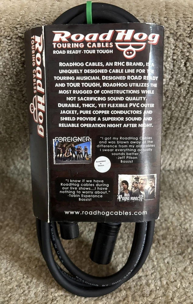 The product is a 6-foot RapcoHorizon Roadhog XLR mic cable with model number NRAP220. It features a black color and has an XLR male connector on one end and an XLR female connector on the other end, both being 3-pin. This cable is designed for professional audio applications and is ideal for connecting microphones or other audio equipment that utilize XLR connections. The cable length is 6 feet, providing enough length for various setups in recording studios or live performances. New condition, see pictures This will be shipped in box with bubble wrap to ensure safe delivery. Check out my other listings, many more items available, I do combine shipping.