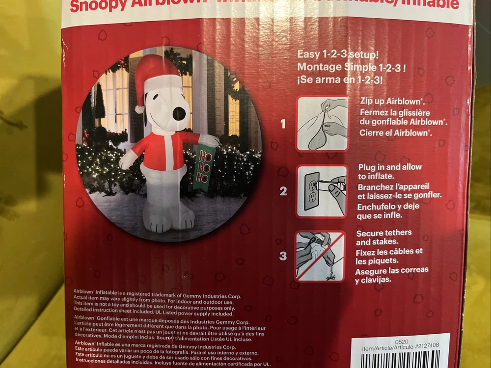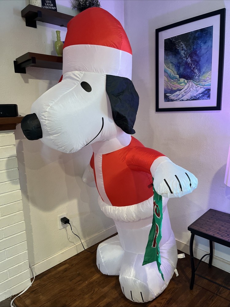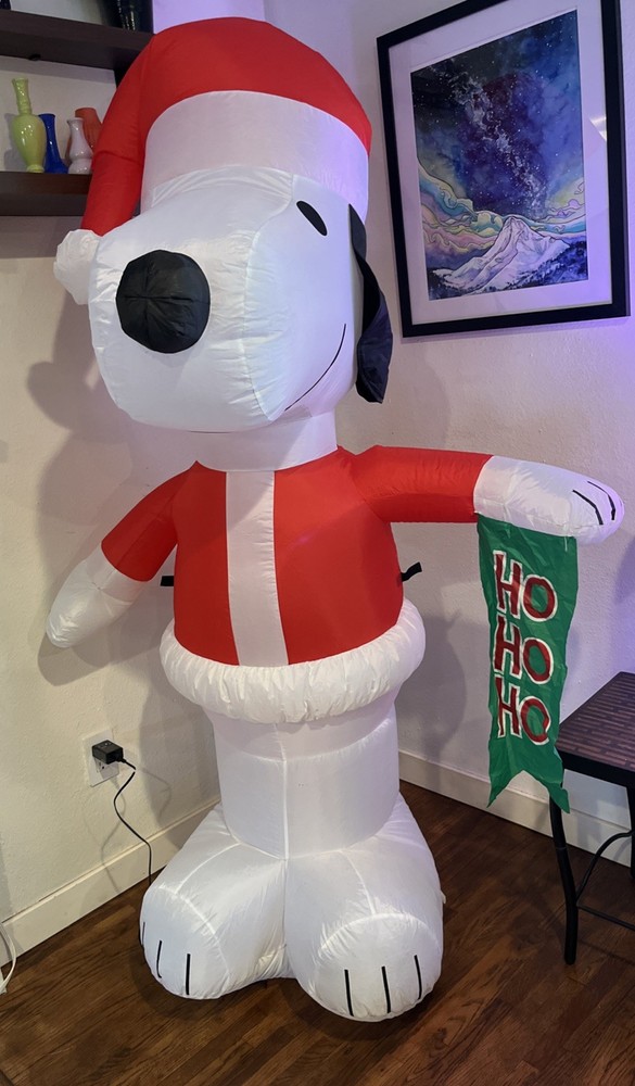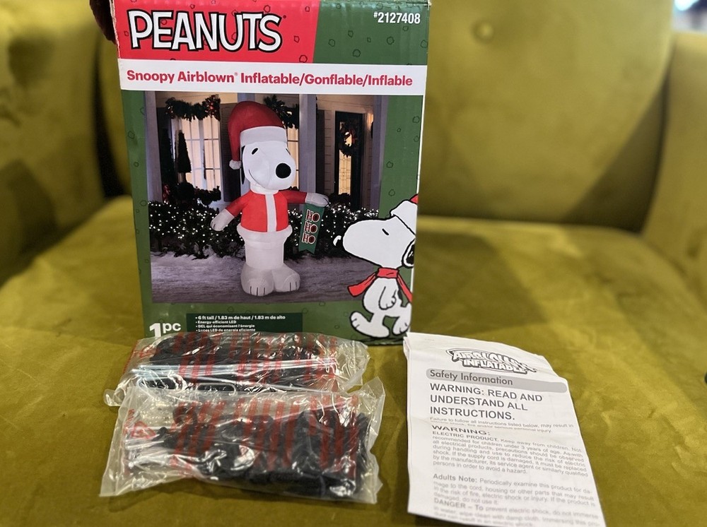 Add a festive touch to your holiday decor with this Gemmy Peanuts 6 Foot SNOOPY Santa Hat Christmas Santa Airblown Inflatable Lights. Featuring the beloved character Snoopy, this inflatable decoration is perfect for any Peanuts Gang fan. The unit type is in feet and the character family is Peanuts Gang. It is a Christmas character type that will definitely make your holiday season more enjoyable. The inflatable feature adds a unique and eye-catching touch to your yard decor. Celebrate the occasion of Christmas with this charming and delightful inflatable decoration.