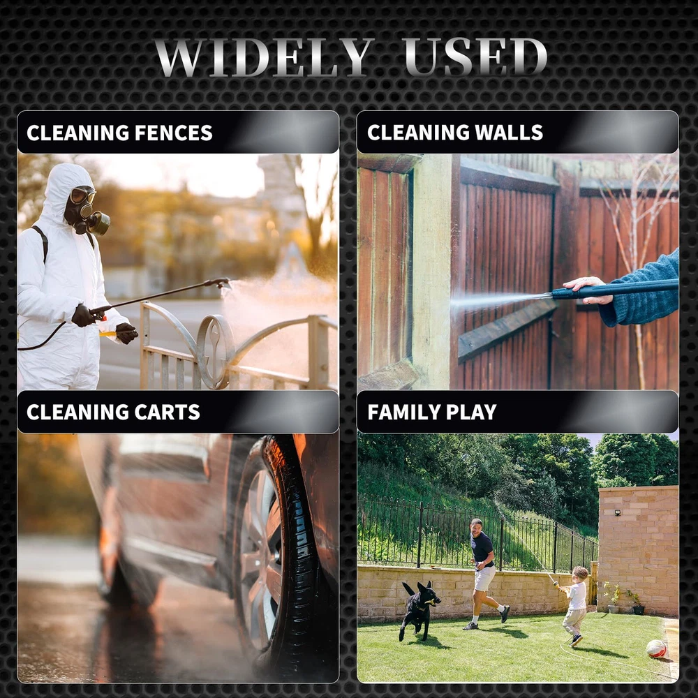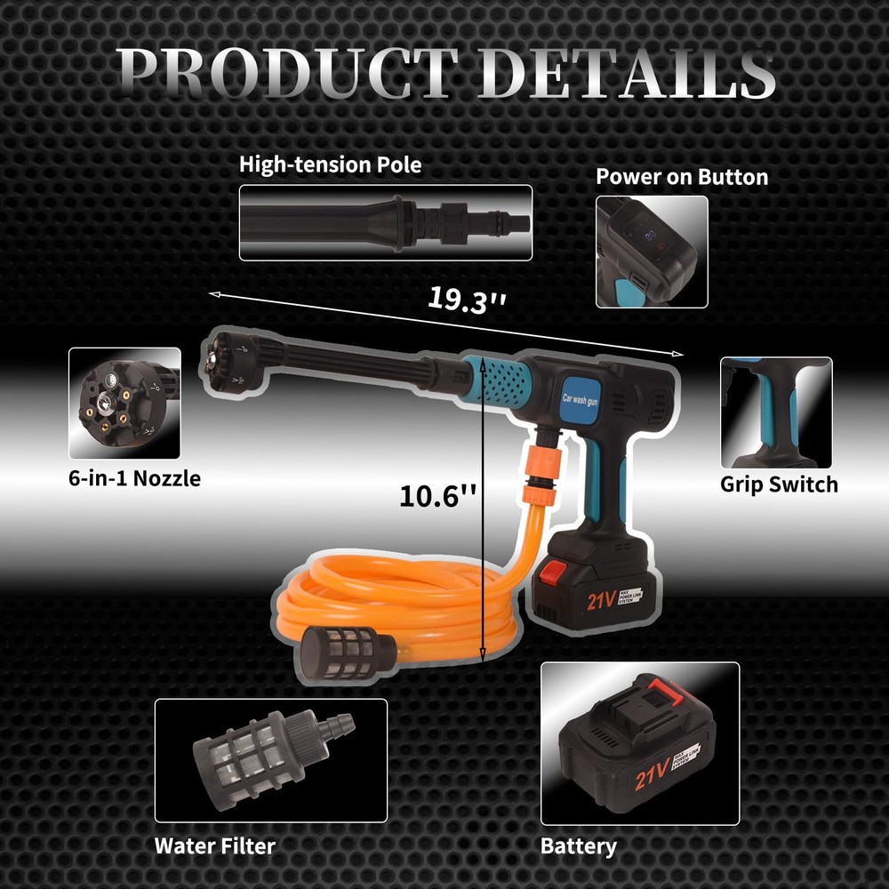 6-in-1 Cordless Pressure Washer 4-Speed Adjustment Water Spray Gun Portable NEW Details: About this item π±γππππππ πππππππππ πππππγThe portable pressure washer equipped with copper brushless motor,strong power and long service life.[Working Pressure]:45 BAR (652.67 PSI),[Flow rate]:3.6L/min=215L/h=0.95GPM,[Battery Capacity]: 4000 mAh,[Rated Power]:305W,[Motor Voltage]: 21V,[Charging Voltage]:110-240V,[Spraying Distance]:More than 10 Meters; π±γπ-πππππ ππππππππππ & π-ππ-π ππππππγCordless pressure washer designed 4-Speed adjustable with LCD screen, water flow intensity can be adjusted flexibly.6 in 1 nozzle forms include: Angle 0Β°, 15Β°, 25Β°, 40Β°, shower mode, water flow mode can adjust the water state, so that you can arbitrarily switch the spray mode you want without replacing the nozzle, container offered can be widely used for cleaning vehicles, bikes, boats, windows and driveway. π±γππππππππ ππ§π πππππππππ πππππγBattery powered pressure washer portable equipped with 4000mAH battery that allows you to wash the car without plugging in the process of use, get rid of wire troubles. The 16.5ft hose with filter basket can effectively filter impurities, particles, waste leaves or sludge,a long enough hose allows you to be free of space constraints, bring you a relaxed and happy cleaning, bring a very good sense of experience. π±γππππ ππππππππππππγSetting up our portable pressure washer is a breeze and only takes a few minutes. Simply charge the battery and connect the washer to a water source. Simply press the button and it starts instantly.And 180Β° rotatable nozzle, allows you to clean some difficult places, such as the car roof and underbody. It also includes a foam pot, suitable for watering or foam washing tasks. π±γππππππ ππππγWith multiple accessories and high power, the cordless power cleaner does a great job at home and garden for cleaning walls,cars,watering plants, floors, baths, swimming pools, doors, driveways, fences, and corners that are difficult to clean manually. Package Include: 1* Cordless Pressure Washer 1* Battery&Battery Charger 1* 6-in-1 Multi-Function Nozzle & High-tension Pole 1* Spray Nozzle 1* Foam Pot 1* Water Filter 1* 16.5FT Hose 1 * Storage Case 4-Speed Adjustment Cordless Pressure Washer Details: Working Pressure:45 BAR (652.67 PSI) Flow rate:3.6L/min=215L/h=0.95GPM Rated Power:305W Battery Capacity: 4000 mAh Motor Voltage: 21V Charging voltage:110-240V Working Time : 45 min Charging Time: 6-7 hrs Spraying Distance:More than 10 Meters Unit Weight: 8.8 Lbs (power washer+battery) NOTIFICATIONS:Insert, press and rotate to install the 6-in-1 spray nozzle; make sure 0Β° nozzle faces upwards FILTER SUCTION Portable power washer cordless is equipped with filter, when the river water or bucket water absorption, filter can filter impurities in the water, better protection of the motor. 4 SPEED ADJUSTABLE DISPLAY Cordless pressure washer designed 4-Speed adjustable with LCD screen, water flow intensity can be adjusted flexibly. 6-IN-1 MULTIFUNCTIONAL NOZZLE The portable cordless electric power washer is equipped with 6-in-1 nozzles with different spray angles (0Β°, 15Β°, 25Β°, 40Β° foam spray, shower). FAST SHIPPING WARRANTY EASY RETURNS CONTACT US FAST SHIPPING We only ship to US mainland 48 states and worldwide via ebay international shipping program. We don't offer direct international shipping. Consult us if you live in Hawaii, Alaska or Virgin Islands. Also we don't ship to any APO/FPO/PO BOX address. We offer FedEx Ground or Home delivery in optional which can make it faster, charge additional shipping fee. Delivery is any day from 1-5 business days (Monday through Friday, excluding weekends and holidays) WARRANTY This item is covered by our 12 months unlimited mileage warranty. Any customer may use the same outlets to facilitate a return or warranty claim. Any item must be returned within 30 days of the original purchase for refund; item(s) retaining a warranty may be returned beyond 30 days but within the remaining warranty period. Returns that are not subject to warranty may accrue a restocking fee and should be returned at the customers cost. We reserves the right to request proof of purchase and mechanical failure in the event of any warranty claim; any returns or claims that violate Ebay's Online Return policies will be reported. We holds no responsibility or liability for additional repairs, damages (punitive or non-punitive), loss of time, or any other extraneous circumstances created by a purchase made from said party. EASY RETURNS We understand that sometimes you need to make a return or an exchange. All we ask is you send it back in the same condition it was received - new and un-used. If the product you receive is not the one you ordered, please take photos of any visible of visual reference and contact us directly; photos must be CLEAR and VISIBLE. Logistical claims must be filed within 30 days of received the product; exchanges in these cases will be handled promptly and at?no cost to the customer. In order to process a return or exchange, please call us or send us a message through eBay and we will be happy to assist you immediately. HoweverοΌany return that is NOT defective or NOT received in error, is the responsibility of the customer. We DO NOT cover any shipping costs and/or additional fees associated with the transaction. CONTACT US We are open Monday to Friday 8am to 5pm Mountain Standard Time, and Saturday 9am to 1pm MST. Our friendly staff are available during these hours. Please feel free to call us, or send us a message via eBay. We aim for complete customer satisfaction and repeat business; we will be more than happy to help you feel 100% comfortable with your purchase.