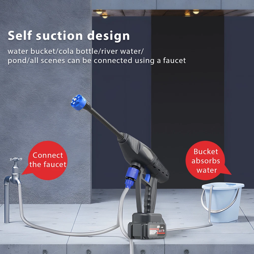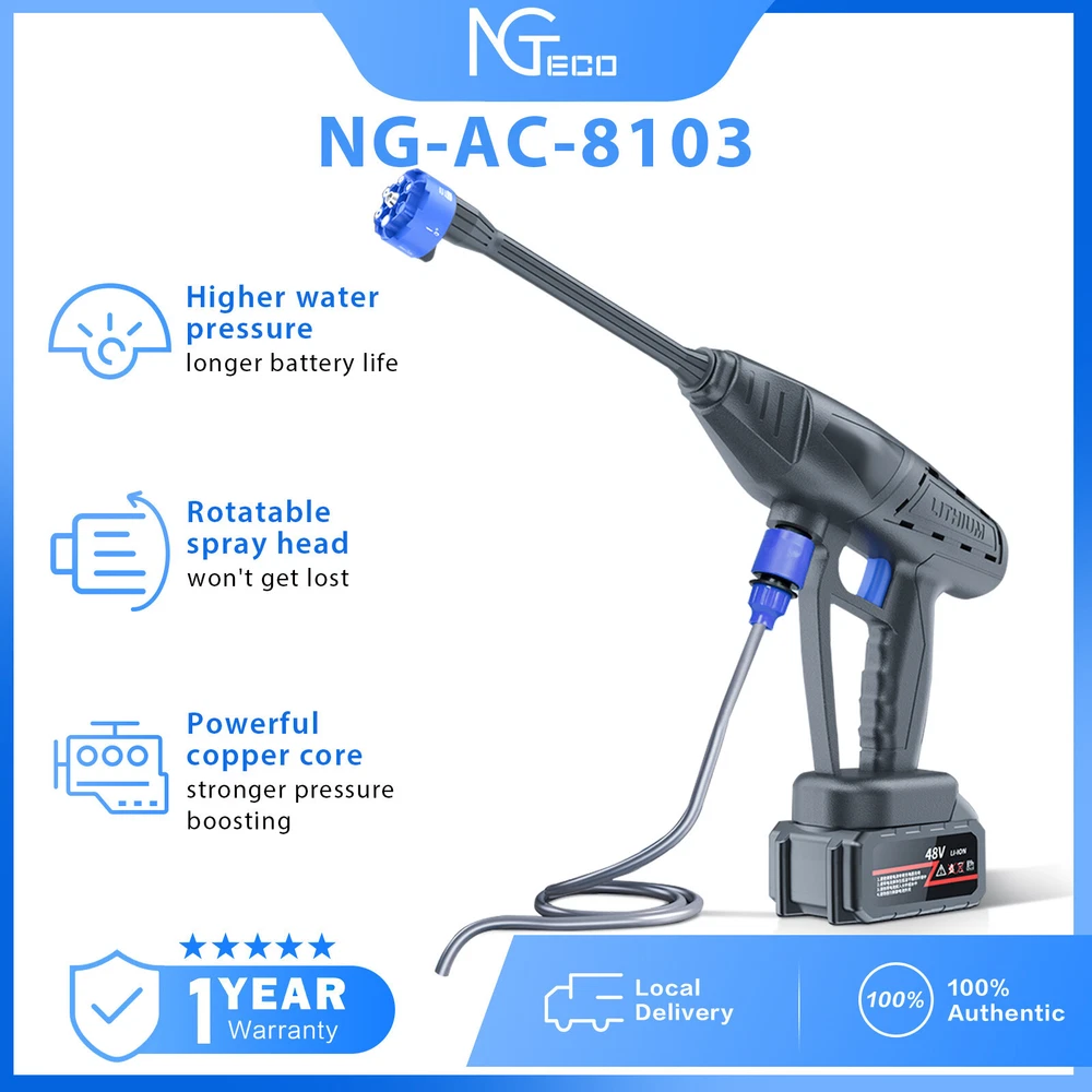 Introducing the NGTECO Cordless Electric High Pressure Water Spray Gun Portable Car Washer Cleaner Tool! This powerful cleaning tool features a 26bar water pressure and a rated flow of 240 L/h, making it perfect for cleaning your car or other outdoor surfaces. The gun is lightweight and cordless, making it easy to use and maneuver. It comes with a US Plug and two batteries with a battery capacity of 1200mah for one battery. The product also includes a water inlet filter and a quick connect feature for added convenience. The shooting range of the gun is 4-6m/157.48-236.22inches, and it has a maximum pressure of 1.2mpa/145PSI. This pressure washer gun is perfect for anyone who needs a reliable and efficient cleaning solution. Specification: Type: Water Pressure Washer Color: Black Power Source: Battery Battery voltage: 48VF Peak power: 300W Rated pressure: 30bar Battery capacity: 12000mah for 1 Battery Water pressure: 30bar Shooting range: 15m Number of batteries: 1