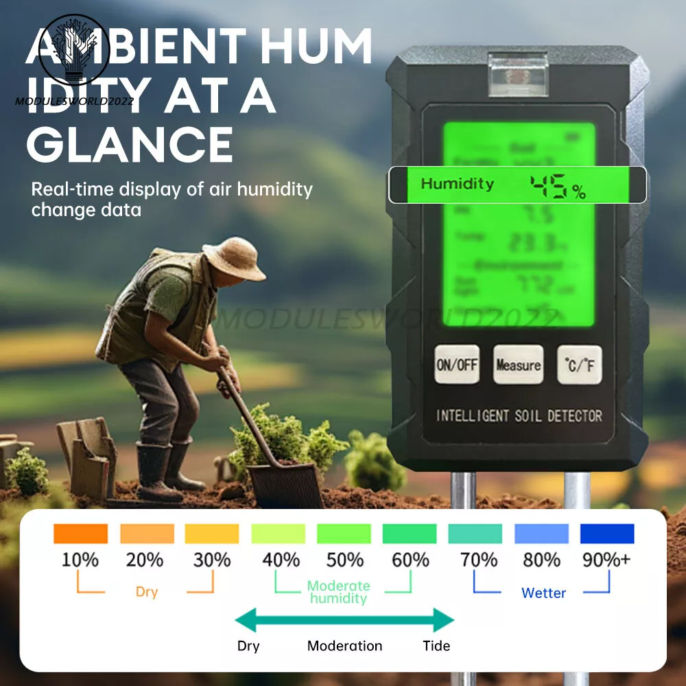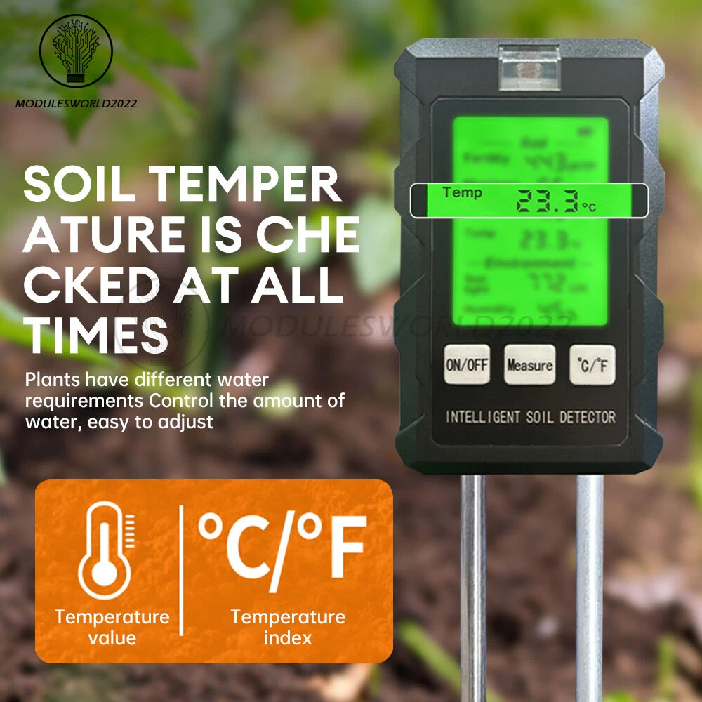 Features: Portable, Backlit Display, Digital Display Brand: Unbranded Type: Digital UPC: Does not apply EAN: Does not apply Marke: Markenlos option: 6 in 1 Soil Tester gtin13: Does not apply Displayed Measurements: Hygrometer/Humidity, Temperature Color: Black