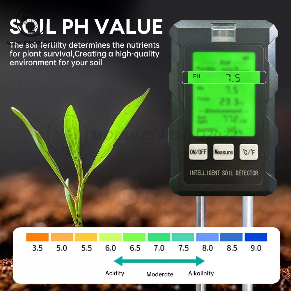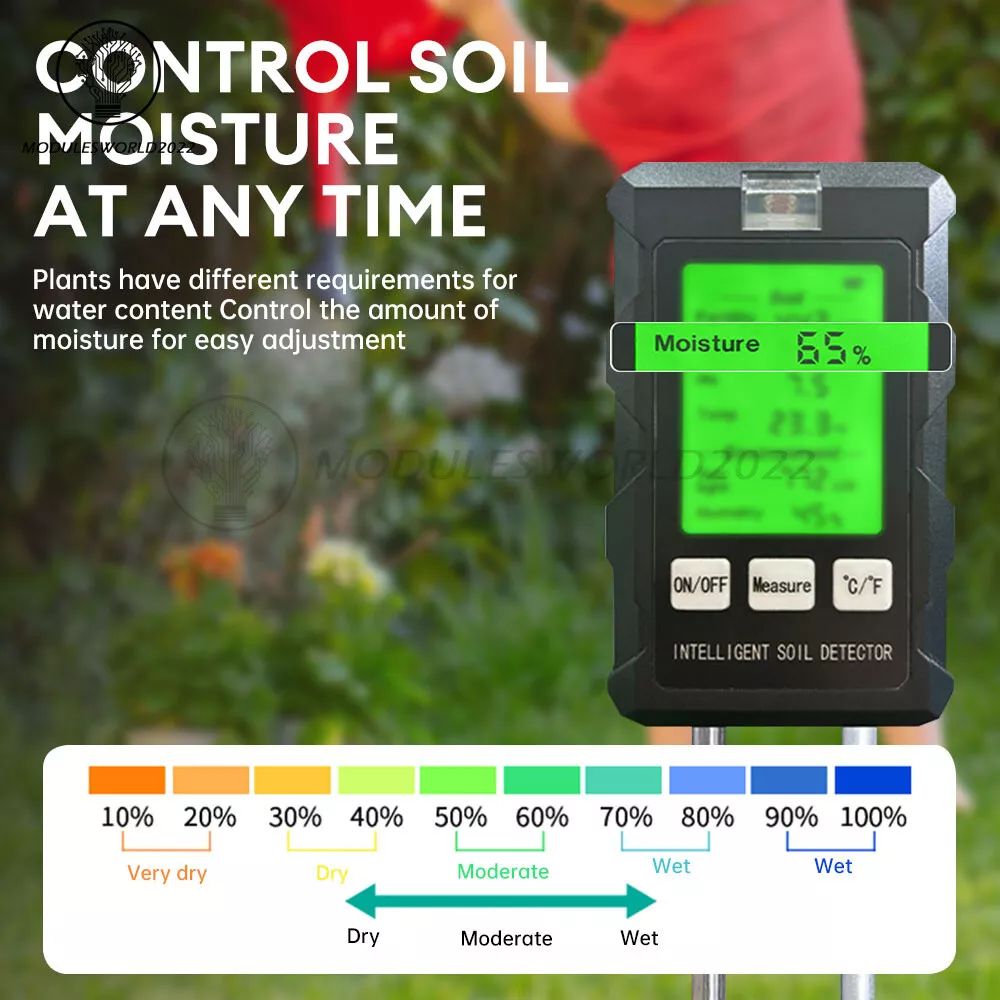 6-in-1 PH Tester Soil Water Moisture Light Test Temperature Humidity Meter USA