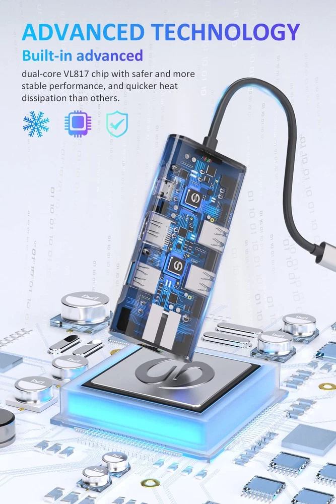 7-Port USB Hub for PC Desktop with Fast Data Transfer