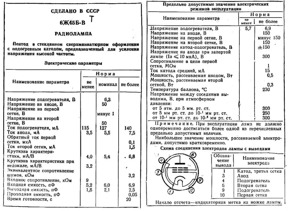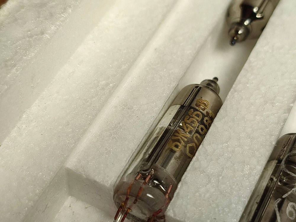 6 TUBES LOT . Same Date from 70's 6pcs 6J45B-V / 6Zh45B-V Miniature HF Pentode Tubes USSR NOS 6J45B-V / 6Zh45B-V (6Ж45Б-В) Tiny HF pentode tubs. Lot of 6 tubes. Novosibirsk Factory H igh reliability , long life non less 5000 hours. Tubes have " OTK " and " ◊ " marking Indirectly heated subminiature low voltage pentodes with a short anode-grid characteristic of increased reliability and mechanical strength. Rare and great sounding, ideal for RIAA preamplifiers, made in USSR Filament voltage,V 6,3 Filament current,A 0,115-0,135 Anode voltage,V 50 Anode current,A 0,003-0,007 Anode power,W 0,5 Grid1 voltage,V minus 1 Grid2 voltage,V 50 Steepness,mA/V 4,0-6,8 Reverse grid current,uA 0,1 Microphnic noise,mV 10 --------------------------------------------------------------------------------------------------------------------------------------------------- Import duties, taxes and chargers are not included in the item price or shipping charges. These charges are the buyer's responsibility. Please check with your country's customs office to determine what these additional costs will be prior to bidding buying. Combine shipping is accepted. If you need less or more items of this type, or if you need add some other items, contact us, and we will make special listing for you. Give us the list of items you need, and we'll do the rest. We have many other vacuum tubes for audio and other, ask us if you need any of them. Items are shipped from Lithuania Post (Europe Union) via expedited International tracking. Returns We guarantee you complete satisfaction with all our high quality products. If you receive an item you did not order, or if an item you ordered is received damaged or defective, we will refund you the price you paid for it or replace it with identical one. The item should come to the above address within 30 days after you received it. After 30 days we will no longer be responsible and the item won't be taken back. Item for returning must have the original tags and packing, otherwise it won't be accepted.
