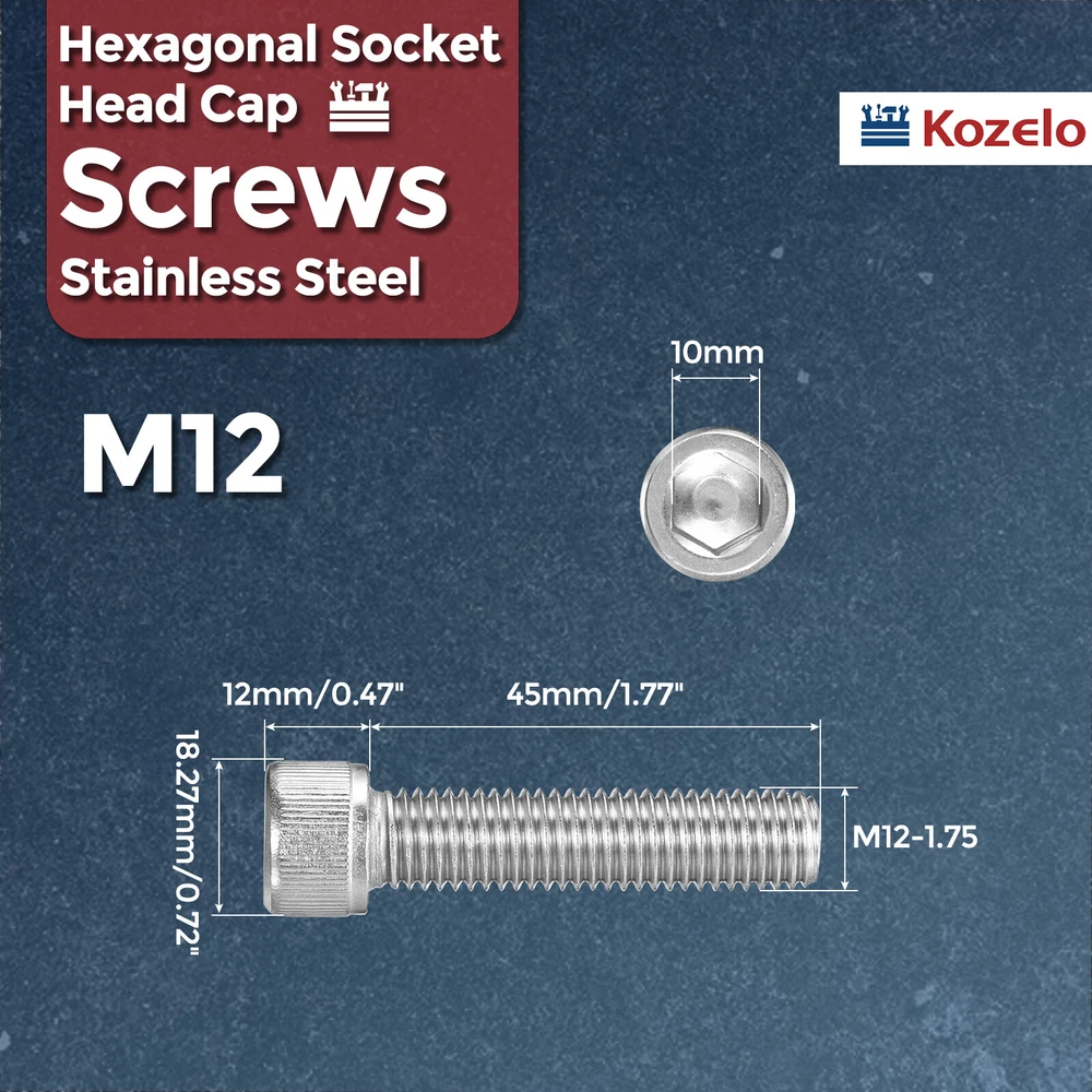 Document APPLICATIONIn machinery by fixing and connecting components to ensure stable operation. These screws are essential for assembling machines, equipment, and tools, maintaining their structural integrity. Additionally, they are used for adjusting positions of mechanical parts and performing maintenance tasks to up hold equipment precision and functionality.ABOUT THIS PRODUCTS-304 Stainless Steel materials, corrosion-resistant, high-temperature resistant, and durable.-Specially treated surface, simple, beautiful and practical appearance.-Performs well in medium temperature environments and areas with low corrosion risk.-A variety of sizes are available to meet a variety of uses.-A versatile and reliable choice for a variety of industrial and commercial applications.SPECIFICATIONColor: SilverHead Style: Hex HeadThread Size: M12-1.75Thread Length: 45mm/1.77"Head Diameter: 18.27mm/0.72"Head Thickness: 12mm/0.47"Hexagon Width: 10mmMaterial: 304 Stainless SteelSurface Treatment: WhitewashedPackage: 6 packs of socket head cap screwsNOTE-Before purchase, confirm correct size needed. Use caliper,gauge checker for measurement; avoid ruler or tape measure. 6pcs Socket Head Cap Screws - [M12-1.75 x 45mm] 304 Stainless Steel, Silver APPLICATION In machinery by fixing and connecting components to ensure stable operation. These screws are essential for assembling machines, equipment, and tools, maintaining their structural integrity. Additionally, they are used for adjusting positions of mechanical parts and performing maintenance tasks to up hold equipment precision and functionality. ABOUT THIS PRODUCTS -304 Stainless Steel materials, corrosion-resistant, high-temperature resistant, and durable. -Specially treated surface, simple, beautiful and practical appearance. -Performs well in medium temperature environments and areas with low corrosion risk. -A variety of sizes are available to meet a variety of uses. -A versatile and reliable choice for a variety of industrial and commercial applications. SPECIFICATION Color: Silver Head Style: Hex Head Thread Size: M12-1.75 Thread Length: 45mm/1.77" Head Diameter: 18.27mm/0.72" Head Thickness: 12mm/0.47" Hexagon Width: 10mm Material: 304 Stainless Steel Surface Treatment: Whitewashed Package: 6 packs of socket head cap screws NOTE -Before purchase, confirm correct size needed. Use caliper,gauge checker for measurement; avoid ruler or tape measure. Hot Item Payment 1.We accept eBay payment . 2.Payment must be received within 7 business days of auction closing. Shipping 1.We ship to your eBay or Paypal address. Please make sure your eBay and Paypal address is correct before you pay. 2.Items will be shipped within 1-3 business day when we received payment. 3.Delivery time depends on destination and other factors. Description Policy 6pcs Socket Head Cap Screws - [M12-1.75 x 45mm] 304 Stainless Steel, Silver APPLICATION In machinery by fixing and connecting components to ensure stable operation. These screws are essential for assembling machines, equipment, and tools, maintaining their structural integrity. Additionally, they are used for adjusting positions of mechanical parts and performing maintenance tasks to up hold equipment precision and functionality. ABOUT THIS PRODUCTS -304 Stainless Steel materials, corrosion-resistant, high-temperature resistant, and durable. -Specially treated surface, simple, beautiful and practical appearance. -Performs well in medium temperature environments and areas with low corrosion risk. -A variety of sizes are available to meet a variety of uses. -A versatile and reliable choice for a variety of industrial and commercial applications. SPECIFICATION Color: Silver Head Style: Hex Head Thread Size: M12-1.75 Thread Length: 45mm/1.77" Head Diameter: 18.27mm/0.72" Head Thickness: 12mm/0.47" Hexagon Width: 10mm Material: 304 Stainless Steel Surface Treatment: Whitewashed Package: 6 packs of socket head cap screws NOTE -Before purchase, confirm correct size needed. Use caliper,gauge checker for measurement; avoid ruler or tape measure. Hot Item Payment 1.We accept eBay payment . 2.Payment must be received within 7 business days of auction closing. Shipping 1.We ship to your eBay or Paypal address. Please make sure your eBay and Paypal address is correct before you pay. 2.Items will be shipped within 1-3 business day when we received payment. 3.Delivery time depends on destination and other factors.