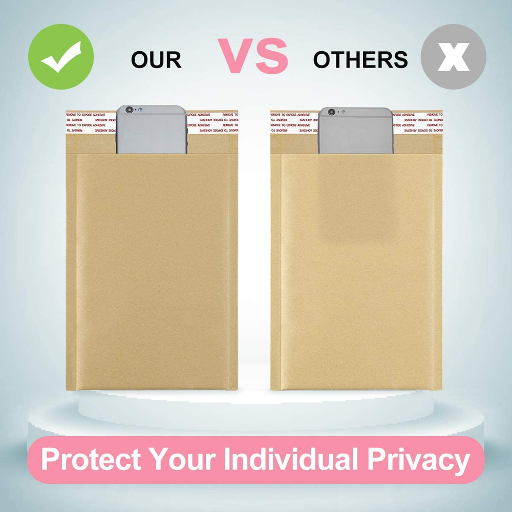 Natural Kraft Bubble Mailers: The brown kraft bubble mailers outer size is 6x10 inch, while the inner size is 6x9 inch, with brown kraft paper, which color is dim. Smooth surface is perfect for handwriting, labeling and stamping. With full air bubbles, our natural bubble mailers can protect your value products from damage caused by external impacts Strong Self Sealing Adhesive: Our padded envelopes is using four season adhesive, which can maintain strong stickiness throughout the year, even if the weather is very hot or cold. The strong stickiness prevents your items from being secretly replaced during transportation. The adhesive is covered with silver strip, which are easily peel off the strip and seal the bag Sturdy and Durable Construction: The thicken shipping bags covers with strong kraft paper material, making them not easily punctured. Beside, the bubble bags features with excellent shockproof and tearing proof effects because of the interior built with bubble lined wall construction and the reinforce sealing on the edge. They can keep your stuff safely to destination even though using on harsh environment Convenient and Easy to Use: These natual kraft padded envelopes are the perfect choice for small and middle business for easily using with not require extra packaging material, which can improve your company productivity at work, save much time. It is very suitable to transport for cards, CD, jewelry, makeup supplies and more Enhance Brand Influence: Bright colors bring a lively atmosphere, which makes the items you transport more conspicuous and will not be easily lost. Beautiful colors can also make your customers happy and enhance your brand influence. We have been committed to making better products to serve our customers, so that their business can get better and better UCGOU 6x10" Natural Kraft Bubble Mailers 25pcs We UCGOU is the professional manufacturer specializing in producing all sorts of poly mailers and bubble mailers. Sustainable innovation is our unremitting pursuit. Padded Envelopes Protection Lined with bubble, Bubble mailers seal well and the padding is sufficient. The bubble mailer envelopes provid more protection during transit as compared to basic poly mailers and don't add too much bulk, as a result the shipping is so much better than the complicated larger packages. Enhence Company Image and Your Brand Tape, wrapping film and corrugated cardboard box......This is too much trouble when you prepare to ship somethings. It's time to say bye to the troublesome!! Come to UCGOU! Send your package in clean, simple but grand style which would help to upgrade your company professional image. Believe us. Bubble mailers with bright and pure color will allow customers to easily identify their orders from your shop when they arrive in their mail.