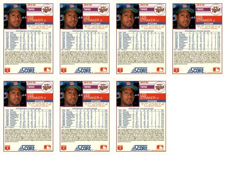 (7) 1988 Score #108 Les Straker RC Minnesota Twins Card Lot Condition: NM-MT