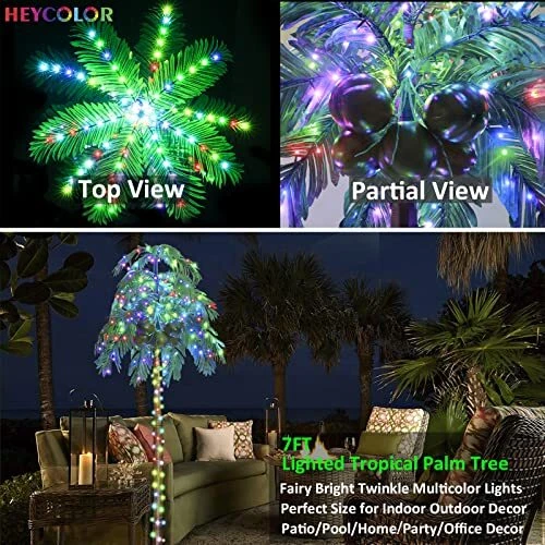 Return Policy Fast Delivery Trusted seller 7 FT Color Changing LED Palm Tree with Coconuts, Remote Control - for Pool, Beach, Yard, Party Decor Product Description Color Changing Palm Tree with 5 Coconuts: The multicolor coconut tree is designed by brown straight trunk and green palm fronds with color changing LED lights, can add some tropical style to your patio, pool, Hawaiian jungle party, Tiki bar, etc Updated 32 Keys Remote Control: The colorful palm tree lights can be controlled with remote. You can customize the color of the LED tropical palm tree, set up the time(4 hours on, 6 hours on, 8 hours on) and control the brightness of the lights 18 Colors and 7 Lighting Modes: 16 different solid single color, 2 combination colors (Red White Blue & Colorful), and 7 dynamic lighting modes (twinkling and flashing). You can switch the led lights from cozy to cheerful blinking Artificial palm tree Outdoor Decoration: The package contains ground nails that can make the palm tree stand steadily outdoors. IP44 waterproof functions make it more suitable for outside use Widely Application: Wver on the beach, swimming pool, yard, garden, party, home, office, indoor or outdoor, and whenever winter or summer, daytime or holiday, always bring you the Hawaiian tropical happiness Easy to Assemble: The palm tree is prelit. You just need screw the trunk into the base, and separately connect 2 trunks and the male & female plug. Then shape the leaves as you want. You can use it to decorate your room and luau aloha party Specification: The faux palm tree with lights is 6 FT height, designed with 170 long life span LED lights, powered by 29 V low voltage adaptor, which is more save-energy Shipping Returns Payment Shipping Shipping is FREE to all addresses other than APO/PO boxes in the lower 48 states. All our stock ships from US-based warehouses. Shipped via USPS or UPS (depending on location and package weight) Unless stated otherwise, all orders will ship within 24-72 hours of your payment being processed. Check our feedback to see the great reviews of FAST shipping we offer. Returns Seller does not accept returns Payment We currently accept payment via eBay managed payments only. Once payment is cleared, we will dispatch your shipment within 1-3 business days. Please refer to the "Shipping" tab for more information regarding shipping speed to your destination.