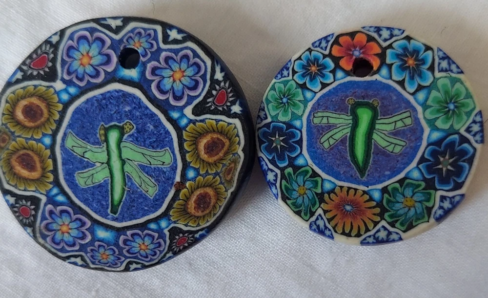 This auction is for 7 different fine design Femo beads. They are about 1 inch across, one is a bit smaller. Very fun designs. The hole is through the top. If you purchase multiple items shipping can be combined.