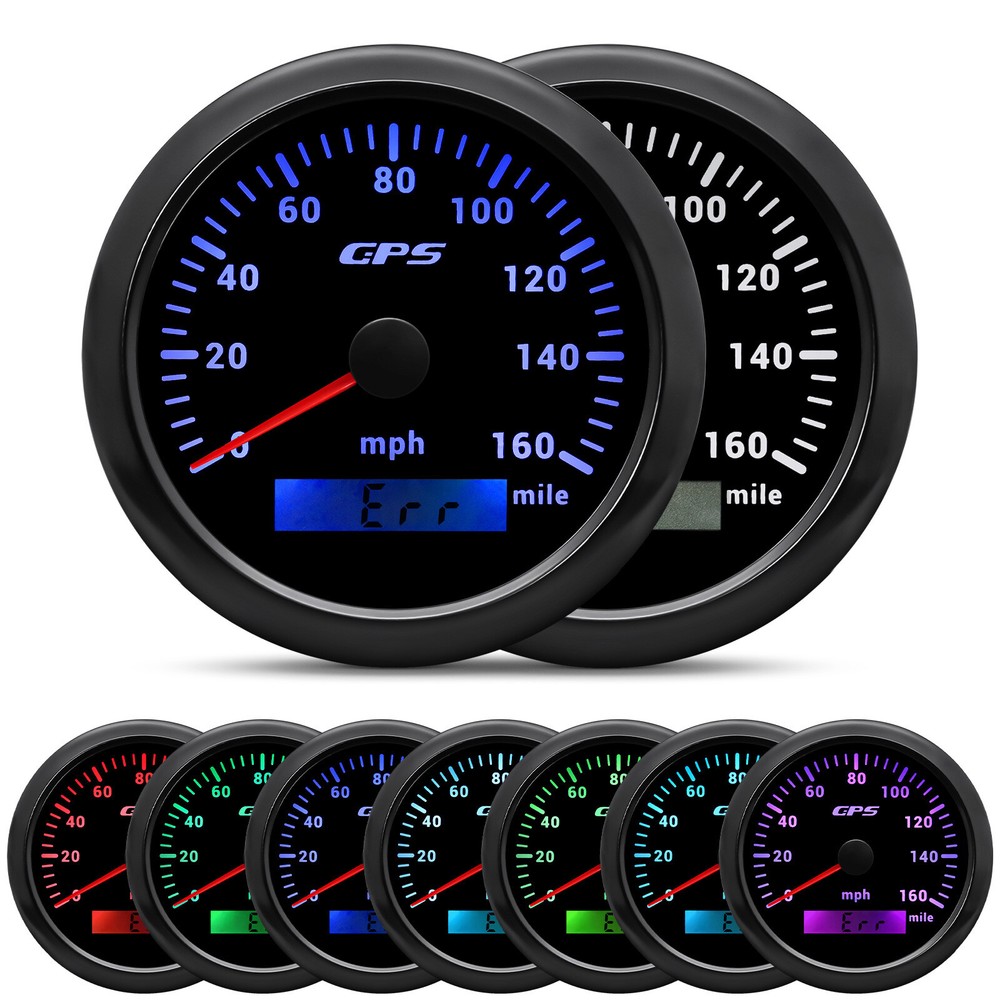 7 Gauge Set with Senders 85mm GPS Speedometer 0-160MPH Tacho for Boat Car Truck 7 Gauge Set 85mm GPS Speedometer 0-160MPH Tachometer & 52mm Fuel Gauge Water Temp Oil Press Volt Trim 7Colors LED For Car Boat Warmly tips: If any problem after buying, such as some when you install or the parcel received or un-received, please do not open a case and do not hesitate to contact us. We would do our best to give you the best solution NOTES: The Sending units will be included Feature: High-brightness LED backlight. 316 stainless steel for long-term use even in acid-base, humid environment. IP67 waterproof and dust-proof grade. With curved glass( with anti-fog function). Suitable for all kinds of vehicle modification. Using stepper motor drive pointer, accurate display of the engine speed, and with the LCD display clear display mileage. Gauges have many kinds backlight color (red,yellow,orange,green,blue,purple,white),customers can adjust any color that you like Product Detail GPS Speedometer Gauge Install Diameter: Φ85mm or 3-3/8" Signal: GPS Working Voltage: 9~32V DC Size: 12x8x12cm / 4.72x3.1x4.75 inch Indication Range: 0-160MPH Backlight:7 Colors Backligt Tachometer Engine hours: 0.0-99999.9H Backlight :7 Color backlight Indicating Range: 0~8000 RPM Signal : Pulse For Tachometer, you can substitute for different unit, please contact us before / after purchase or note on the order. Tachometer: 0-3000rpm/0-4000RPM/6000RPM/7000RPM Volt Gauge Sizes: 52 mm (2-1/16") Measuring Range: 8 - 16 (V) Backlight: 7 Colors Fuel Level Gauge Sizes: 52 mm (2-1/16") Measuring Range: Empty - Full Resistance: 240 (E) - 33 (F) ohms Backlight: 7 Colors Water Temperature Gauge Install diameter: Φ52mm Indication range: 0~120℃/30-250℉ Input signal: 287.4~22.4 ohm Storage temperature: -40~+85℃ Backlight: 7 Colors Oil Pressure Gauge Install diameter:Φ52mm or 2-1/16" Indication range:0~10bar / 0-150 PSI Operating temperature:-30~+75℃ Storage temperature:-40~+85℃ Backlight: 7 Colors Trim Gauge 7 Color Backlight:Red (default)→green →blue →white →yellow→cyan →Purple →(automatic). Fixing dimension:52mm(2'') Indicating Range:UP-DN Signal:0-190ohms Working Voltage:9-32V(12V/24V) Operation mode:LCD display,stepper motor. Package Includes: 1X 85MM Digital GPS Speedometer Gauge 1X GPS Antenna 1X 85mm Tachometer 1X 52mm Fuel level gauge 1X 52mm Voltmeter 1X 52mm Water temp gauge 1X 52mm Oil pressure gauge 1X 52mm Trim Gauge 1X Trim Gauge sensor 1X Oil pressure Sensor (1/8NPT) 1X Water temp Sensor (1/8NPT) 1X Tachometer Sensor(M16*1.5) 1X Fuel Level sending units 240-33ohms Installation Instruction
