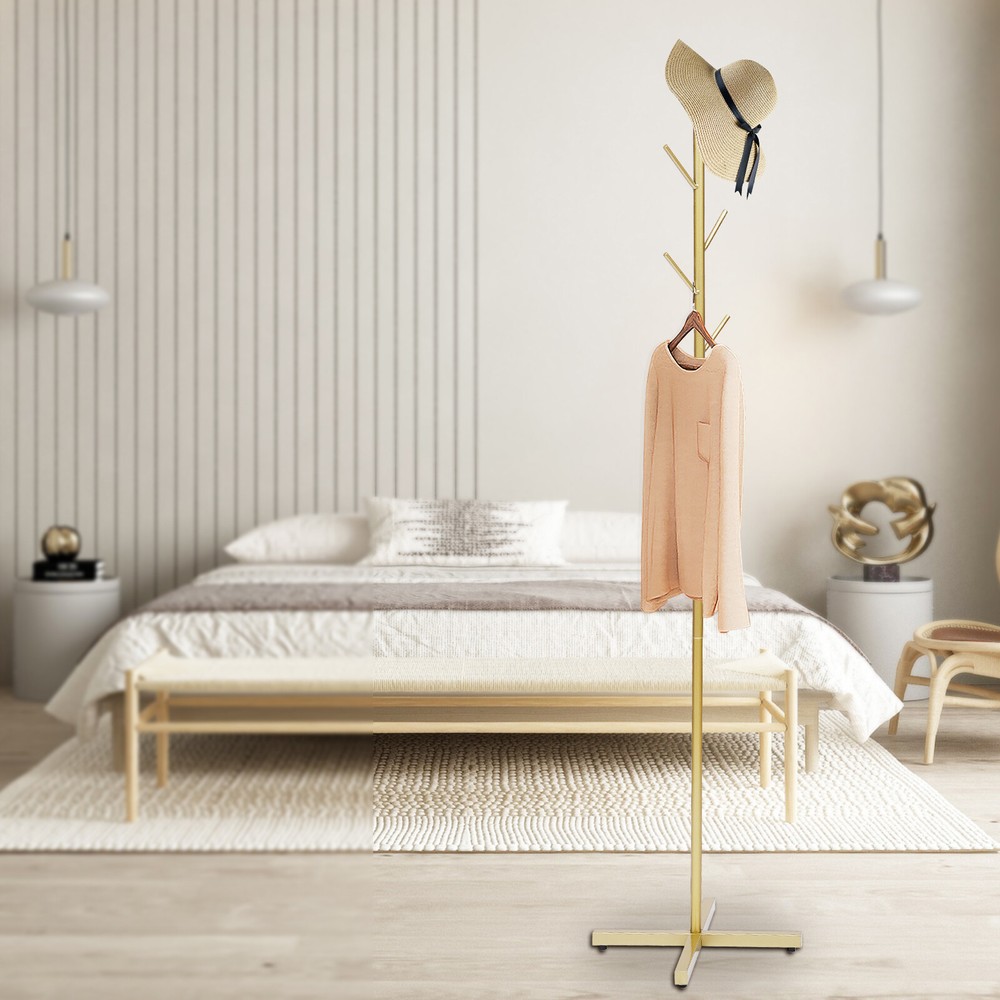 7 Hooks Coat Rack Hat Stand Tree Clothes Hanger Umbrella Holder Metal Organizer Description : Polished Smooth Edges And Meticulous Round Frame Structure Is Much More Durable. Smooth Surface,Easy To Keep Clean And Maintain Selection Of Iron Pipe Racks, No Deformation And Rust, Stronger Bearing Capacity. This Coats Stand Comes With 7 Hooks To Provide Ample Amount Of Hanging Space For Multiple Coats. Branch Shape Design And The Unique Branch Hooks, Make It Full Of Nordic Style.Simple And Stylish Design Is Suitable For Any Room The Cross Base Conforms To The Principle Of Mechanics, And The Load-Bearing Stability Is Not Easy To Fall Wear-Resistant Anti-Skid Protective Rubber Support Feet To Ensure a Better Fit Between The Base And The Ground, Protect The Floor, And Balance The Stress. A Perfect Stable Free-Standing Hanger For Coat, Clothes, Hats, Shoes, Umbrella, Purse And So On. Specification: Material: Iron Style: Simple And Stylish Color: Gold/Black Size: 42*42*170cm/16.54xx16.54x66.93inch Weight: About 1.75kg Note : Due To The Difference Between Different Monitors , The Picture May Not Reflect The Actual Color Of The Item . Due To Manual Measurement , There May Be 1 - 2cm Error In Size . Payment Delivery details Terms of sales About us Contact us Payment We accept ebay payment 。 Fees such as import duties, taxes are not included in the item price or shipping costs. These charges are the buyer's responsibility. Delivery details Shipping: 2-9 working days to: USA Terms of sales We maintain high standards of excellence and strive for hundred percent customer satisfaction. Feedback is very important to us. We hope that you contact us immediately before you give neutral or negative feedback, so that we can address your concerns. It is impossible to address issues if we do not know about them! About us Your satis faction is our ultimate goal. We work hard to earn your trust and future business. Our certified technicians have tested each item before shipping. The unit comes with 1 year limited warranty on all manufacturing defects. a) If you receive a defective item, you may return it or ask for a discount. Please contact us within 14 days after you receive the package. b) What you returned must be intact and in its original packaging as re? u. Customer is responsible for shipping costs of the returned item. c) We will cover the cost of shipping back t with the shipping rate indicated in the registration page. We will send you a new unit or refund the full payment you paid. Thank you. Contact us Business Hour Business Hour: Monday To Friday: 8:30 AM to 5:00 PM (Beijing China time) Due to time zones, our reply to your questions may not be immediately. But within above working time, we will reply your email within 24 hours. If it's non-workdays, please kindly be patient and wait till Monday. Please contact us with ebay message. Please feel free to contact us if you have any questions. Monday To Friday: 8:30 AM to 5:00 PM (Beijing China time) Due to time zones, our reply to your questions may not be immediately. But within above working time, we will reply your email within 24 hours. If it's non-workdays, please kindly be patient and wait till Monday. Please contact us with ebay message. Please feel free to contact us if you have any questions.