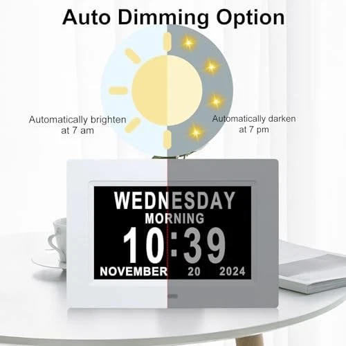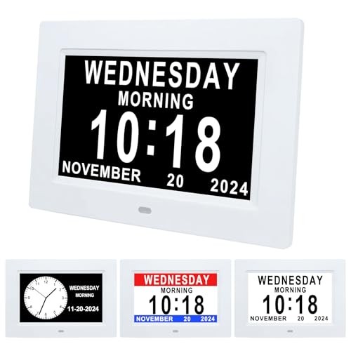 Menu 1. We require immediate payment. 2. We currently accept payment via eBay managed payments only. 3. Once payment is cleared, we will dispatch your shipment within 1-3 business days. Please refer to the "Shipping" tab for more information regarding shipping speed to your destination. 7 Inch Digital Clock with Day and Date for Elderly Large Display for Elderly Dementia Clock Customizable Alarms, 12 Alarms,4 Colors Display Digital Calendar Alarm Clock (White) Product description EASY TO READ: 7 inch digital calendar day date time clock clearly non-abbreviated spells out the full DAY of the WEEK, MONTH and DATE ,extra large digital day clock also displays MORNING(6:00am--11:59am), AFTERNOON(12:00pm--5:59pm), EVENING(6:00pm--8:59pm), NIGHT(9:00pm--11:59pm),BEFORE DAWN(12:00am--5:59am) perfect for senior elderly dementia memory loss vision impaired alzheime 12 ALARM OPTIONS: Dementia clocks with day of week has Single Alarm, Every Day, Weekdays Only, or Weekends Only, Off. & tag:Meal,Medicine,Cleaning,Appointment and so on. Electronic calendar is quickly becoming a perfect Senior Care and In Home Care necessity. AUTO DIMMING & 8 LANGUAGES: Vision impaired clock auto light dimming from 7 pm to 7 am to help save energy and protect eyes. Digital clock brightness of day and night can be edited, brightness of 1-5 levels can be selected. Calendar clock has 8 languages: English, French, Germany, Italian, Dutch, Spanish, Polish, and Wales DIGITAL PHOTO FRAME FUNCTION: The digital Wall clock can also serve as a digital photo frame with an SD card (Not Included). insert the SD card in the slot at the back of the clock. And digital alarm clock can play the photo video or music on your SD card and USB flash drive too. MAKES FOR A PERFECT GIFT: The words Dementia, Alzheimer's and Memory Loss are intentionally excluded from the packaging, making .It is quickly becoming a perfect Senior Care and In Home Care necessity.If you are not completely satisfied with our products, we will refund your money no questions asked If you are not completely satisfied with our products, we will refund your money no questions asked. PLEASE MESSAGE US IF YOU HAVE ANY OTHER QUESTIONS, AND MANY THANKS FOR READING ALL OF THIS. Copyright ©#. All Rights Reserved.
