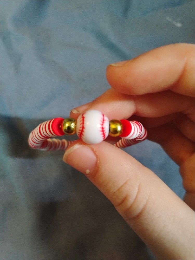 This bracelet is such a cool and unique piece! The white and red heishi beads give it a clean, sporty look, and the baseball bead adds a fun touch. It's lightweight, comfortable, and well-made—perfect for any baseball fan or someone who loves simple, stylish accessories. Definitely a great addition to my collection!
