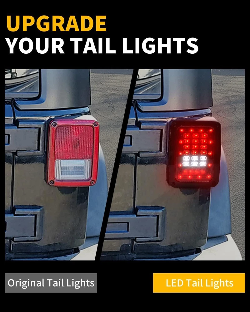 Description: -Our 7\\\\\\\\'\\\\\\\\' headlight have four lighting modes, 6500lm for high Beam, 4000lm for Low Beam, DRL(White) and Turn Signal(Yellow), more brighter than stock headlights, really light up the road for safer driving. -Newest LED Tail Lights are Dramatically Improve Style and Performance.Super Bright Lens Design with faster on/off Response Time for Driving Safety. -4" Inch LED Foglights are an excellent replacement for the stock fog light, they can boost your vision with greater illumination.It provides the best driving experience in foggy environments. -DOT,SAE,CAPA approved, safe on the road. Easy to installation, plug and play. Specifications: 7\\\\\\\\'\\\\\\\\' LED Round Headlight: * LED Color: 6000K -6500K White * Luminous Flux: 8000 Lumen High Beam/ 4800 Lumen Low Beam * Power: 100W/PC * Color: Black * Material: Diecast aluminum housing+ PC * Waterproof: IP67 * Certification: DOT, SAE, CAPA. LED Tail lights: * Color: Black * Led lifetime: 80,000 hours * IP Grade: IP67 * Certification: DOT/SAE/CAPA Approved * Watte: 90W/PC * Material:Diecast Aluminum Housing+PC * Function: Brake(Red), reverse(White), Turn signal(Red), running(Red). 4\\\\\\\\'\\\\\\\\' Fog Light: *LED Color: 6000K/White *Power: 60W/PC *Luminous Flux: 3500 Lumen/pc *Waterproof: IP67 *Size: 4\\\\\\\\'\\\\\\\\' Inch Fog Light *Lifespan: More than 50,000hours *Working Temperature: -40~+85 *Color: Black *Material: Aluminum die cast housing Warranty: 5 Years Fitment: For Jeep Wrangler JK JKU 2007-2018 Package included: 2PCS 7\\\\\\\\'\\\\\\\\' Inch Round Led Headlights 2PCS LED Tail Lights 2PCS 4\\\\\\\\'\\\\\\\\' Fog Lights