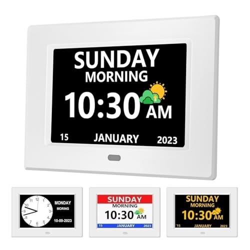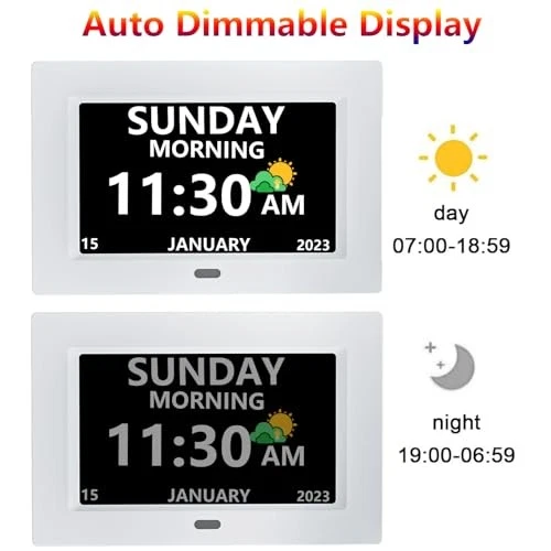 Menu 1. We require immediate payment. 2. We currently accept payment via eBay managed payments only. 3. Once payment is cleared, we will dispatch your shipment within 1-3 business days. Please refer to the "Shipping" tab for more information regarding shipping speed to your destination. 7 Inch Clock with Day and Date for Elderly Large Display Digital Clocks 12 Alarm 3 Display Modes Large Font Alzheimer's Clock Alarm Clocks for Seniors Dayclock White Product description Easy to Read Display:The large digital clock for seniors has a 7-inch screen,high contrast display and bold letters can clearly display all times,months and dates,day of the week.T are 3 display modes:Elderly Clock,Wall Clock and Colorful Clock,ensuring that elderly individuals can easily read the time & date at the moment.alarm clocks 12 Alarms and 3 Medication Reminders:The digital clock for elderly with date can set 12 daily alarms and 3 groups medication reminders,to remind us for daily exercise,make appointments,take medicine,drink water,go to the toilet,etc.Users can hang it on the wall or place it on the desk,bedroom and living room.It is a digital wall clock,bedside clock and desk clock Automatic Brightness Function:The digital calendar day clock can auto-adjust the brightness between the day and night,brightening at 7 a.m. and dimming at 7 p.m.Users can also manually set three brightness levels,high,medium and low.Manual Settings mean the brightness stays the same during the day and night Simple Settings:The digital clock with date and day of week comes with an easy-to-read manual that guides the user through the setup process,it also supports multiple languages and provides different time formats to suit different users Sturdy Clock For Seniors:Whether hung on the wall or placed on a table,the large number clock withstands daily use,making it reliable for seniors. Because it is made of durable and sturdy material that can withstand even an accidental drop Customer Service:Providing you with better service is our always belief,our after-sales service team will be happy to answer any questions you may have Note:The clock does not support battery power and can only be powered by a dedicated power adapter.The actual size of the clock is 8.03 inches long, 5.63 inches wide, and 0.96 inches thick. PLEASE MESSAGE US IF YOU HAVE ANY OTHER QUESTIONS, AND MANY THANKS FOR READING ALL OF THIS. Copyright ©#. All Rights Reserved.