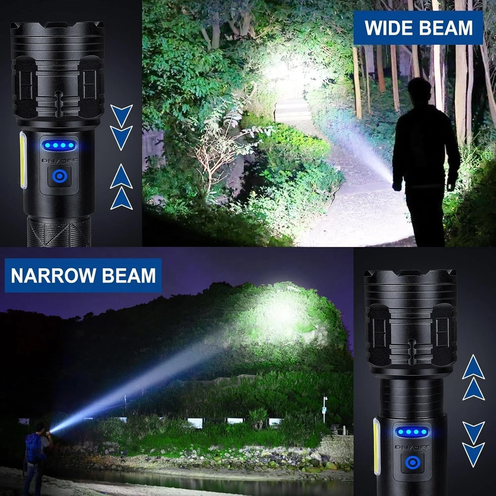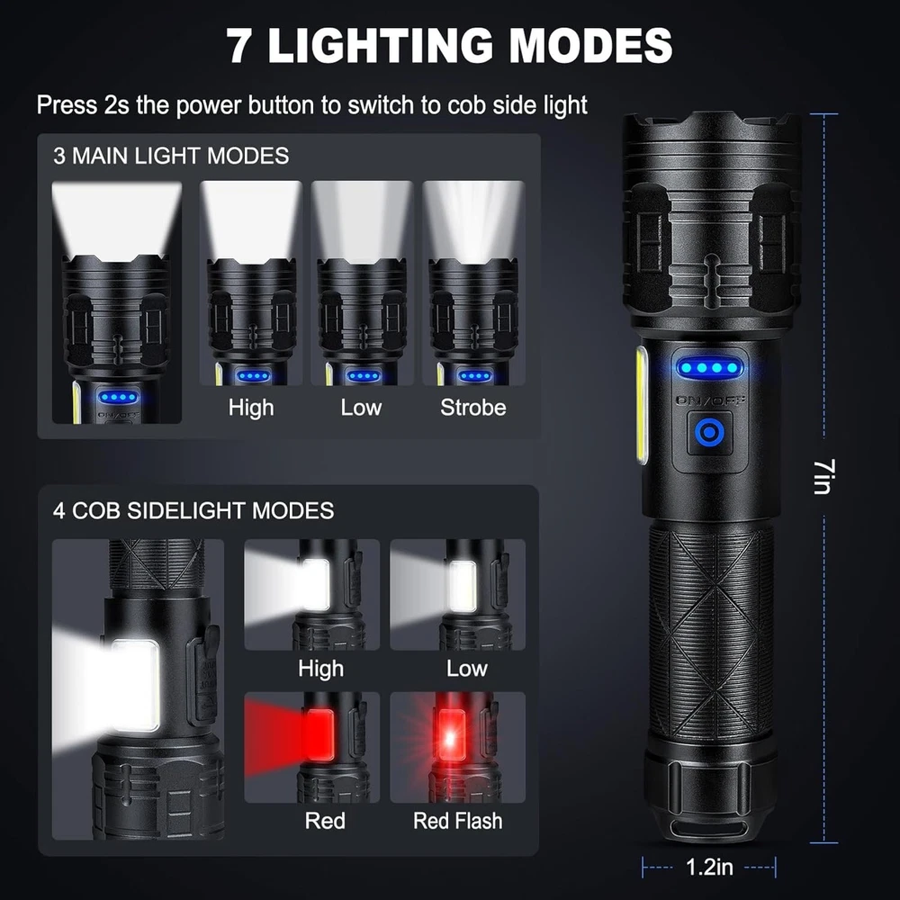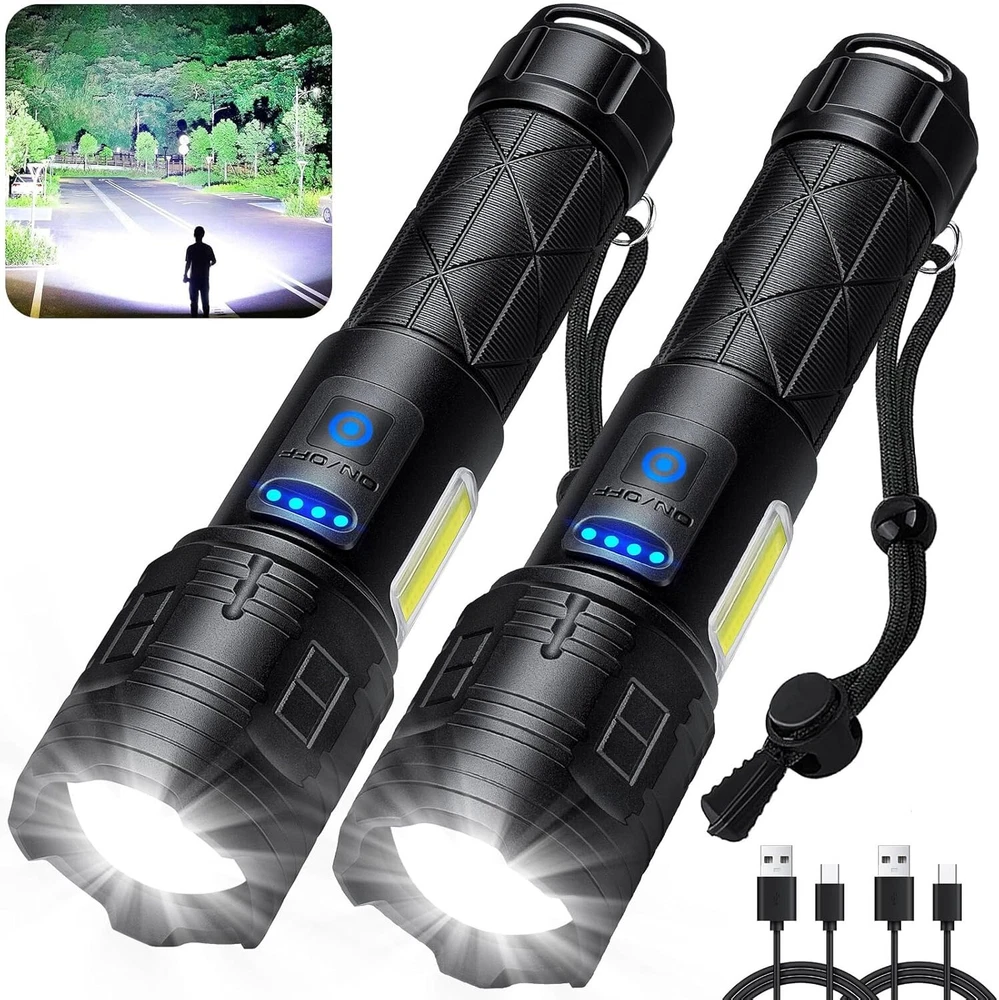 7 Mode Waterproof Flashlight Set - 900000 Lumens Ultra Bright, USB Rechargeable ‹ › ‹ › ‹ › ‹ › ‹ › ‹ › ‹ › ‹ › ‹ › ‹ › ‹ › 7 Mode Waterproof Flashlight Set - 900000 Lumens Ultra Bright, USB Rechargeable Features: Unmatched Brightness: Equipped with Germany-imported Top G2308 LED chips, delivering a staggering 900000 lumens at 8000K cool white. This flashlight is 550% brighter than standard car lights, illuminating up to 205 square meters with ease. Impressive Battery Life: Comes with a high-quality rechargeable battery providing up to 12 hours of powerful, non-diminishing brightness. The four-speed LED power indicator allows real-time monitoring of remaining power. Convenient USB Charging: Features a Type C port and includes a USB cable for versatile charging options with laptops, wall sockets, car chargers, and power banks. 7 Lighting Modes: Easily switch between 3 primary modes (High/Low/Strobe) and 4 COB modes (High/Low/Red/Red Flash) with a simple press of the button. Adjust head for wide and narrow beams effortlessly. Built to Last: Crafted from hard anodizing aircraft grade aluminum alloy with a rugged finish, designed to withstand pressure and tough environments. Water Resistant: IPX6 waterproof design allows adaptability in extreme weather conditions, perfect for camping, hiking, cycling, and emergency situations. Exceptional Value: Includes two flashlights, removable rechargeable batteries, charging cables, adjustable lanyards, and battery casings—all with a user manual. Why Choose Our Flashlight Set? Are you ready to light up your adventures with unparalleled clarity and reliability? The 7 Mode Waterproof Flashlight Set not only delivers an astounding luminosity but also offers prolonged usage for those late-night excursions or unexpected emergencies. The sturdy build ensures durability against the elements and rigorous handling, while the USB charging adaptability adds convenience to your lifestyle. Whether you’re camping under the stars, managing a power outage, or simply wishing to illuminate a pathway, trust this versatile powerhouse to light your way. Experience the perfect blend of innovation, quality, and value—order your 7 Mode Waterproof Flashlight Set today! Shipping Free & Fast Shipping - We offer free shipping to most of the USA with a normal delivery time of 3-7 days. However, due to the current situation, additional delivery time (up to 3 weeks) may be required for some items. Alternative Carriers - We may use alternative carriers (e.g. USPS, FedEx, UPS, etc.) to ensure your package arrives safely and on time. Due to the use of multiple carriers, we are unable to provide a tracking number automatically. Handling Time - Orders are processed and shipped within 1-2 business days of receiving cleared payment. Shipping Restrictions - Shipping to Alaska, Hawaii, Puerto Rico, Guam, and other US territories may incur shipping charges or delivery restrictions. Please contact us before ordering, or your order can be refunded/cancelled. State Restrictions - There may be restrictions based on your state of purchase. For example, certain items may not be shipped to California due to state regulations. Contact for Tracking Updates - If you require tracking updates or have any concerns about the delivery of your order, please feel free to contact us, and we will be happy to assist you. Return 30-Day Hassle-Free Returns - We want you to be completely satisfied with your purchase. If you are not, you can return the item within 30 days of receiving it for a full refund or exchange. Easy Return Process - To start a return, simply contact us and we will provide you with a prepaid return shipping label and detailed instructions. Restocking Fee - There are no restocking fees for returns. However, the buyer is responsible for return shipping costs if the return is not due to a seller's error. Refund Processing Time - Refunds will be processed within 5 business days of receiving the returned item in its original condition. Payment We accept all major credit cards, PayPal, and Apple Pay for your convenience. Your payment information is secure and encrypted to ensure a safe and seamless transaction. Please complete your payment within 3 days of purchase to avoid any delays in shipping. Feedback Your feedback is extremely important to us. We strive to provide the best products and customer service possible. If you are satisfied with your purchase, please take a moment to leave us a positive review. If you have any concerns or issues with your order, please contact us before leaving negative feedback. We are committed to resolving any problems and ensuring your satisfaction. Contact Us If you have any questions or concerns, please feel free to reach out to our customer support team. You can contact us through the eBay messaging system. We are available Monday to Friday, 9:00 am to 5:00 pm EST, and we will do our best to respond to your inquiry within 24 hours. Thank you for supporting our small family business! UPC: Not Set Voltage: Rechargeable LED Flashlights Item Height: Rechargeable LED Flashlights Item Length: Rechargeable LED Flashlights Item Weight: 1.41 lb Item Width: Not Set Model: Not Set Lumens: 900000 lm Number of LEDs: 1 Unit Quantity: 2 Features: Rechargeable,Waterproof,7 Modes,Adjustable,High Power,USB Charging,Heavy Duty Build,Non-slip Handle,Real-time Power Display Material: Aluminum Brand: Unbranded Type: Flashlight Lighting Technology: LED Power Source: Battery Operating Range: 205 m MPN: Not Set Battery Technology: NiMH Number of Batteries: 2 Color: Black Country/Region of Manufacture: Not Set IP Rating: IPX6 Operating Time: More Than 10 Hours Number of Lights: 1-3 Unit Type: lb Personalize: Not Set