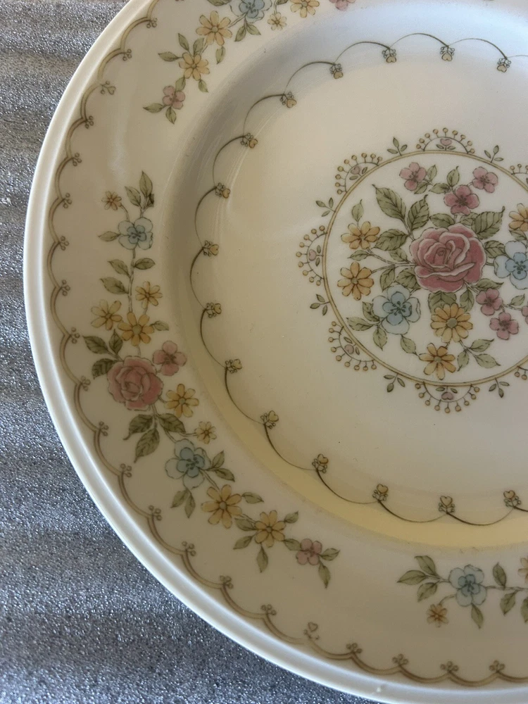 7 Noritake Verse Salad Plates Set Vintage Floral Pink Yellow Versatone Japan .8” Pre owned but in good condition