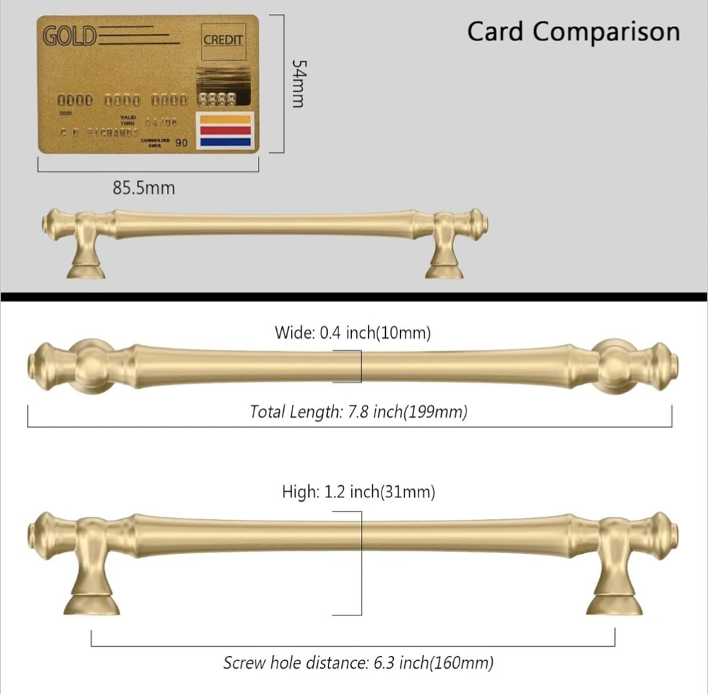 quality: made of solid Zinc alloy, strong, durable and easy to install. Also has good appearance and fine touch. Wide Application: The Kitchen cabinet pulls are widely compatible with different styles of cabinets, drawers, cupboards, dressers, wardrobes, wine cabinets, etc. any other room or furniture you can think of. You can have fun with DIY and make your furniture look new. Packaging: every cabinet pulls is individually packaged to avoid scratch during transportation. Measurement: Hole Centers(CC):6.3 inch(160MM); Overall Length:7.8inch(197MM);Width:0.35inch(9MM);Projection:1.25inch(32MM); Please check the Size of handles you require carefully before purchasing.