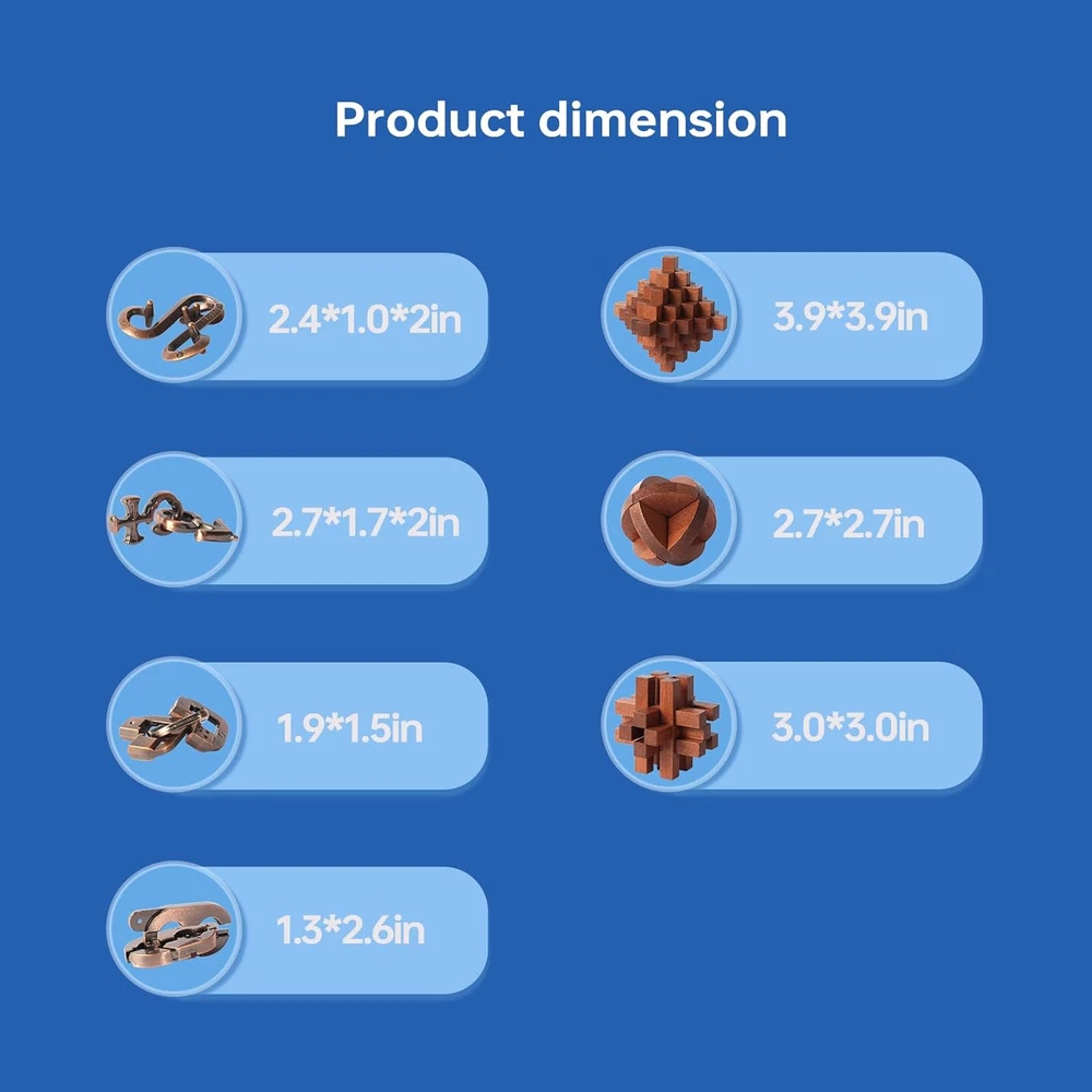 Store New Arrivals Add to Favorite View Feedback Contact 7 Pieces Unlock Interlock Brain Teaser Games Retro Wooden and Metal Puzzles IQ Logic Fun Puzzle Box Description Age Range Description AGE 8+ Number of Items 1 Manufacturer Minimum Age (MONTHS) 96 Educational Objective Creative Thinking Material Wood, Metal Puzzle Type Assembly and Disassembly Model Number LBM703R Theme GIFT, Holidays, Christmas, Train Special Features Portable Number of Pieces 7 Item Dimensions L x W 6.69"L x 6.49"W Included Components Bag Metal and Wooden Puzzle Toys Set: 3 sets Wooden and 4 sets Metal puzzles, the exciting brain teaser puzzles for adults, teen, and kids, puzzles provide for hours of entertainment, assembly puzzles and disentanglement puzzles, practice concentration. Environmental Safety Material: All the metal coils and wooden are smooth and have NO SHARP EDGES for endless play without getting hurt. Puzzles toy is with good weight and durable that doesn’t easily bend or break. Best IQ Puzzles Educational Toys: Engaging and fun for most ages. 3D puzzles set will challenge your intellect by stimulating amazing creativity. Your mind will be sharpened enough to develop their problem-solving capacity through reasoning, development of mental stamina, and boosting their self-confidence. Learning With Novelty Idea: This brain teaser toy games design is clever and unique, the use of assembly and disassembly to develop brain, it is simple in concept, introduce to your family, friends, office colleagues to join and enjoy the fun puzzles to bring the happy time, exercise dynamic brain skills at the same time, from a variety of perspectives to enrich the knowledge. Best Gift: This 3D metal and wood puzzle toys set will be a perfect gift for every occasion, for Christmas gift, birthday gift, Halloween gift, easter gift, office gift, class reward, and anniversary etc. 3D brain teaser can take anywhere. Product Description Brain Teaser Puzzles for Fun. Retro Style Metal Puzzles Classic Puzzles ABOUT US We offer the best prices around on high quality products. Our E-store includes media such as books, movies, music and games while offering electronics, toys, sporting apparel, clothing, tools, general home, garden items and more. SHIPPING We are always working hard to ensure your package arrives as soon as possible. Please understand that some factors like weather, high postal traffic, and the performance of shipping companies are outside of our control. We offer free shipping to the lower 48 states and ship within 2 business days of payment, usually sooner. We do not accept P.O. Boxes. Please provide a physical address. For shipping outside of the continental USA, we only use eBay's Global Shipping Program.The item is shipped to KY and then sent to the rest of the world. International customers are responsible for all duties and taxes. Continue to check out in order to calculate costs for shipping the item to your country. Messages regarding eBay's Global Shipping Program MUST be directed at eBay EXCLUSIVELY. RETURNS We offer a 30-Day Return Policy on items which you are not completely satisfied with. You have the option for a full-refund or an exchange of the item. No returns are available on items shipped outside of the USA. PAYMENT We accept PayPal. CONTACT US This page content is yet to come Please ad us to your favorite seller and visit again later Thank You CUSTOMER SATISFACTION We try our very best to make sure every customer is completely satisfied. If there's a problem, message us! We're happy to help. WE ACCEPT Copyright © 2021 AutoDS. | All Rights Reserved