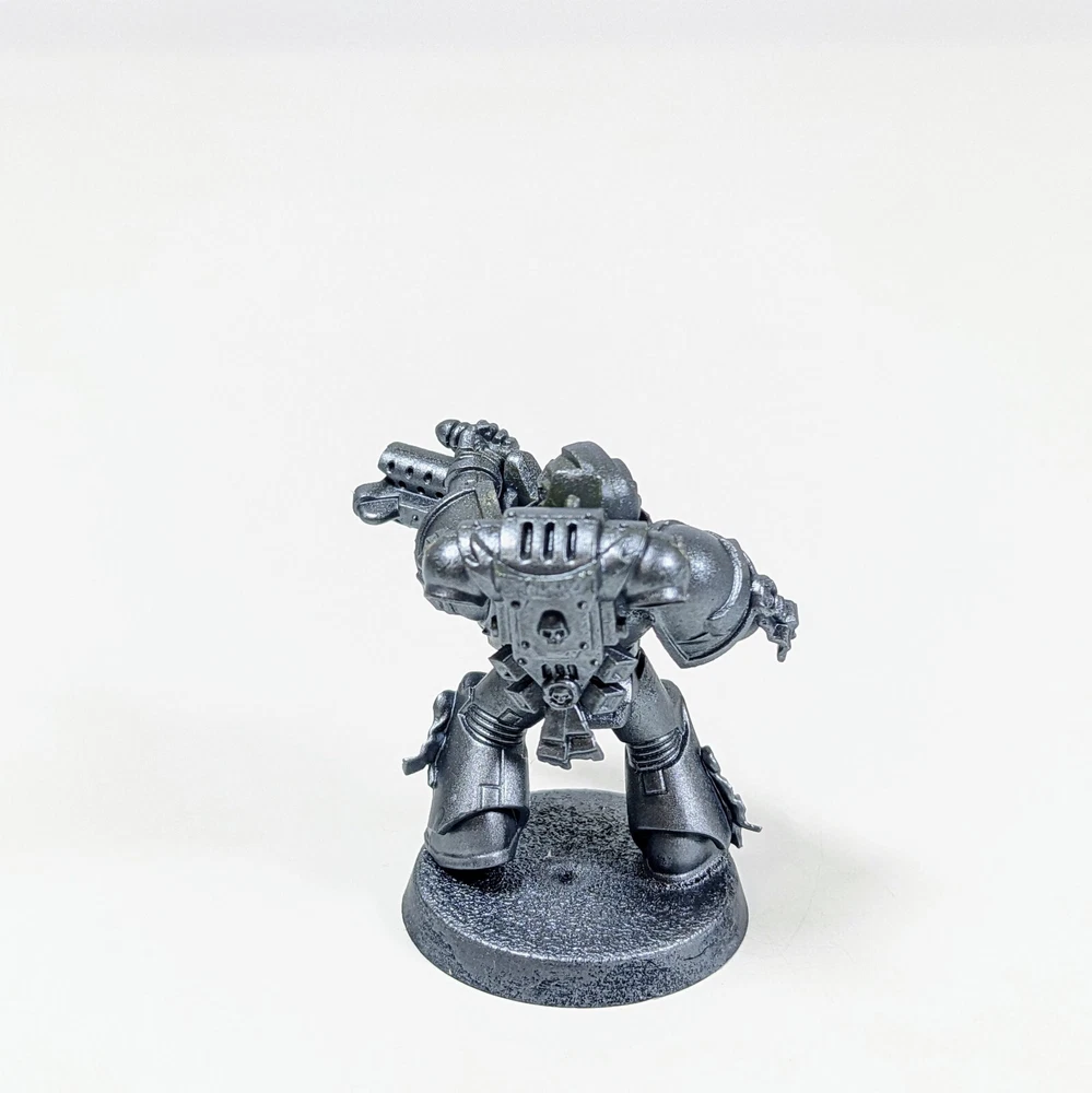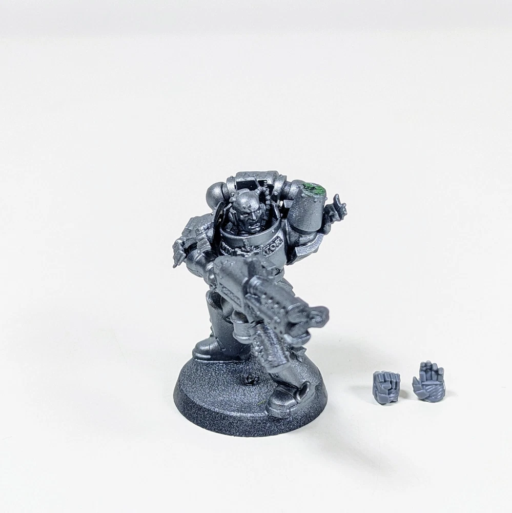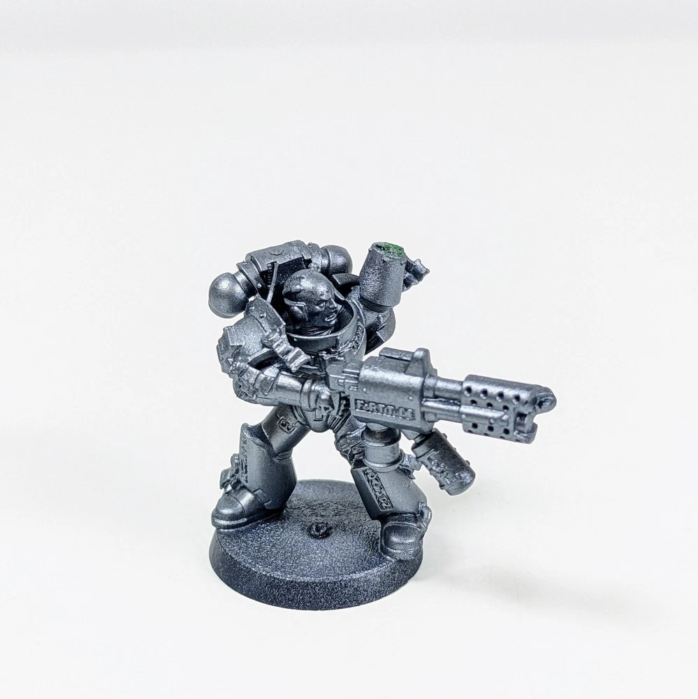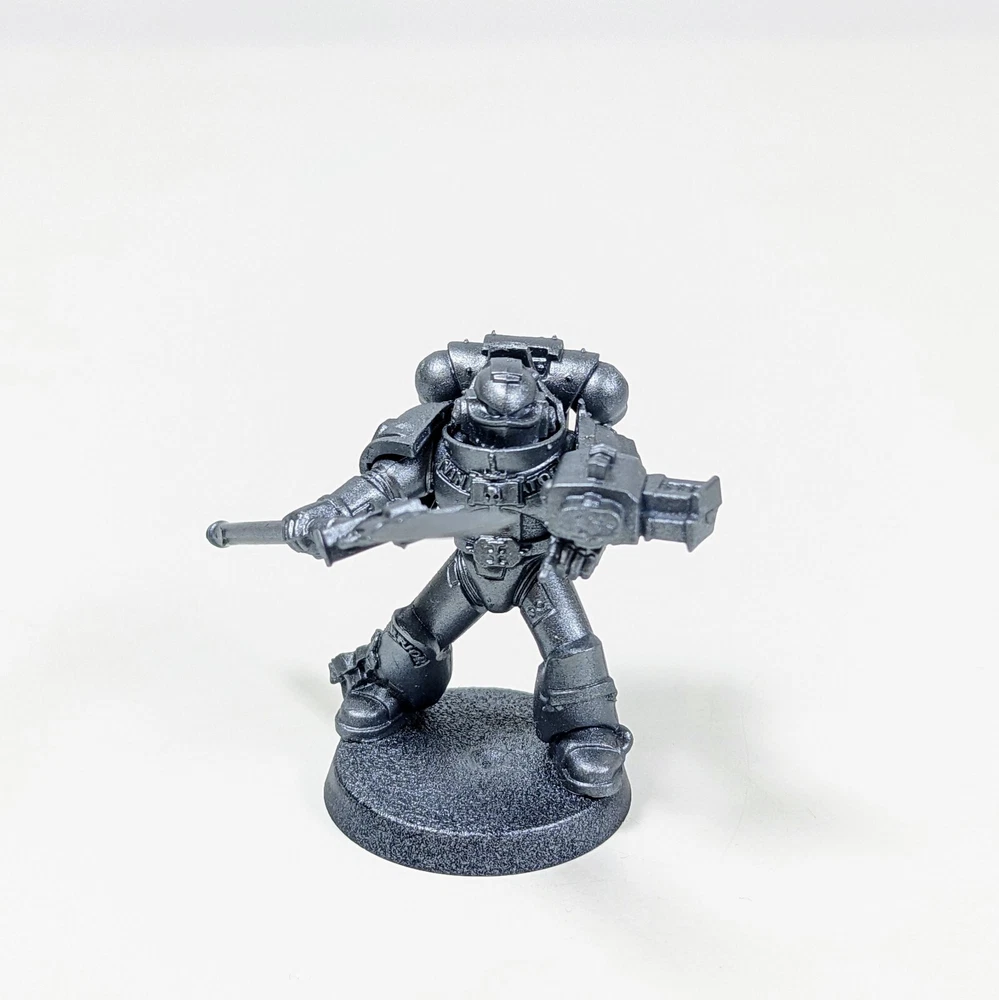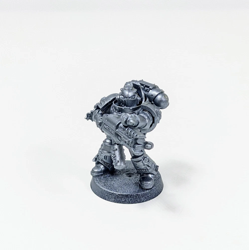 7 Space Marine Plastic Miniatures Warhammer 40K, 40000 These figures are metalic/grey in colour Please see pictures for actual condition