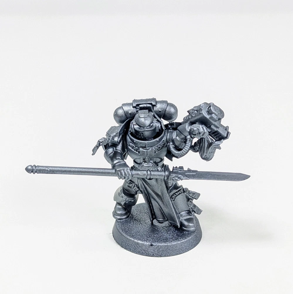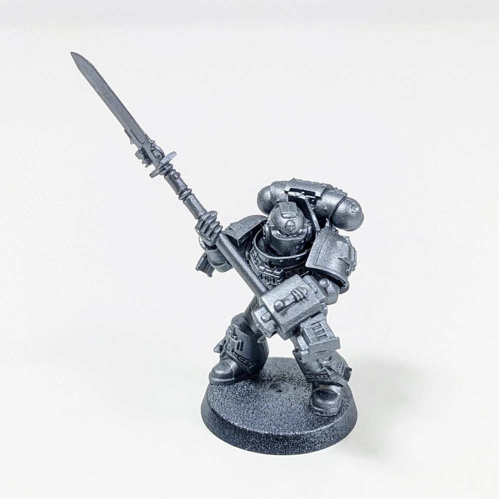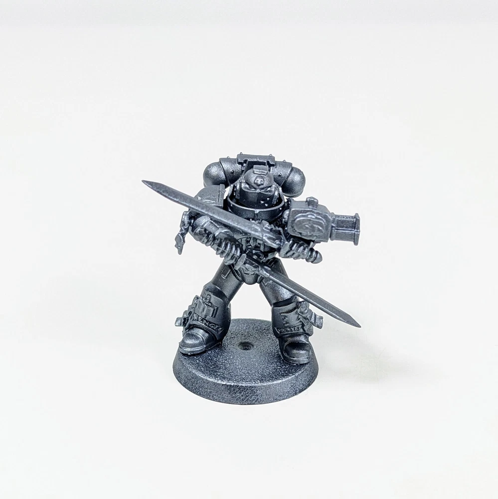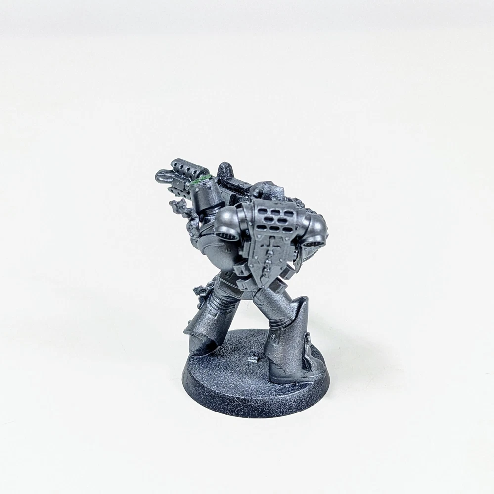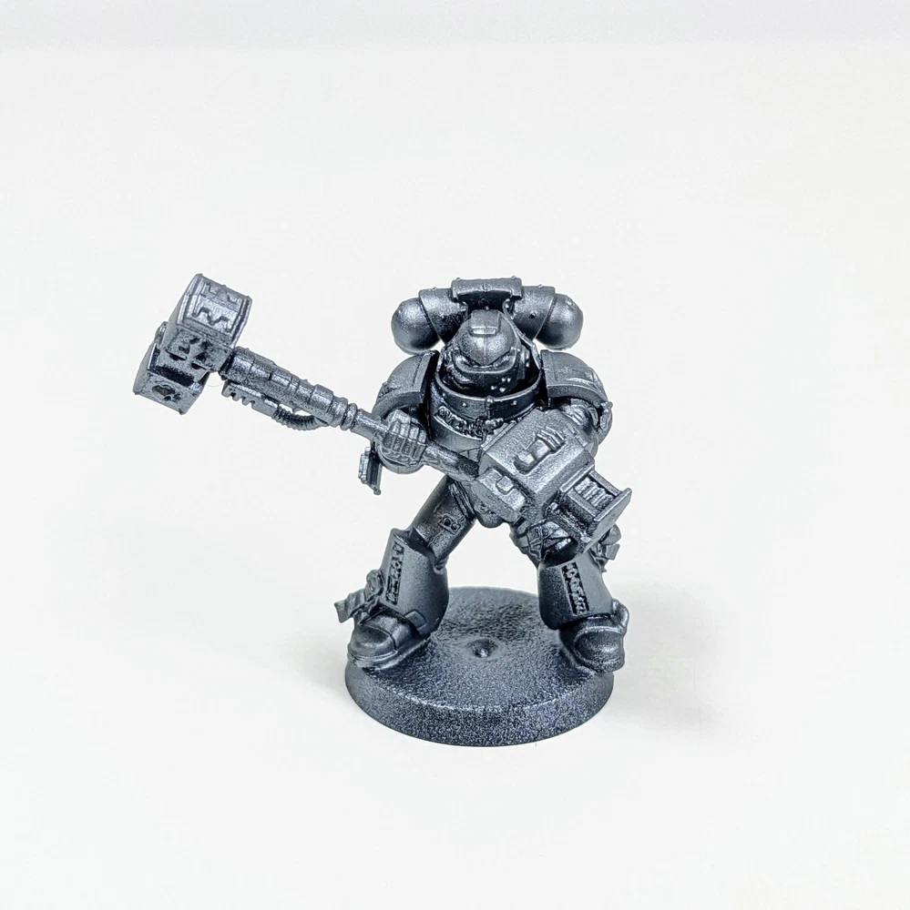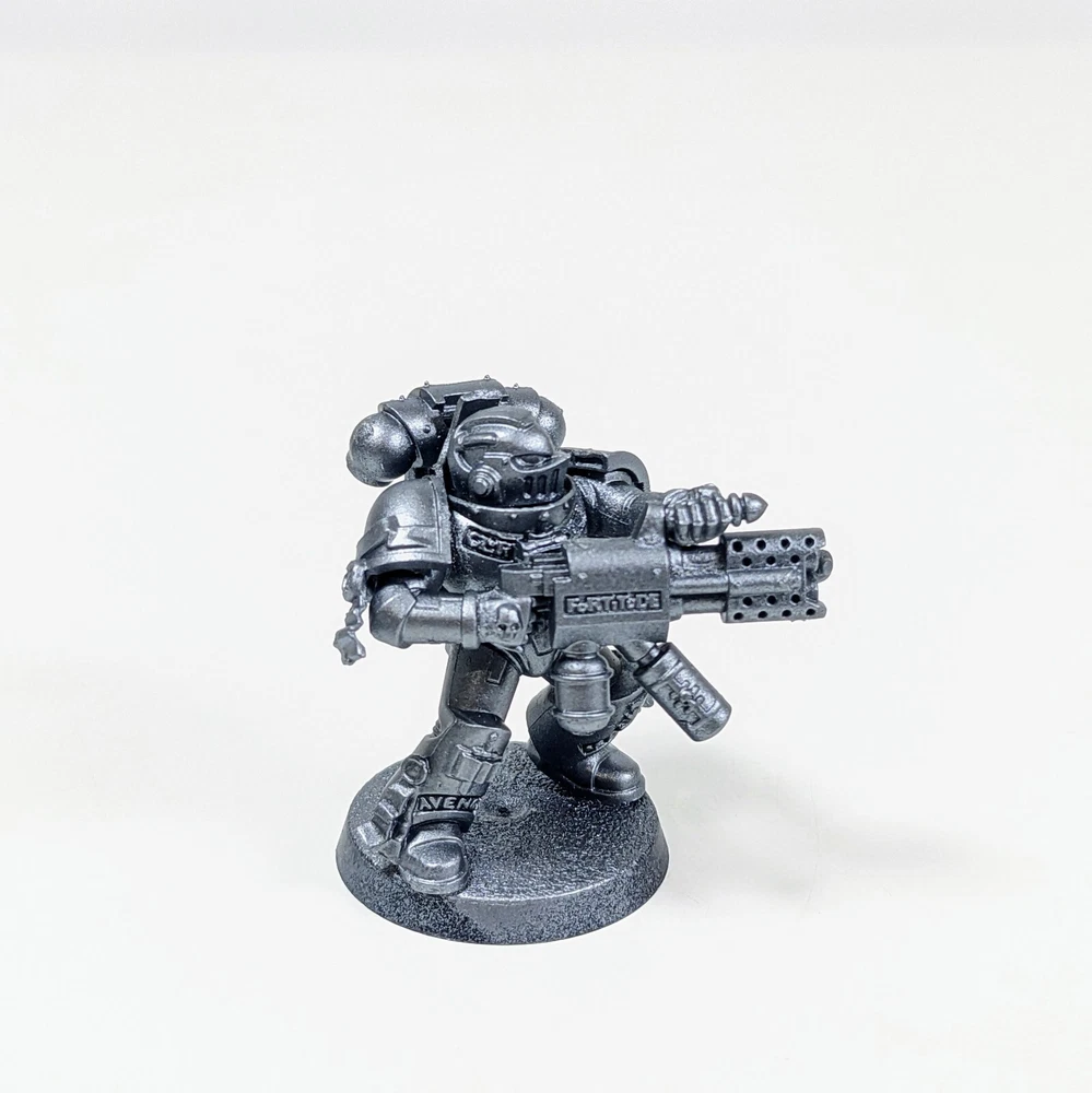 7 Space Marine Plastic Miniatures Warhammer 40K, 40000 These figures are metalic/grey in colour Please see pictures for actual condition
