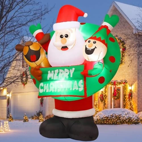 30 Days Return Policy Fast Delivery Trusted seller 7 FT Christmas Inflatables Santa Outdoor Decorations Blow Up Yard Reindeer and Elf with Built-in LEDs for Indoor Party Garden Lawn Decor Product Description 【 Christmas Decoration】Come and light up your holiday decorations with this fun inflatable Santa! The inflatable Santa Claus is flanked by reindeer and elves, holding a Merry Christmas sign, and wearing a wreath together to bring you Christmas wishes. Perfect for lighting up your winter nights, grab this eye-catching decoration to make your holiday happy and bright! 【Fast Inflation and Certified Safety】 - Our christmas decorations outdoor are equipped with a high-performance waterproof fan, which can inflate by itself quickly. Supported by a CE and UL Standard safety certified adapter, complemented by a 10-foot power cord. 【Waterproof and Sturdy】 - Crafted of high-quality waterproof polyester, our christmas inflatable blow up decoration is sturdy and for use. Rain or snow, inflatable christmas decorations are sturdy enough to last throughout the holiday season. 【Easy Use and Storage】 - Our package included everything needed for an easy setup and storage: sandbag,ground stakes,securing ropes,and a storage bag. After the holiday,just deflate,fold,and store for the next festive season using the provided storage bag. 【Customer Service】- Purchase with confidence! is a professional U.S. seller.We offer 24-hour service for you.If you have any questions,please message to us.Our American service team will be always ready to solve any problems for you Shipping Returns Payment Shipping Shipping is FREE to all addresses other than APO/PO boxes in the lower 48 states. All our stock ships from US-based warehouses. Shipped via USPS or UPS (depending on location and package weight) Unless stated otherwise, all orders will ship within 24-72 hours of your payment being processed. Check our feedback to see the great reviews of FAST shipping we offer. Returns As our valued customer, we will do our best to make sure the product you receive arrives to you on time and as expected. If you are not satisfied with your purchase, please contact us within 30 days of receiving your order to process a return. Payment We currently accept payment via eBay managed payments only. Once payment is cleared, we will dispatch your shipment within 1-3 business days. Please refer to the "Shipping" tab for more information regarding shipping speed to your destination.