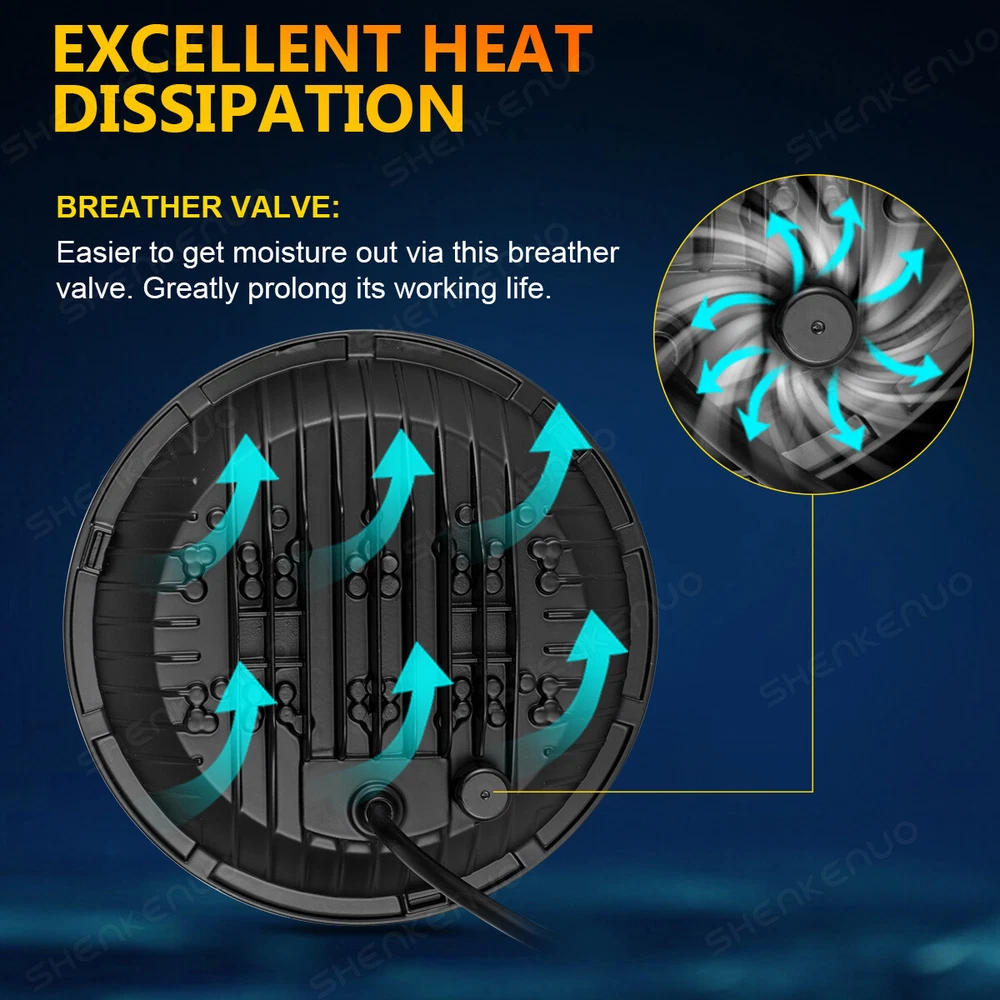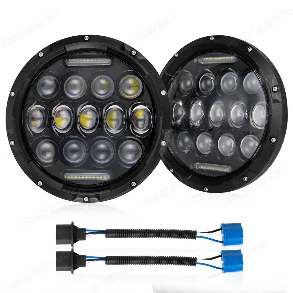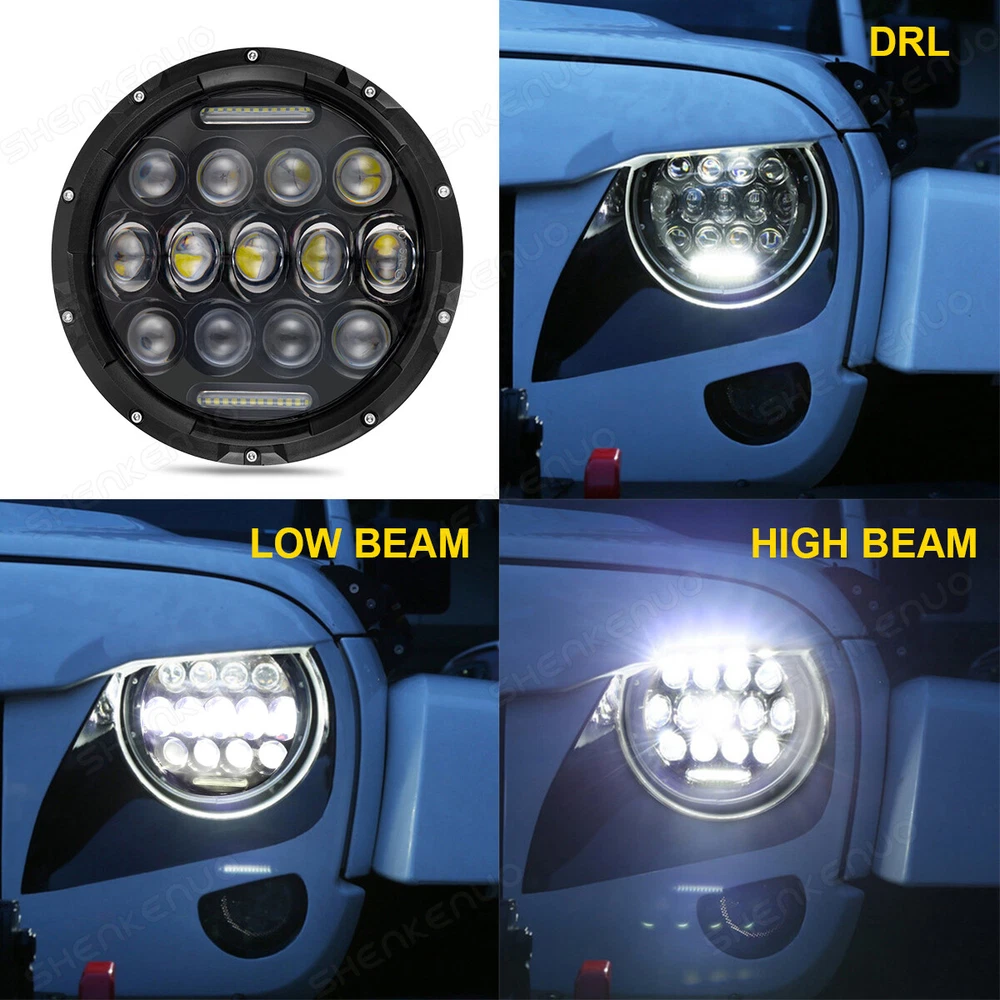 Item Description 。 Package included: 2PCS 7 inch Round LED Headlights 2PCS H4-H13 9008 Adapter Wires (Installation instruction is NOT included) Note: Without mounting bracket, some models may need mounting bracket! Specification: Power: 75W/Pcs 150W/Pair Dimension: 7" Inch Round Input: 12-24V DC Operating Voltage: 9-30V DC Material: Aluminum Lens Pattern:High & Low Beam & Day time running light Color Temperature: 6000K Cool White Housing Color: Black Waterproof:IP68 Connector: H4/H13 (Ground and High Beam) Function: High Beam,Low Beam, DRL (Day time running light) Features: 1.7 inch led headlights are made with real LED Chips, 100% brighter than other similar stock 7" headlight or halogen headlight 2. Waterproof IP67, DOT Approved, Built-in anti-flicker hardness, no need extra decoder anymore. Perfect sealed to prevent moisture and water build-up. 3. Quick and convenient installation, just plug and play. The headlight is durable, lifetime is over 50,000 hours. About the Adapter: Note:Package Do not Include the adapter. They might be slight flickering cuz the voltage instability characteristics of For JEEP WRANGLER rather than headlights themselves. You couldn't notice the original halogen headlight flickers because of luminance not strong enough. Be aware of that,Plug the headlight first, if the headlights are not flickering, just keep the adapter away. (Including but not limit the following applications) Application: For Alfa Romeo Spider (1988-1994) For AM General Hummer (1992-2001) For American Motors AMX (1968-1978) For American Motors Gremlin (1970-1978) For American Motors Hornet (1970-1977) For American Motors Javelin (1968-1974) For American Motors Matador (1974-1978) For American Motors Pacer (1975-1980) For Bertone X 1/9 (1984-1989) For Chevy Blazer (1969-1974) For Chevy C10 (1975-1980) For Chevy C10 Pickup (1969-1974) For Chevy C10 Suburban (1969-1980) For Chevy C20 (1975-1980) For Chevy C20 Pickup (1969-1974) For Chevy C20 Suburban (1969-1980) For Chevy C30 (1975-1980) For Chevy C30 Pickup (1969-1974) For Chevy Camaro (1967-1981) For Chevy Chevelle (1971-1973) For Chevy Chevette (1976-1978) For Chevy El Camino (1971-1975) For Chevy G10 G20 G30 (1975-1987) For Chevy K10 K20 K30 K5 Blazer (1969-1980) For Chevy Laguna (1973-1975) For Chevy Lux (1980-1982) For Chevy Malibu (1973-1975) For Chevy Monte Carlo (1970-1975) For Chevy Monza (1975-1980) For Chevy Nova (1963-1978) For Chevy Pickup Truck (1967-1973) For Chevy Truck (1947-1957 and 1962-1972) For Chrysler (1949-1955) For Datsun 240Z 260Z 280Z 280ZX (1970-1978) For DeSoto (1949-1955) For Dodge (1949-1955) For Dodge B100 (1975-1978) For Dodge B100 Van (1971-1974) For Dodge B150 (1984-1987) For Dodge B200 (1975-1978) For Dodge B200 Van (1971-1974) For Dodge B250 (1984-1987) For Dodge B300 (1975-1978) For Dodge B300 Van (1971-1974) For Dodge B350 (1984-1987) For Ford Bronco (1966-1977) For Ford Custom 500 (1971/1976) For Ford E-100 Econoline (1969-1978) For Ford E-100 Econoline Club Wagon (1975-1978) For Ford E-150 Econoline (1969-1978) For Ford E-150 Econoline Club Wagon (1975-1978) For Ford F-100 (1975-1979) For Ford F-100 Pikcup (1969-1974) For Ford F-150 (1975-1979) For Ford F-250 (1975-1979) For Ford F-250 Pickup (1969-1974) For Ford F-350 (1975-1979) For Ford F-350 Pickup (1969-1974) For Ford Falcon Sedan Delivery (1961-1965) For Ford Mustang (1965-1973) For Freightliner Century Class (1996-2011) For Freightliner Coronado (2001-2016) For Honda Civic (1976-1981) For Hummer AM General 1992-2001 For Hummer H1 2002-2006 For Hummer H2 2003-2009 (H2 needs 9007 male to H4 female adapter, package not included) For International Harvester 4200 4300 4400 For Jeep Cj-5 1955-1983 For Jeep CJ-7 (1976-1986) For Jeep CJ-8 Scrambler (1981-1985) For Jeep Wrangler JK 2 Door (2007-2018) For Jeep Wrangler JK 4 Door Unlimited (2007-2018) For Jeep Wrangler LJ Unlimited (2004-2006) For Jeep Wrangler TJ (1997-2006) For Jeep Wrangler TJ Unlimited / LJ (2003-2006) For Kenworth T2000 (1998-2010) (Buyer Note, Our Headlight plug is H4,H4-H13) For Land Rover 90/110 1983 to 1991 (including 2.5N/A, 2.5 Turbo, V8) For Land Rover 90/110 Defender 200 Tdi For Land Rover 90/110 Defender 300 Tdi For Land Rover 90/110 Defender Td5 For Land Rover 90/110 Tdi For Land Rover Defender 90 & 110 For Land Rover Defender 90 1995 For Land Rover Defender 90 1997 For Land Rover Range Rover County Classic SportUtility 4-Door 1995 For Mack DM RM RW RS RL CF For Mazda 808 1976-1977 For Mazda Miata (1990-1997) For Mazda Miata MX5 MX-5 (1990-1997) For Mazda Mizer 1976-1977 For Mazda RX-7 1979-1985 For MG Midget (1969-1979) For Oldsmobile Omega (1974-1979) For Peterbilt 359 (1981-1987) For Peterbilt 379 (1988-2009) For Plymouth (1949-1955) For Plymouth Barracuda (1964-1974) For Plymouth Valiant (1963-1976) For Porsche 944 (1983-1991) For Toyota Corolla (1969-1980) For Toyota LandCruiser (1979-1987) For Toyota Pickup (1979-1981) Motorcycle Fitment: (Fits following motorcycle:) For Any Motorcycle models with 7 inch Round headlight,such as(Not limited): For Dyna SwitchbackFLD: 2014, 2016 For Softail Convertible CVO FLSTSE : 2010-2012 For Softail Cros Bones FLSTSB: 2008-2011 For Softail Deluxe CVO FLSTNSE: 2014-2015 For Softail Deluxe EFI FLSTNI FLSTN: 2005-2017 For Softail FatBoy : 2001-2017 For Softail Heritage Classic Springer Classic EFI FLSTI FLSTC FLSTS: 1991-2017 For Softail Nostalgia FLSTN : 1993-1996 For SoftailSlim FLS S FLSS: 2012-2017 For Touring Electra GlideClassic CVO FLHTCSE EFI FLHTCUIPolice FLHTP: 1994-2017 For Touring Road King Classic EFI FLHRCI Police CA FLHR: 1994-2017 For Touring Street Glide CVO FLHXSE EFI FLHXI FLHX: 2006-2017 For Touring Street Glide Special FLHXS: 2014-2017 For Touring Ultra Limited: 2010-2017 For Trike FreewheelerFLRT : 2015-2017 For Trike Street Glide FLHXXX: 2010-2011 For Trike TriGlide Ultra Classic FLHTCUTG : 2009-2017 For Yamaha Models For Yamaha Road Star 1600 1999-2003 For Yamaha Road Star 1600 Midnight 2000-2003 For Yamaha Road 