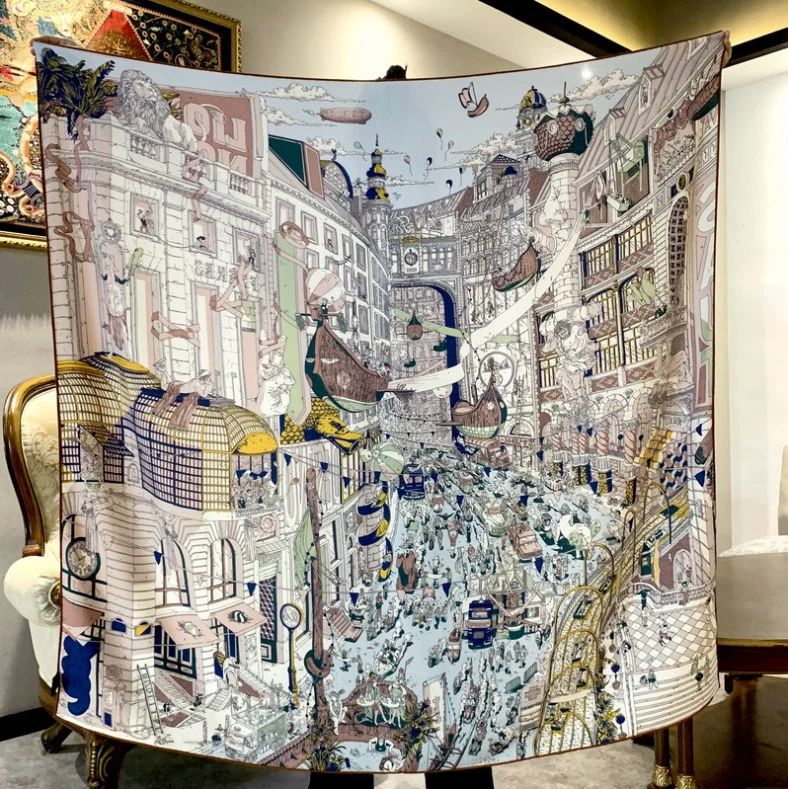 $ 8.07100% Mulberry Silk 110cm Square Scarf - Blooming Lily Print Versatile Fashion Accessory