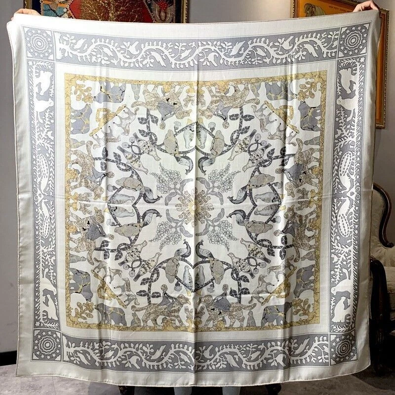 $ 5.2870% Cashmere & 30% Silk Wrap Scarf Peacock Print Double Face Square Shawl 53"