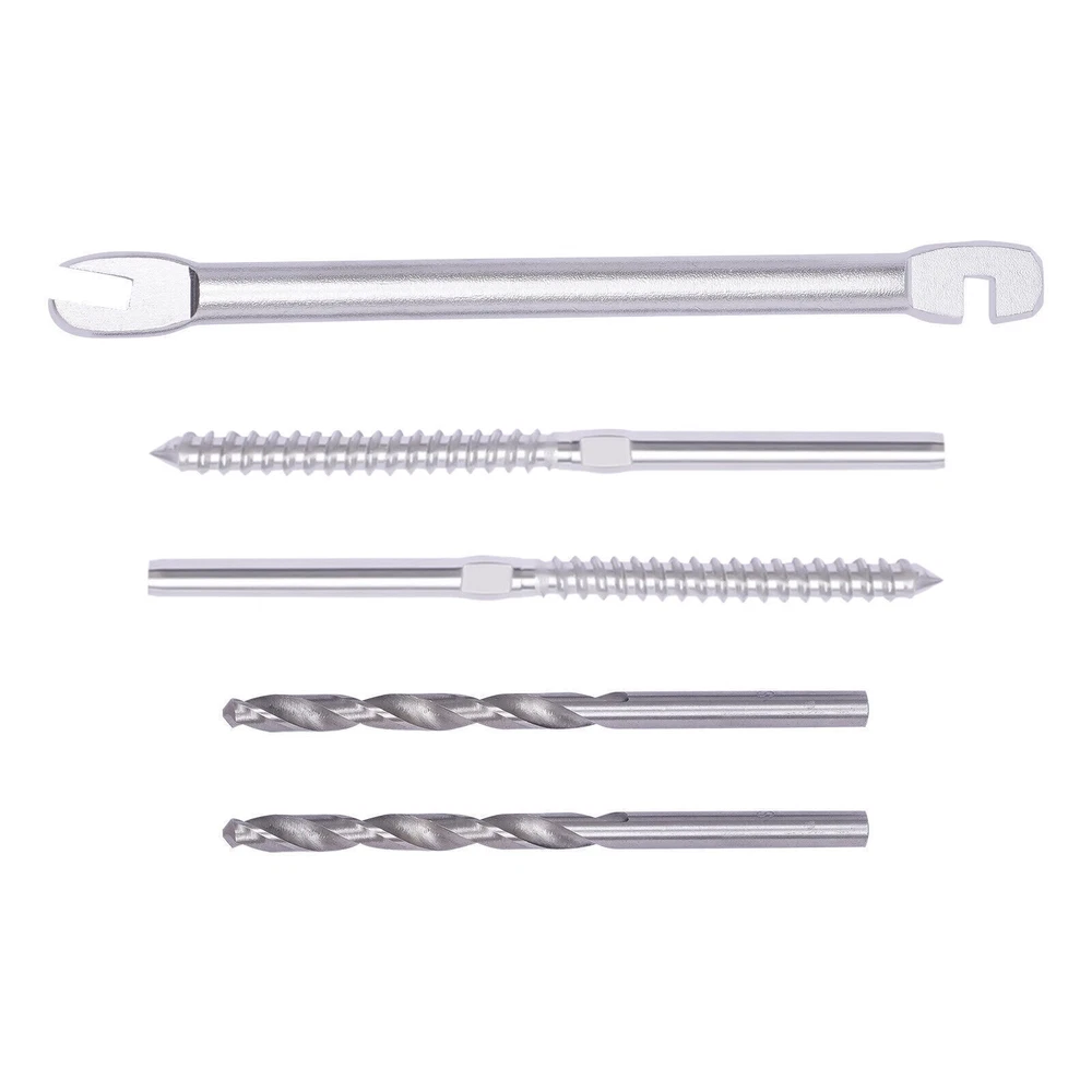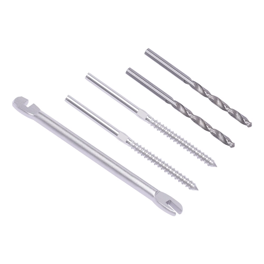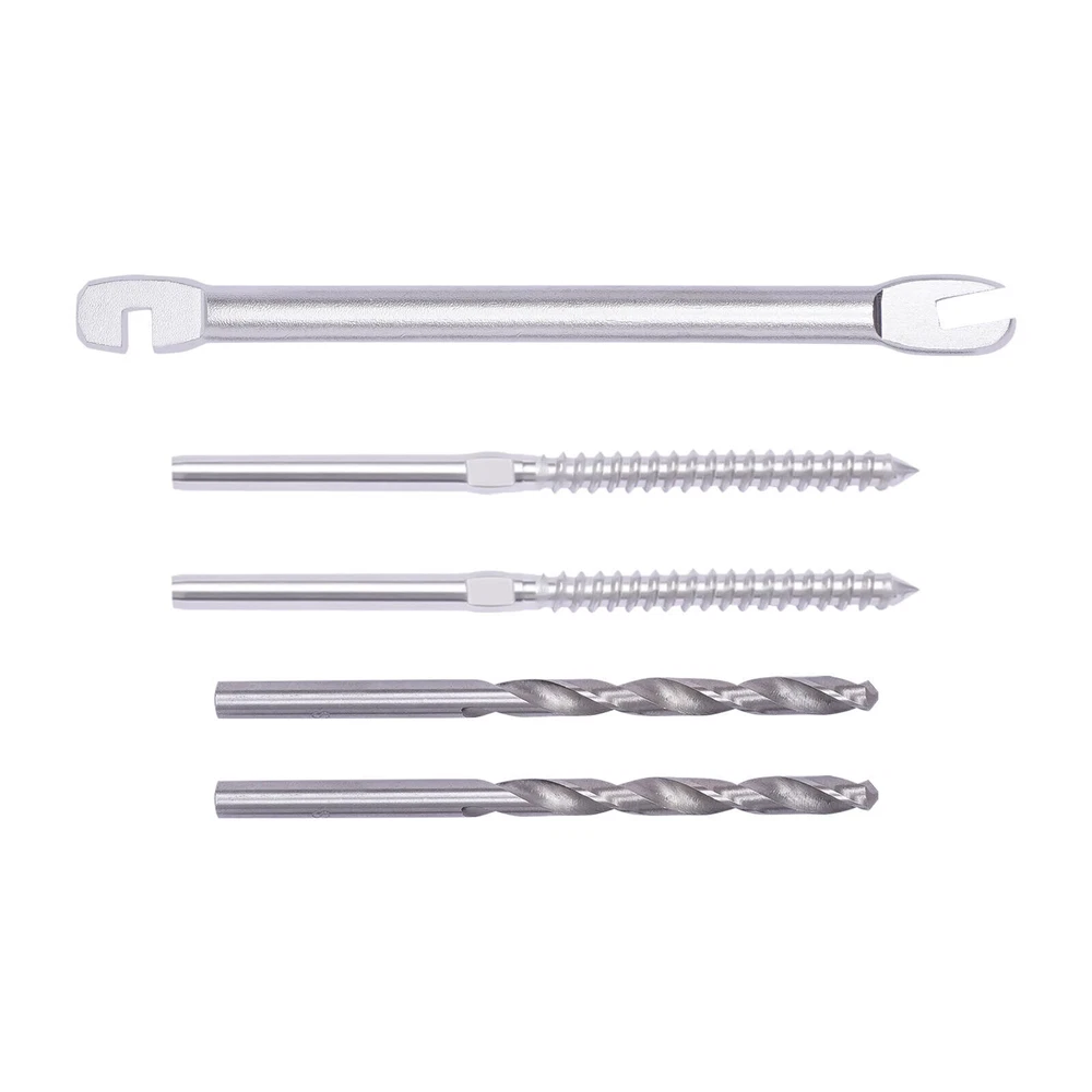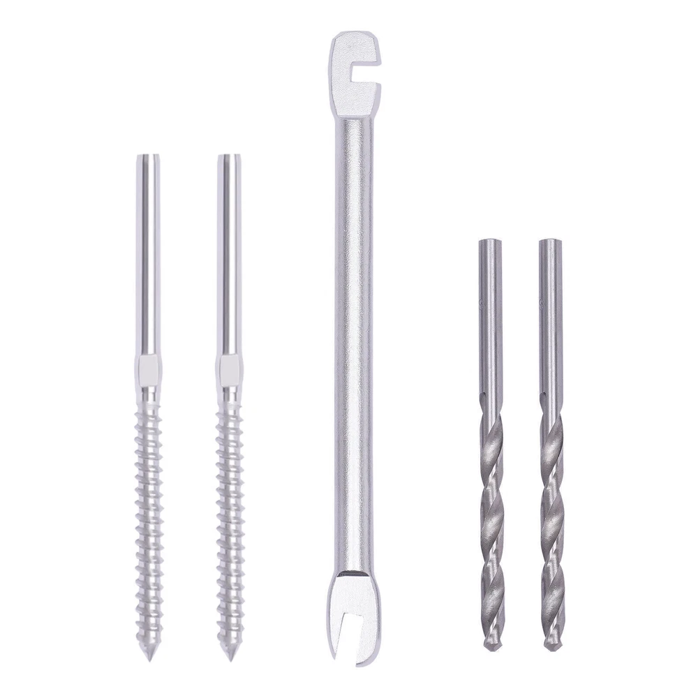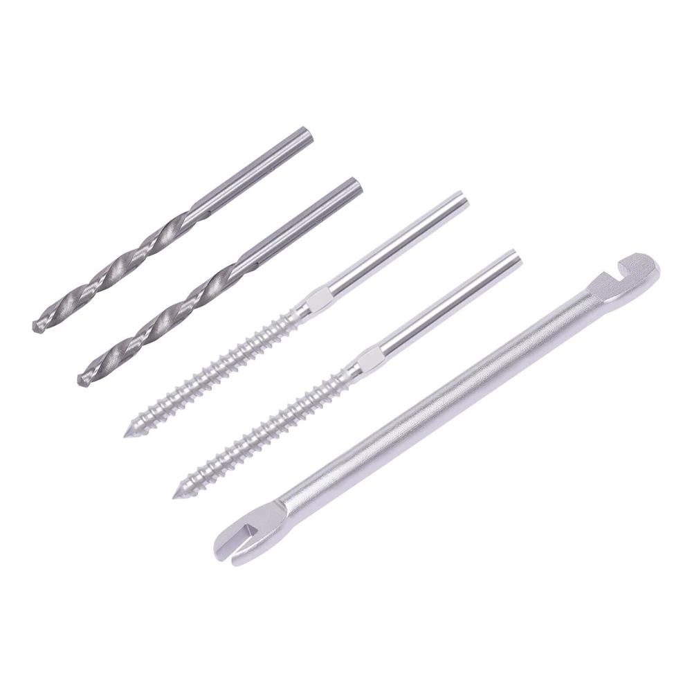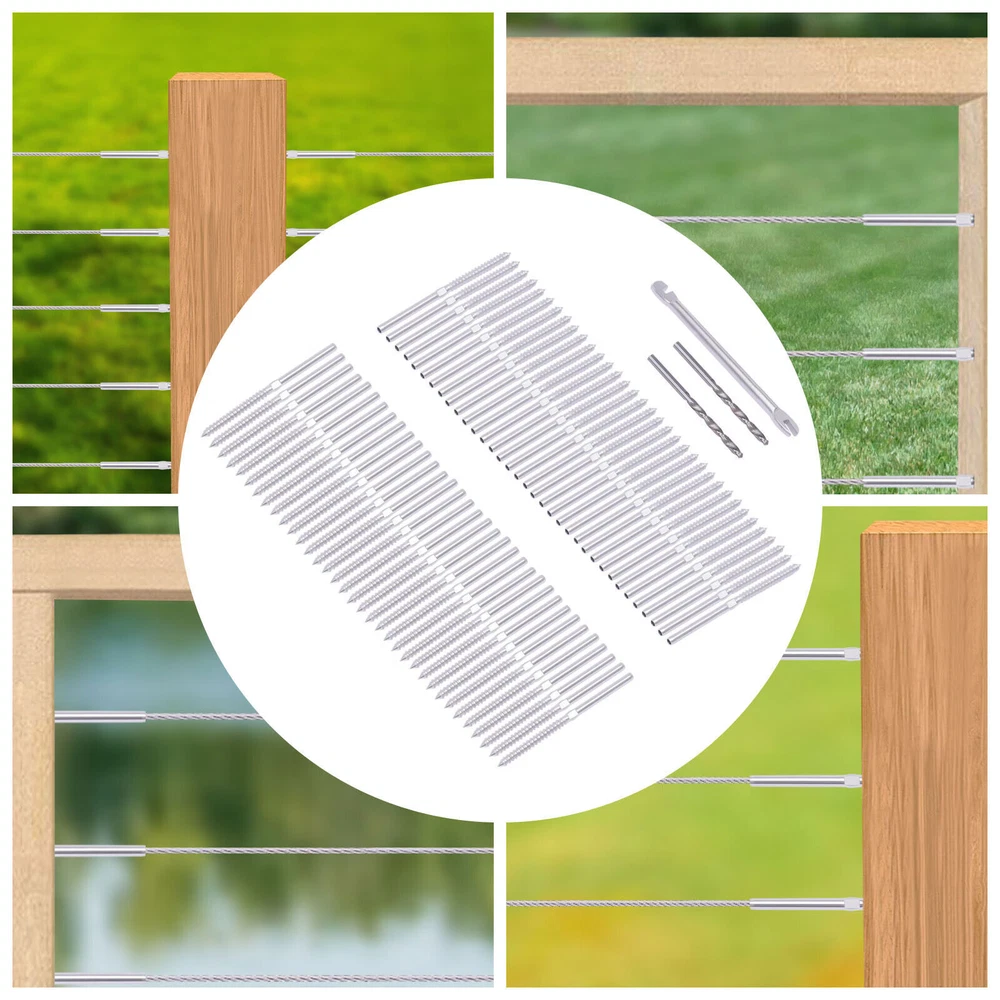 Description If you want to make a DIY railing, then this deck railing kit is your ideal choice. Made of high-quality T316 stainless steel, it is strong and durable. 100pcs thread screws can meet your daily needs. The wench and two drill bits in the package allow for easy installation. Key Features Premium Material: This deck railing kit is made of marine-grade T316 stainless steel with good welding performance, which can resist wear, corrosion, rust, high&low temperature, making it suitable for indoor or outdoor usage. Left and Right Design: The left and right thread screws allow you to rotate the wire rope in the same direction without extra turnbuckle or tension, which can lock the wire rope to solve the problem of twisting and make the installation easier and more secure. Stylish E 70/100pcs Left & Right Handed Thread Swage Lag Screws for 1/8" Deck Cable Rail Description If You Want to Make a Diy Railing, Then This Deck Railing Kit Is Your Ideal Choice. Made of High-quality T316 Stainless Steel, It Is Strong and Durable. 100pcs Thread Screws Can Meet Your Daily Needs. the Wench and Two Drill Bits in the Package Allow for Easy Installation. Key Featu res Premium Material: This Deck Railing Kit Is Made of Marine-grade T316 Stainless Steel with Good Welding Performance, Which Can Resist Wear, Corrosion, Rust, High&Low Temperature , Making It Suitable for Indoor or Outdoor Usage. Left and Right Design: the Left and Right Thread Screws Allow You to Rotate the Wire Rope in the Same Direction Without Extra Turnbuckle or Tension, Which Can Lock the Wire Rope to Solve the Problem of Twisting and Make the Installation Easier and More Secure. Stylish Exterior: the Silver Product Is Fashionable and Attractive, Which Is the Ideal Choice for Minimalist Style. High Compatibility: the Deck Railing Kit Is Customized for 1/8'' Steel Rope and Can Be Easily Connected. Invisible Kit: Due to Its Small Size and Simple Appearance, It Is Almost Invisible After Installation, and Will Not Affect the Beauty of the Railing. Diy at Will: You Can Use This Kit to Make Diy Railing, Bringing You Much Happiness. Complete Kit: the Package Includes 50 Left-handed Thread Screws, 50 Right-handed Thread Screws, 2 Drill Bits, and a Wrench, Which Can Meet the Needs of Wire Rope Locking While Allowing for Easy Installation. Guaranteed Customer Service: We Aim to Provide Quality Products and Services. If You Have Problems, Please Feel Free to Contact Us. We Will Reply and Solve the Problem for You As Soon As Possible. Details Drill Bit: It Can Be Fixed on the Wooden Column to Adjust the Tightness. Thread: the Deep and Clear Threads Can Effectively Prevent the Wire Rope from Falling off. Application It Is Suitable for Locking 1/8'' Steel Rope and Can Be Used for Diy Stair Railing, Porch Railing, Balcony Railing, and Deck Railing. Specification Color: Silver Material: Marine-grade T316 Stainless Steel Number of Thread Screws: 70pcs / 100pcs Net Weight: 1.2kg/2.6lbs Gross Weight: 1.4kg/3lbs Package Size: 15*10*8cm/5.9*3.9*3.1inch Total Screw Length: 10.2cm/4inch Thread Length: 5.2cm/2inch Drill Bit Length: 8.5cm/3.3ich Wrench Length: 13cm/5.1inch Installation Drill Half Threads of the Left & Right Screws into the Pilot Holes in the Posts Which Have Been Drilled; Then Swage the Cable to the Screws. Leave Half Threads Outside of the Post. Turn the Left Thread Screws into the Left Post with a Wrench. Turn the Right Screws into the Right Post in the Same Direction at the Pretty Same Time to Avoid the Cable Being Twisted. The Installation Is Complete. 70pcs Handed Thread Screws Package Included 35* Left Handed Thread Screws 35* Right Handed Thread Screws 2* Drill Bits 1* Wrench 100pcs Handed Thread Screws P ackage Included 50* Left Handed Thread Screws 50* Right Handed Thread Screws 2* Drill Bits 1* Wrench Notes Please Allow the Slight Color Difference Caused by the Shooting Light and 1-3cm Error Due to Manual Measurement, and Make Sure You Do Not Mind Before Ordering. Payment Delivery details Terms of sales About us Contact us Payment We accept ebay payment 。 Fees such as import duties, taxes are not included in the item price or shipping costs. These charges are the buyer's responsibility. Delivery details Shipping: 2-9 working days to: USA Terms of sales We maintain high standards of excellence and strive for hundred percent customer satisfaction. Feedback is very important to us. We hope that you contact us immediately before you give neutral or negative feedback, so that we can address your concerns. It is impossible to address issues if we do not know about them! About us Your satis faction is our ultimate goal. We work hard to earn your trust and future business. Our certified technicians have tested each item before shipping. The unit comes with 1 year limited warranty on all manufacturing defects. a) If you receive a defective item, you may return it or ask for a discount. Please contact us within 14 days after you receive the package. b) What you returned must be intact and in its original packaging as re? u. Customer is responsible for shipping costs of the returned item. c) We will cover the cost of shipping back t with the shipping rate indicated in the registration page. We will send you a new unit or refund the full payment you paid. Thank you. Contact us Business Hour Business Hour: Monday To Friday: 8:30 AM to 5:00 PM (Beijing China time) Due to time zones, our reply to your questions may not be immediately. But within above working time, we will reply your email within 24 hours. If it's non-workdays, please kindly be patient and wait till Monday. Please contact us with ebay message. Please feel free to contact us if you have any questions. Monday To Friday: 8:30 AM to 5:00 PM (Beijing China time) Due to time zones, our reply to your questions may not be immediately. But within above working time, we will reply your email within 24 hours. If it's non-workdays, please kindly be patient and wait till Monday. Please con