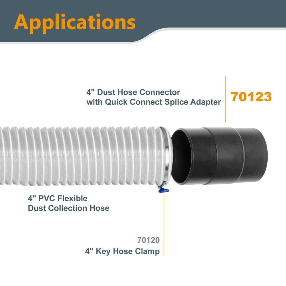 70123V 4-Inch Dust Hose Connector w/Quick Connect Splice Adapter, ABS Plastic