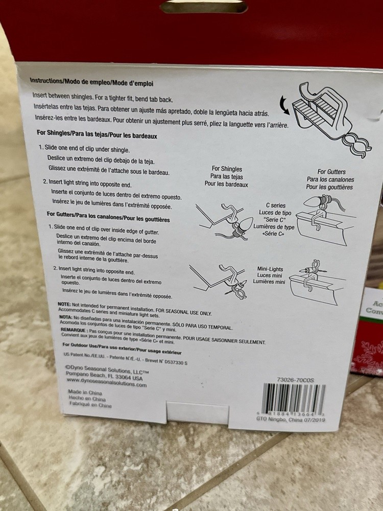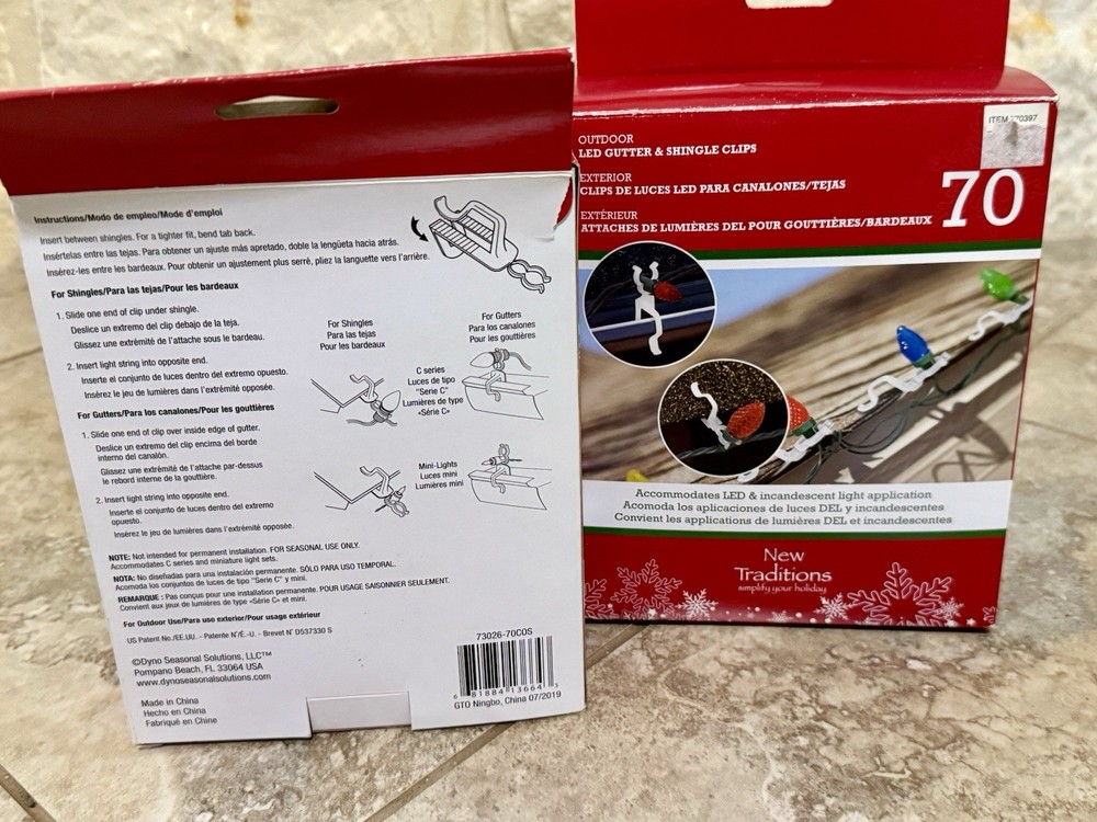Light Clips/ Holders For Outdoor Use 70 ct New NIB Christmas Roof Clips 2 Packs. 72 in one box, 71 in the other. Christmas lights, holiday decor, lighting, roof clips, roof lights, gutter hooks, outdoor lights, holiday lighting, shingle clips, string lights, light clip holders.