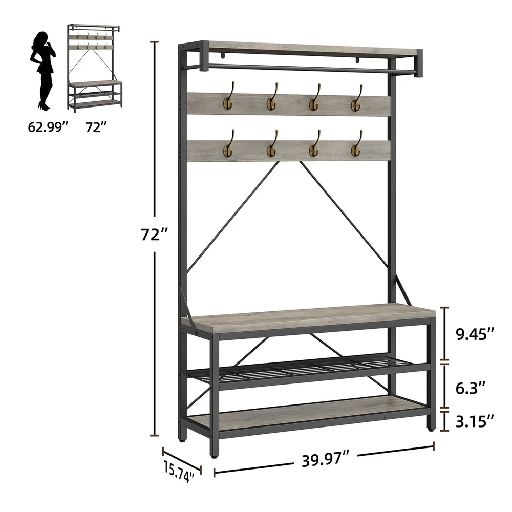 🎱72" Hall Tree Shoe Rack for Entryway Storage Industrial Coat Rack Shoe Bench