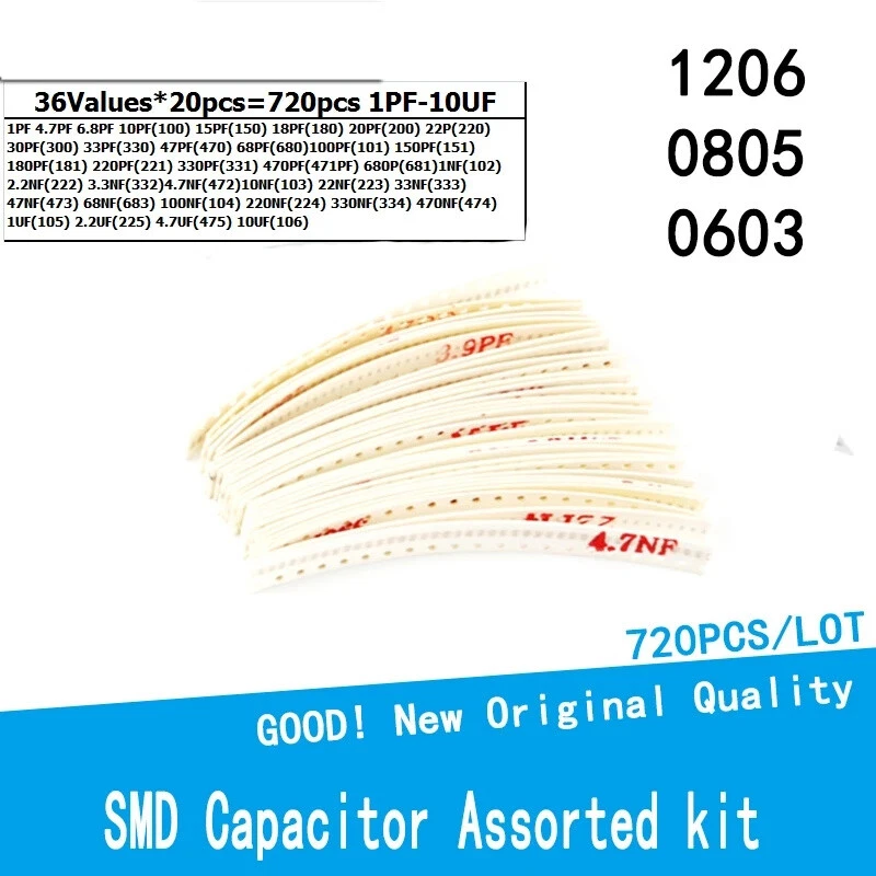 Product Description If you have any questions, please contact customer service first, do not open disputes easily, thank you! Specification : 20PCS*1PF 20PCS*4.7PF 20PCS*6.8PF 20PCS*10PF(100) 20PCS*15PF(150) 20PCS*18PF(180) 20PCS*20PF(200) 20PCS*22PF(220) 20PCS*30PF(300) 20PCS*33PF(330) 20PCS*47PF(470) 20PCS*68PF(680) 20PCS*100PF(101) 20PCS*150PF(151) 20PCS*180PF(181) 20PCS*220PF(221) 20PCS*330PF(331) 20PCS*470PF(471) 20PCS*680PF(681) 20PCS*1NF(102) 20PCS*2.2NF(222) 20PCS*3.3NF(332) 20PCS*4.7NF(472) 20PCS*10NF(103) 20PCS*22NF(223) 20PCS*33NF(333) 20PCS*47NF(473) 20PCS*68NF(683) 20PCS*100NF(104) 20PCS*220NF(224) 20PCS*330NF(334) 20PCS*22NF(470) 20PCS*1UF(105) 20PCS*2.2UF(225) 20PCS*4.7UF(475) 20PCS*10UF(106) Package Includes : 1 Set*720PCS 0603 0805 1206 Chip Capacitor Pack(Optional) Note : Only include the above package products Specifications are manually tested and are for reference only Please allow 0-1cm error due to manual measurement Please make sure you don't mind before bidding Due to the difference between different monitors Pictures may not reflect the actual color of the item.Thank About Us We accept all payments authorized by eBay. About Us We accept all payments authorized by eBay. powered by