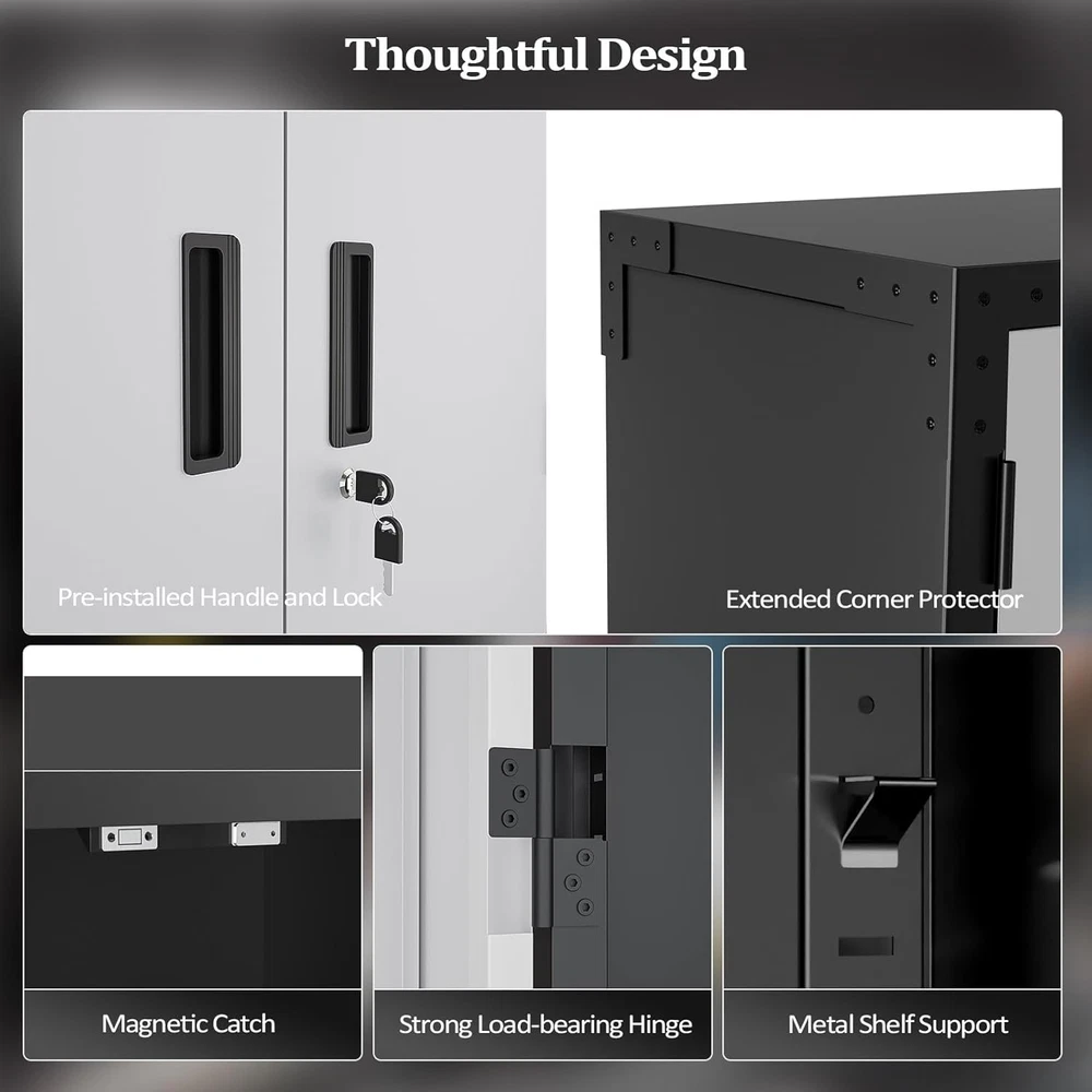 This cabinet is a game-changer for organizing my garage! The sturdy metal build feels durable, and the adjustable shelves make it super versatile. Love the pegboards for hanging tools and the locking doors keep everything secure. It fits perfectly in tight spaces but holds way more than expected. The sleek silver finish looks great and blends well with any decor. Highly recommend for anyone needing extra storage without sacrificing style!