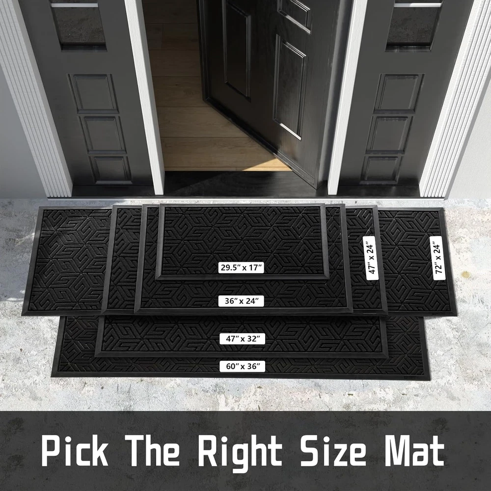 Store New Arrivals Add to Favorite View Feedback Contact Front Door Mat outside Entrance, 72X24 Runner, Waterproof All-Season Weather Large Doormat, Non Slip Natural Rubber, Stain and Fade Resistant, Indoor Outdoor Mat, Easy Clean Patio, Black Description Style Modern Weave Type Machine Made Pattern Geometric Is Stain Resistant Yes Theme Welcome Number of Pieces 1 Room Type Entryway, Porch, Patio, Hallway Product Dimensions 72"L x 24"W Material Polyester Rug Form Type Doormat Indoor/Outdoor Usage Both Water Resistance Level Not Water Resistant Item Weight 3 Kilograms Pile Height Low Pile Construction Type Machine Made Special Feature Waterproof, Weather Resistant, Fade Resistant, Non Slip, Washable Color Black Shape Rectangular Back Material Type Rubber Size 72x24 Inch 【Capture Dirt and Moisture】Yimobra front door mat fits all season and all weather, it features with patterned groove design that provide a good catcher for sand/ debris/ dust from bare feet and shoe/ sandel/ boot soles. The beveled border design helps to form a retention dam to catches everything the dogs bring in including muddy, wet feet 【Non Slip Natural Rubber Backing】Yimobra door mat is made of heavy duty non-slip natural rubber backing, natural rubber provides higher tensile strength, higher tear resistance, and less odor than synthetic rubber. And the heavy duty backing helps prevent you from slipping when entering and exiting, ensuring your safety and protecting your floor 【Stain, Weather and Fade Resistant】The Yimobra welcome mat is constructed to withstand all weather conditions, from snow and rain to mud and sand. It features a stain, weather, and fade-resistant topside, ensuring long-lasting use both inside and outside your home. It's sturdy doormat surface is made of polyester material with good water proof, can capture rain, snow, and dirt 【Easy to Clean】Yimobra outdoor mat is easy to clean, just use a vacuum cleaner, sweep with a broom, or tap the backing and shake the indoor entrance door mat. For a deeper clean, use a garden hose to rinse the doormat, and hang it in a ventilated place to air dry it. This versatile cleaning method ensures that your doormat stays clean and tidy, ready to welcome guests 【Sturdy & Versatile】Yimobra doormat outside entrance is made of high-quality polyester and natural rubber non slip backing, which is sturdy, strong, flexible and has a longer service life. Very suitable for indoor, outdoor, front door, side door, walkway, entrance, hall, garage, patio, barn or any other busy areas Product Description Yimobra Outdoor Door Mat Our front entrance door mat is designed with a exclusive flow pattern. The irregular striped grooves can traps dirt, dust, mud, sand, or other messy debris and prevents them from entering the room, keeping your home clean and tidy. Yimobra outdoor mat is made of natural rubber backing, which helps prevent you from slipping when entering and exiting, ensuring your safety and protecting your floor. Our entry rug is made of polyester material which can absorb water, rain, and snow. The video showcases the product in use. The video guides you through product setup. The video compares multiple products. The video shows the product being unpacked. 1 Catch Dirt & Moisture 2 Deep Groove 3 Easy to Clean Weather and Seasons Door Mat Pick the Right Size Door Mat For Your Home STURDY FABRIC Our outdoor mat is made of high-quality polyester, has no pilling, and absorbs moisture strongly HEAVY DUTY BACKING Natural rubber back for the floor mat has strong friction, not going to move by casual walking or step TRAPS DIRT AND MOISTURE Deep grooves, capture dirt, dust, and other messy debris LOW-PROFILE DESIGN Low profile design, not going to trap your door open or close. Fit any door entrance design. 1 ENTRANCE 2 OUTDOOR 3 INDOOR 4 BALCONY 5 STAIRS ABOUT US We offer the best prices around on high quality products. Our E-store includes media such as books, movies, music and games while offering electronics, toys, sporting apparel, clothing, tools, general home, garden items and more. SHIPPING We are always working hard to ensure your package arrives as soon as possible. Please understand that some factors like weather, high postal traffic, and the performance of shipping companies are outside of our control. We offer free shipping to the lower 48 states and ship within 2 business days of payment, usually sooner. We do not accept P.O. Boxes. Please provide a physical address. For shipping outside of the continental USA, we only use eBay's Global Shipping Program.The item is shipped to KY and then sent to the rest of the world. International customers are responsible for all duties and taxes. Continue to check out in order to calculate costs for shipping the item to your country. Messages regarding eBay's Global Shipping Program MUST be directed at eBay EXCLUSIVELY. RETURNS We offer a 30-Day Return Policy on items which you are not completely satisfied with. You have the option for a full-refund or an exchange of the item. No returns are available on items shipped outside of the USA. PAYMENT We accept PayPal. CONTACT US This page content is yet to come Please ad us to your favorite seller and visit again later Thank You CUSTOMER SATISFACTION We try our very best to make sure every customer is completely satisfied. If there's a problem, message us! We're happy to help. WE ACCEPT Copyright © 2021 AutoDS. | All Rights Reserved