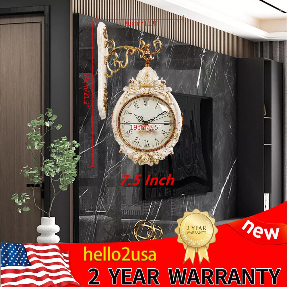 Specifications: Material:glass, Metal, Plastic Colour:cream Color Shape:round Type:hanging Wall Clock Features:12-Hour Display Battery Not Included Product Size: 30*12*54cm/11.8*4.7*21.2inch Weight:1.6kg Package Includes: 1 X Wall Clock 7.5" Retro Double Sided Wall Clock Hanging Outdoor Quartz Station Clock Garden 7.5" Retro Antique Double Sided Wall Clock Hanging Outdoor Station Quartz Garden Specifications: Material:glass, Metal, Plastic Colour:cream Color Shape:round Type:hanging Wall Clock Features:12-Hour Display Battery Not Included Product Size: 30*12*54cm/11.8*4.7*21.2inch Weight:1.6kg Package Includes: 1 X Wall Clock Material: Glass Dial, Metal Clock Pointer. Quiet: Quartz Movement, Accurate Time. Unique Design: Modern Double Sided Wall Clock, It Is Not Only a Clock, but Also a Beautiful Decor, Both Practical and Beautiful. Size: the Metal Huge Wall Clock Diameter Is 7.5". Application: Suitable for Kitchen, Dining, Living Room, Bedroom, Foyer, Hallway, bar, Restaurant, Coffee House, Shop Clock, Bathroom Clock, Office Wall Clock, and More. Payment Delivery details Terms of sales About us Contact us Payment We accept ebay payment 。 Fees such as import duties, taxes are not included in the item price or shipping costs. These charges are the buyer's responsibility. Delivery details Shipping: 2-9 working days to: USA Terms of sales We maintain high standards of excellence and strive for hundred percent customer satisfaction. Feedback is very important to us. We hope that you contact us immediately before you give neutral or negative feedback, so that we can address your concerns. It is impossible to address issues if we do not know about them! About us Your satis faction is our ultimate goal. We work hard to earn your trust and future business. Our certified technicians have tested each item before shipping. The unit comes with 1 year limited warranty on all manufacturing defects. a) If you receive a defective item, you may return it or ask for a discount. Please contact us within 14 days after you receive the package. b) What you returned must be intact and in its original packaging as re? u. Customer is responsible for shipping costs of the returned item. c) We will cover the cost of shipping back t with the shipping rate indicated in the registration page. We will send you a new unit or refund the full payment you paid. Thank you. Contact us Business Hour Business Hour: Monday To Friday: 8:30 AM to 5:00 PM (Beijing China time) Due to time zones, our reply to your questions may not be immediately. But within above working time, we will reply your email within 24 hours. If it's non-workdays, please kindly be patient and wait till Monday. Please contact us with ebay message. Please feel free to contact us if you have any questions. Monday To Friday: 8:30 AM to 5:00 PM (Beijing China time) Due to time zones, our reply to your questions may not be immediately. But within above working time, we will reply your email within 24 hours. If it's non-workdays, please kindly be patient and wait till Monday. Please contact us with ebay message. Please feel free to contact us if you have any questions. On Feb 20, 2025 at 19:34:19 PST, seller added the following information: