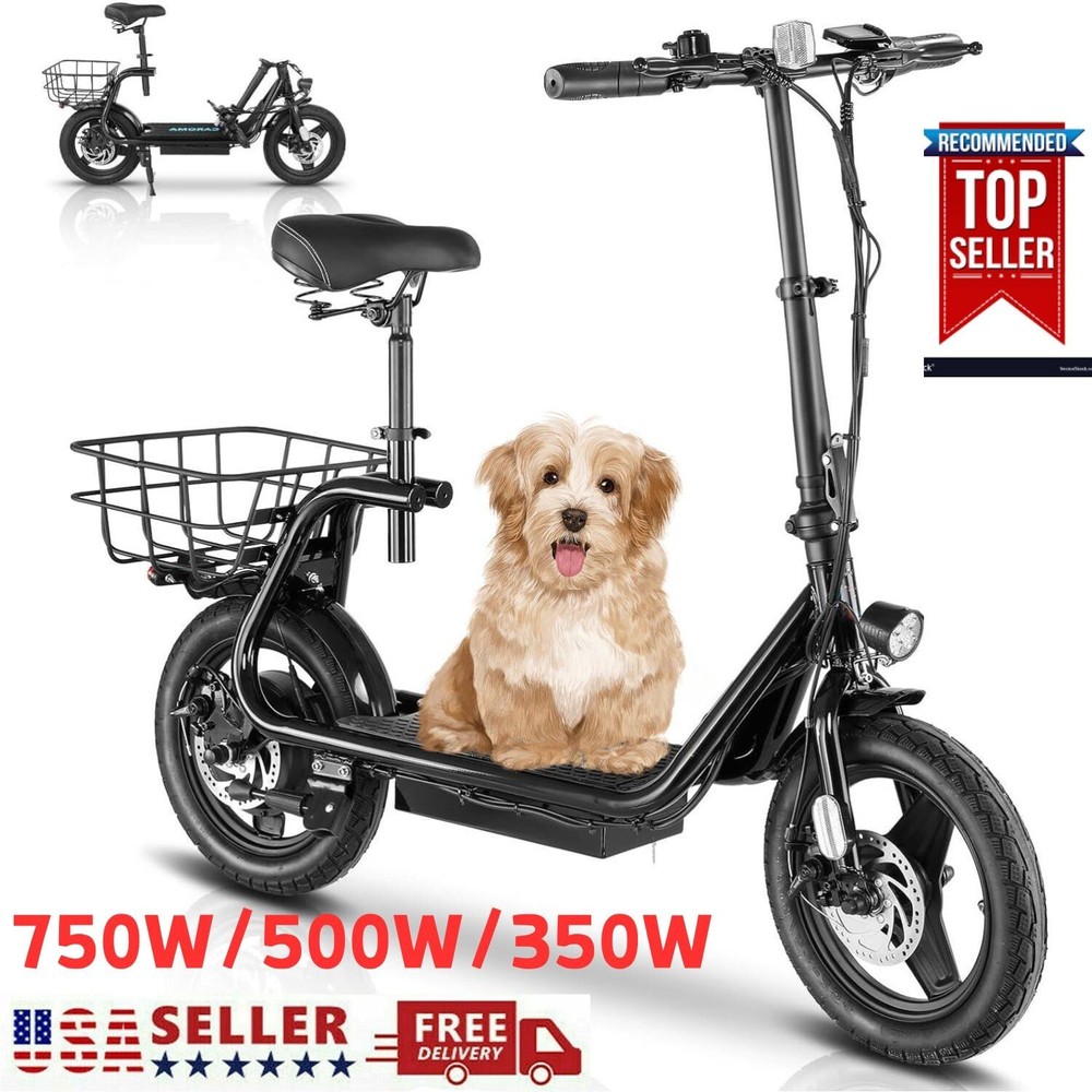 Product Description About this item đ´ăPowerful Motor & Long Battery LifeăCaroma electric scooter adults with a 750W(Peak 1200W) electric brushless hub motor allows for speeds up to 20mph. This adult electric scooter has a capacity 48V battery with a max travel range of up to 30 miles under specific conditions and a maximum load of 300 lbs. đ´ăSmooth & Safe RidingăE scooter for adults with Larger 14" rubber pneumatic tires increases shock absorption from bumpy city riding, bringing a smooth ride. Caroma escooter electric for adults with a 9.5" wide deck and adjustable saddle make it more comfortable even on a long-range commute. Disc brake & E-ABS, ensuring an effective braking distance and safety. đ´ăDesign for CommutersăEletric scooter for adults comes with a basket above the rear wheel, perfect for shopping trips and short errands around the block. Built-in spot headlight makes the road visible and safe to ride at night. đ´ăFoldable & Easy to CarryăElectric scooter with seat for adults has a folding design. The compact folded size makes it easy to store in car trunks and other tight spaces, detachable scooter seat is included. Electric Scooter with Seat & Basket