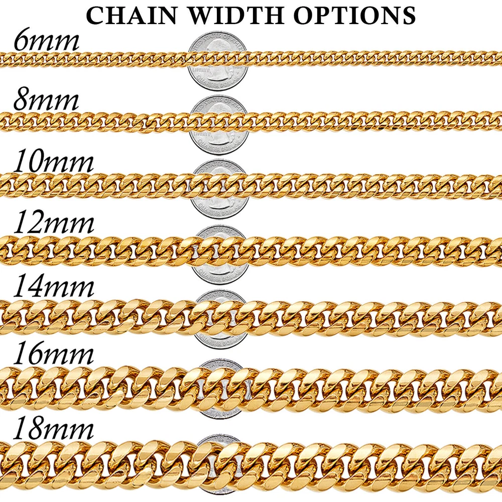 $ 7.9418K Gold Stainless Steel Cuban Link Chain for Men 7.5-30 Inch