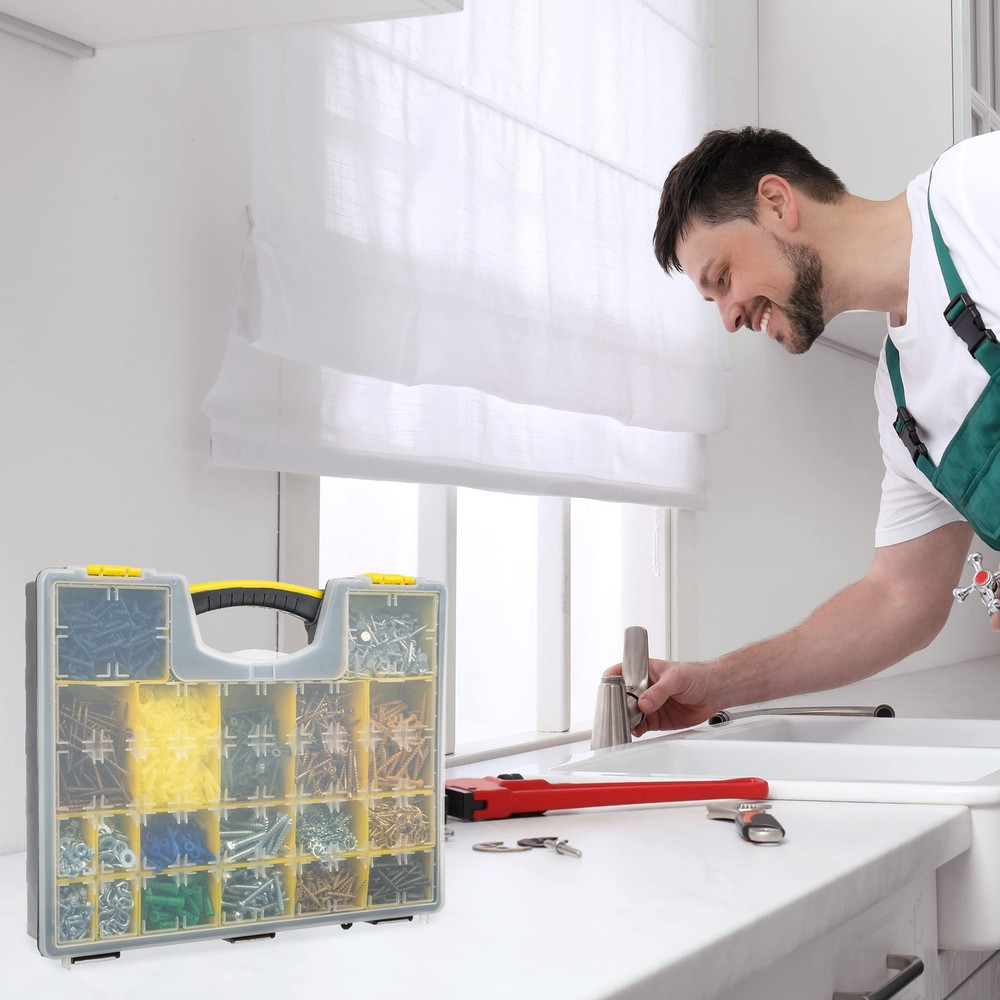 The Parts Crafts Portable Storage Set from is perfect for keeping small tools and other supplies organized. Includes 4 storage boxes with adjustable compartment dividers to allow a perfect fit for every tool or part! These are incredibly sturdy and durable with high quality latches to ensure the box stays closed and always protects your items. Keep basic tools in the small and medium sized boxes for easy jobs, big tools in the large box for more involved jobs. Not just for craftsmen, the 4-in-1 Tool Box Organization Set from is perfect for crafters, artists and more Dimensions: Small: 2.25 inches (H) x 8 inches (W) x 13 inches (L); Medium: 2.5 inches (H) x 16.5 inches (W) x 13 inches (L); Large: 4.5 inches (H) x 16.5 inches (W) x 13 inches (L). 4 Tool Box Organization Set Movable Small Part Compartments Small size has 15 primary compartments, Medium size has 19 primary compartments, Large size has 8 primary compartments Great for Tools, Crafts and More! Set Includes 2 Small Boxes, 1 Medium Box and 1 Large Box