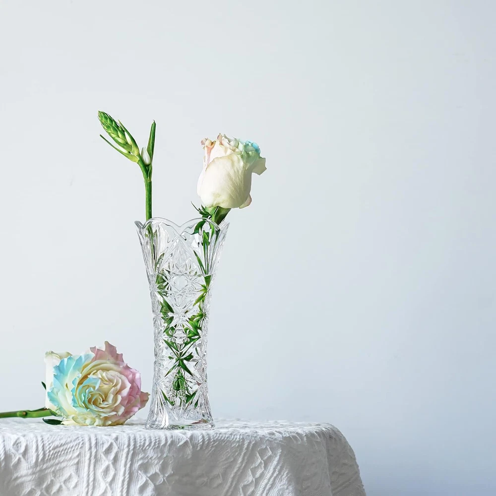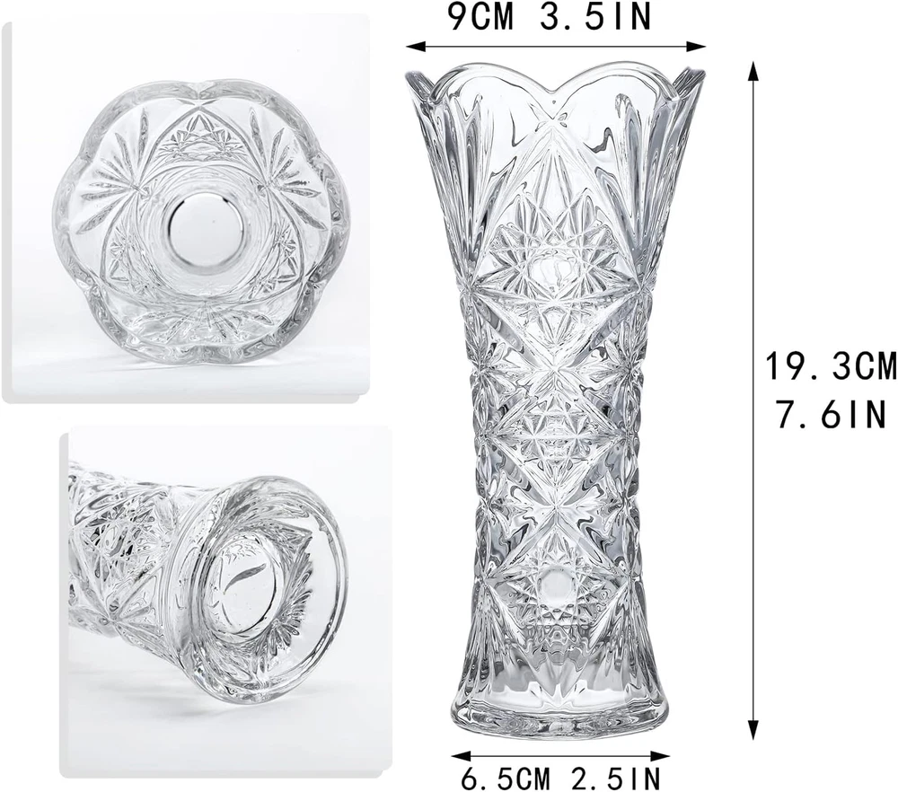 High Quality Flower Vase: The vase is thickened around and at the bottom, made of non-toxic, odorless, and safe high-quality glass material, durable, drop-resistant and not fragile, long service life, and more transparent than ordinary glass. For families with children, the elderly, and pets, it is safer to use vases made of this material Vase Specification: 7.6" Hx3.5 W, suitable for one flower. Not only suitable for green plants and dried flowers or artificial flowers, but also can hold water to water flowers.It is also suitable for vase filling Design and Shape: The glass vase is engraved with a gorgeous image of sunflowers, a true celebration of commitment and everlasting love. The vases are especially shiny under the lights. The glass has no sharp corners, bubbles, and wrinkles, which is safe and beautiful. Easy to clean and impact resistant Amazing Gift Idea: Very suitable for daily use, very suitable for weddings, graduation ceremonies, parties, coffee tables, dining rooms, mantel fireplaces and bathrooms, bedrooms, laundry rooms, living rooms, office decorations.Excellent gift for Christmas, Wedding, Birthday, Anniversary, Celebrations Where to Use: Not only for home decoration but also for restaurant decoration, flower shop decoration, office decoration, Home, Garden Church, Shop, Wedding, Coffee Table, Centerpieces, Dining Table, Living Room, Party Event decorations Product Description