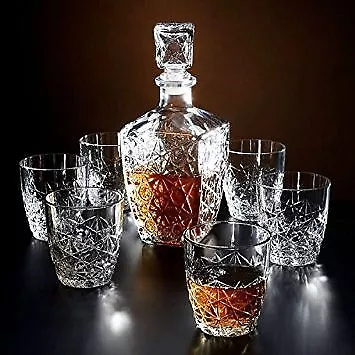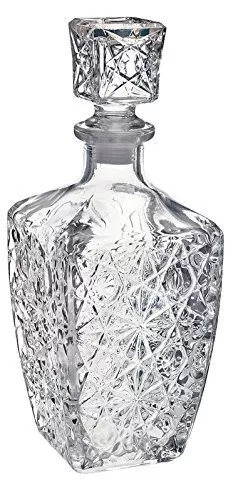 Unveiling a stunning piece of craftsmanship, these alcohol decanters by are more than just functional items. Decanters for alcohol like these not only serve a practical purpose but also double as decorative pieces, making them a must-have for every home. Marvel at the design of the decanter, perfect for vodka alcohol, featuring a crystal-like cut clear glass with a light-reflecting pattern and rounded edges. This glass bottle alcohol decanter isn't just for show, its intricate pattern and rounded edges play a crucial role in enhancing the taste of your liquor. Crafted from high-quality LEAD FREE Glass, these bar decanters are not just beautiful but also safe for use. This liquor bar for home is a perfect blend of beauty, safety, and environmental consciousness, making it a crucial aspect for customers who are conscious about their health and the environment. Being dishwasher safe, these cut crystal decanters are easy to clean and maintain. These crystal bottles for liquor are not just beautiful and functional, but also easy to maintain, making them a perfect addition to your kitchenware. In conclusion, the 's Liquor Bottle Decanter, fitting perfectly in 750 ml glass bottles, is a perfect blend of beauty, functionality, safety, and convenience. This liquor bar is not just a container for your liquor, it's a piece of art that enhances your drinking experience and is a must-have for every home. CRAFTSMANSHIP: Whiskey decanter enthusiasts will marvel at the intricate crystal cut design, a testament to the craftsmanship involved. This stunningly cut clear glass piece not only serves a functional purpose for your whiskey but also adds a touch of sophistication to your table setting. VERSATILITY: Appreciate the versatility of this whiskey bottle's design, its crystal cut pattern is not only visually appealing but also versatile enough to fit into any decor. Whether your home boasts a modern minimalist aesthetic or a more traditional one, this whiskey glass bottle will seamlessly blend in, enhancing the overall look of your space. SAFETY: Rest assured with the high-quality LEAD FREE Glass construction of this gin decanter. Not only is it beautiful, but it's also safe for your health as the decanter glass ensures that no harmful substances will leach into your liquor. EASY MAINTENANCE: Enjoy the ease of maintenance with this whisky decanter, which is dishwasher safe. No need to worry about the tedious task of hand washing these alcohol decanters, this feature not only saves you time and effort but also ensures that your decanter is thoroughly cleaned and sanitized, ready for your next use. ENHANCED FLAVORS: Experience an enhanced drinking experience with this Liquor Bottle Decanter from , perfect for your vodka alcohol. By introducing more oxygen to its contents, it allows the liquor to open up and fully develop its flavors, making these decanters for alcohol a must-have addition to your barware collection. Overall Dimensions Max length 3.62" Height with knob 9 5/8". Height without knob 7.5"