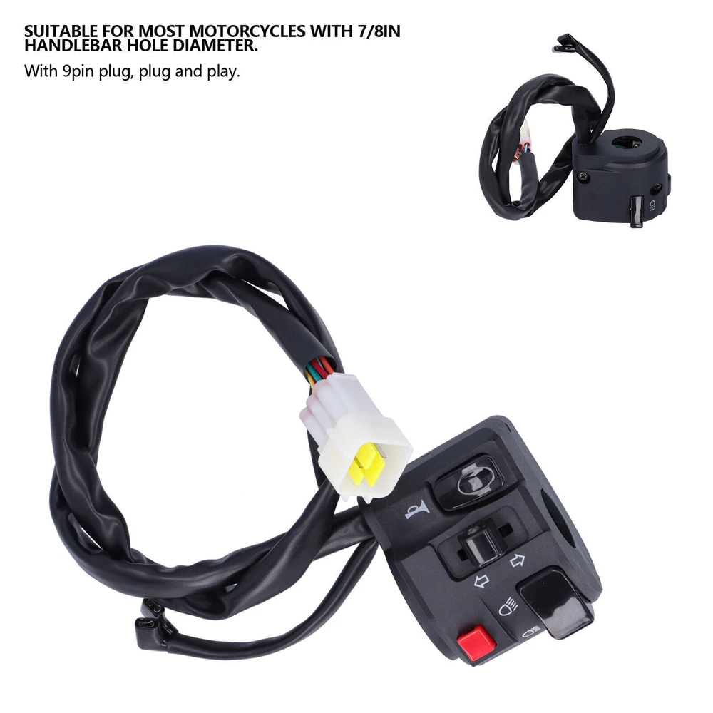 Feature: 1. Can be used as a switch for headlight, high‑beam, low‑beam, horn button, turn signal, fog light, etc. 2. Wide range of applications, suitable for most motorcycles with 7/8in handlebar hole diameter. 3. With 9pin plug, plug and play, easy to install and use, no need of complicated operations. 4. Made of high quality ABS plastic, high strength, sturdy, anti‑corrosion and durable. 5. Built to meet standard specification, strictly follow factory quality control, reliable to use. Specification: Item Type: Motorcycle Handlebar Switch Material: ABS Plastic Color: Black Cable Length: Approx. 67cm/26.4in Handlebar Hole Diameter: Approx. 22mm (7/8in) Function: Can be used as a switch for headlights, high beams, low beams, horn buttons, turn signals, fog lights, start Installation Notes: With 9-PIN plug, plug and play. The two black wire harnesses are clutch cables, which can be connected to the clutch. Package List: 1 x Motorcycle Handlebar Switch All the items will be dispatched within one business day by Airmail after the payment is clear. Most times you will receive your order within 10-30 business days after we transfer your package to the delivery company. We cannot guarantee the delivery timeframe if the post office has any unexpected delays due to holiday,weather,customs, or other conditions. Some countries like Russia, Brazil, or some European countries may take up to 50 days or longer for delivery. We appreciate your patience if you haven't received items in 30 days(Russian customers may need more patience by reason of the local delivery system and/or customs). If you are concerned in any way, please feel free to contact us via ebay message instead of leaving negative/neutral feedback or opening a dispute . We will do our best to solve any problem(resend or refund any missingitem). Customs duty is obligation and liability of citizens in yourresponsible for any tax and custom duty incurred. Generally, thedelay or failure delivery is sometimes caused by the policy of different customs. Our listing price includes the value of goods,packaging cost,and export taxes,not including international duties. duties,taxes,and charges are not included in the item price or shipping fee. The duties are buyers' responsibility. Please check with your country's customs office determine what these additional costs will be prior to your purchase. All disputes arising from the duties will be submitted to ebay for solution. Any questions, pls. contact us via ebay message or email us. We will reply your message within 48 hours. If you do not receive our reply within 48 hours, pls. post a message again because sometimes our message system may block some emails. If you are satisfied with our service, pls. kindly leave us a positive feedback and give us the Detailed Seller Rating with all " 5 " in very area. Our aim is to provide Level Customer Service, your recognition will encourage us greatly and serve you better. We strive to keep all our customers satisfy. We will do our up most to exceed your expectations in customer service, communication and dispatching of your orders.