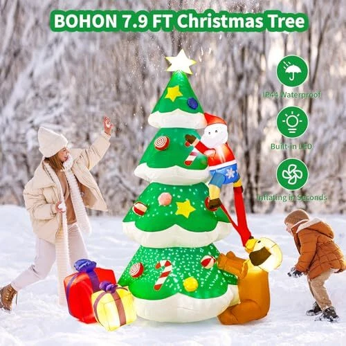 30 Days Return Policy Fast Delivery Trusted seller 7.9 FT Inflatable Christmas Decorations Outdoor, Built-in Rotated Snowflake Light and LEDs, Blow Up Yard Christmas Tree with Santa Claus Dog Gift Boxes Inflatables for Indoor Party Xmas Decor Product Description Giant Christmas Inflatable Outdoor Decoration: 's 7.9FT inflatables Christmas tree with built-in 1 rotated snowflake light and 5 LED lights, The super bright LED lights will illuminate your yard and easily attract the guests, friends, and Children's attention so that can be the most attractive & Christmas decorations outdoor in your neighbors. Stronger Inflatable Fan and Easy to Use: Christmas inflatable tree is equipped with an upgraded powerful inflatable fan, the inflatable Christmas yard decorations can be inflated quickly in two minutes, it is efficient and fast. Don't forget to zip up the bottom zipper before inflated. It also comes with 2 ropes and 4 stakes to ensure it stays securely in place. The charging plug with UL certified adapter is very safe to use. Upgraded High-density thickened Polyester and Excellent Suture Technique: The blow up Christmas tree is made of durable and thickened polyester fiber, equipped with high-quality zipper that are waterproof, durable, not easy to fade, and not easy to be poked. Updated sewing technology ensures that product is sewn tightly and neatly. Ensuring our outdoor Christmas decorations yard can be used in rainy and snowy days. The deflated Christmas tree is easy to store and can save space very well. Perfect Christmas Decorations: Santa Claus was chased by a puppy dog, and then he climbed up a 7.9ft tall Christmas inflatable tree. The dog under the tree pulled off Santa Claus's pants. Comical Christmas inflatables outdoor decorations are suitable for yard, garden, family, party, stage, Christmas Eve activities. The sparkling star on the top of the tree and the colorful 3D candy decorations on the tree create a fun and unforgettable scene for your home or lawn during the holiday season. Christmas Blow Up Yard Decorations: 's giant Christmas inflatable decorations can be applied to outdoor, perfect for Christmas holiday party yard decorations. The package includes 2 sandbags, 4 ground stakes and 2 ropes. If you receive a damaged product or have any other dissatisfaction, contact us. And we will do our best to offer a satisfactory solution for you within 24 hours. Shipping Returns Payment Shipping Shipping is FREE to all addresses other than APO/PO boxes in the lower 48 states. All our stock ships from US-based warehouses. Shipped via USPS or UPS (depending on location and package weight) Unless stated otherwise, all orders will ship within 24-72 hours of your payment being processed. Check our feedback to see the great reviews of FAST shipping we offer. Returns As our valued customer, we will do our best to make sure the product you receive arrives to you on time and as expected. If you are not satisfied with your purchase, please contact us within 30 days of receiving your order to process a return. Payment We currently accept payment via eBay managed payments only. Once payment is cleared, we will dispatch your shipment within 1-3 business days. Please refer to the "Shipping" tab for more information regarding shipping speed to your destination.
