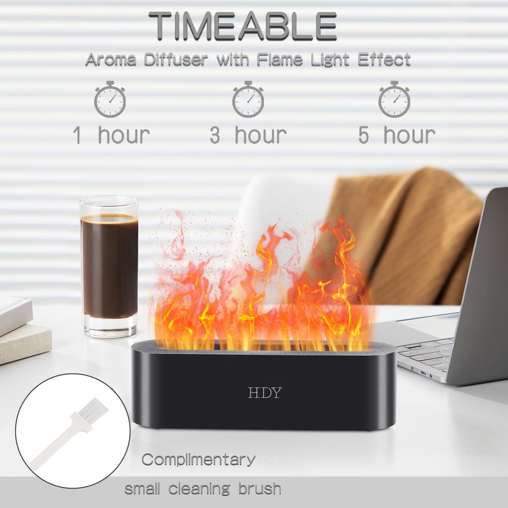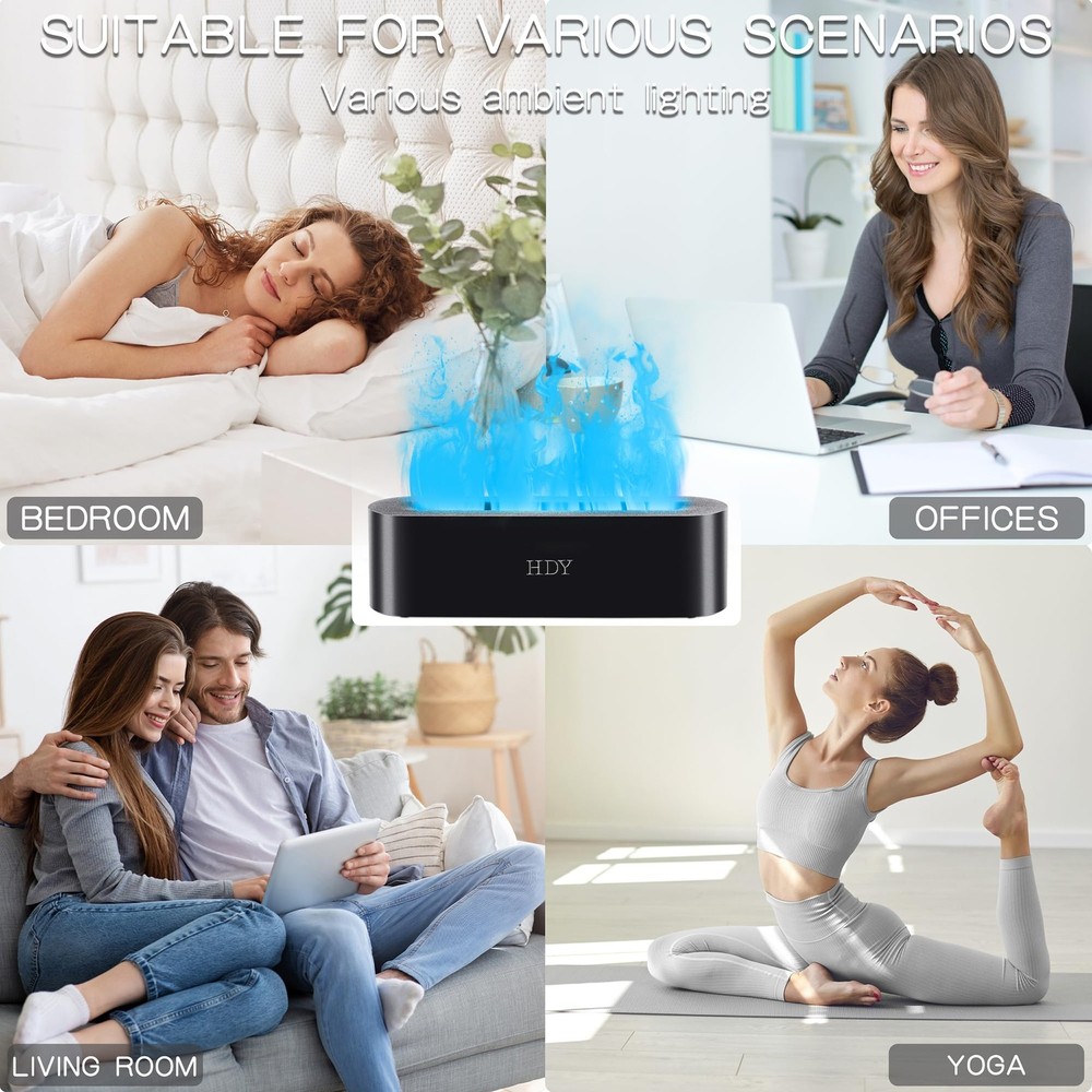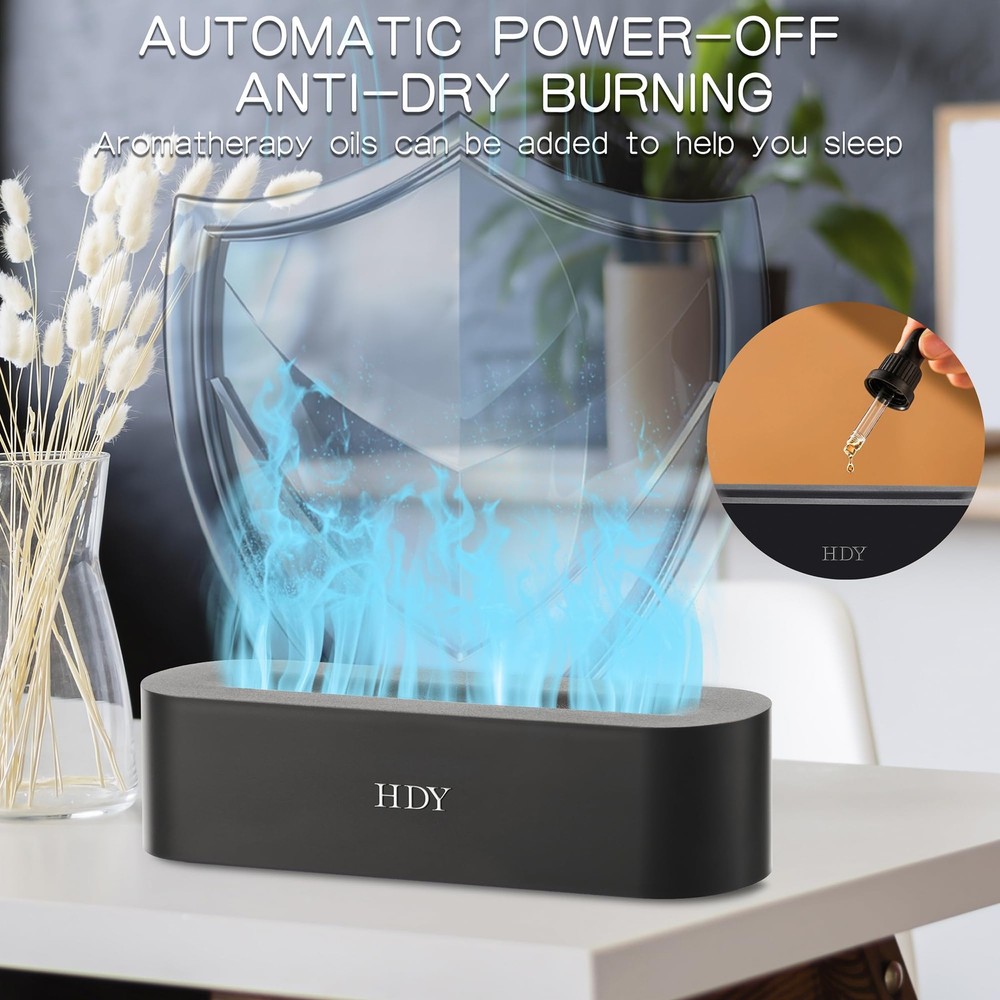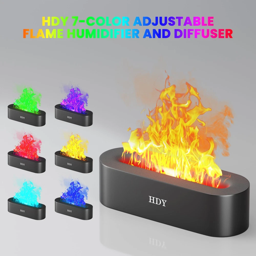 Introducing the Flame Aromatherapy Humidifier, your ultimate solution for a serene and fragrant living space. This 7-color variable essential oil diffuser is designed to transform your home, hotel, or office into a sanctuary of relaxation. With ultra-silent operation, it ensures a peaceful environment without any disruptive noise. The built-in timer and no water auto shut-off feature provide convenience and safety, making it perfect for use in any room. The 150ml capacity is ideal for maintaining optimal humidity levels, making it one of the best small humidifiers for the bedroom. Use it as an essential oils diffuser for home to enjoy the therapeutic benefits of cedarwood essential oil or any other favorite scent. Whether you're looking for a mini diffuser for essential oils, a home diffuser, or a humidifier with essential oil diffuser, this product caters to all your needs. It's a versatile essential oil diffuser large room can benefit from, ensuring a consistent fragrance throughout. Ideal for diffusers for essential oils large room, this humidifier offers a perfect blend of functionality and aesthetics. Elevate your space with the Flame Aromatherapy Humidifier and experience the difference. UPGRADED VERSION: SEVEN-COLOR FLAME HUMIDIFIER. This diffuser offers seven LED colors, with options for a fixed or cycling display. A cleaning brush is included for convenience. ULTRASONIC TECHNOLOGY: This aromatherapy diffuser uses high-frequency vibrations to atomize water, humidify air, and diffuse essential oils for maximum therapeutic effect. TIMING AND MUTING: The air humidifier offers three timing modes (1, 3, or 5 hours) and a 150 ml capacity, with a noise reduction feature for peaceful sleep. SAFETY:The flame diffuser is made of high-grade polypropylene (PP), making it lightweight, impact-resistant, and easy to clean. It includes a safety system that automatically cuts off power when water is absent. EXQUISITE GIFTS: This humidifier with essential oil diffuser boasts an elegant design with a frosted texture that enhances any space. It serves as a high-end essential oil diffuser for homes, offices, spas, and gyms, making it a perfect gift.