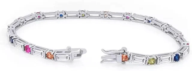 Secondary Stone: Diamond Sizable: Yes Wholesale: Yes Main Stone: Simulated Diamond Era: Undated Vintage: No Personalize: Yes Metal Purity: 925 Type: Bracelet Setting Style: Prong Shape: Round Main Stone Creation: Simulated Main Stone Width: As per picture Main Stone Treatment: Not Enhanced Material: Stone, Metal Antique: No Cut Grade: Excellent Handmade: Yes Color: White Features: Engraved Main Stone Length: As per picture Theme: Beauty Base Metal: Sterling Silver Metal: Sterling Silver Seller Warranty: Yes Brand: karunas-76 Gemstone Clarity Grade: NA Main Stone Depth: As per picture Main Stone Shape: Baguette Occasion: Anniversary, Birthday, Christening, Christmas, Engagement, Graduation, Mother's Day, Valentine's Day, Wedding Style: Tennis Country/Region of Manufacture: India Closure: Snap Main Stone Color: White Country of Origin: India Chain Type: Cable Number of Gemstones: As Per Picture Customized: Yes Item Length: As per picture Charm Type: Snap Signed: No