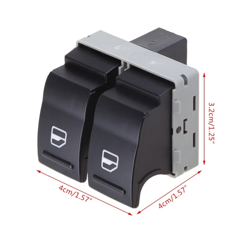 7E0959855A Car Power Electric Window for Feature: According to factory specifications for car Easy installation Stable characteristics, high reliability 4 Pins, 2 buttons Specifications: Color: Black & metal OEM Number: 7E0959855A Pins: 4 Size: 4x3.2x4cm Quantity: 1 Pc Note: Please allow 1-3mm error due to manual measurement. pls make sure you do not mind before you bid Due to the difference between different monitors, the picture may not reflect the actual color of the item. Thank you! Package Contents: 1 Pc x Car Window